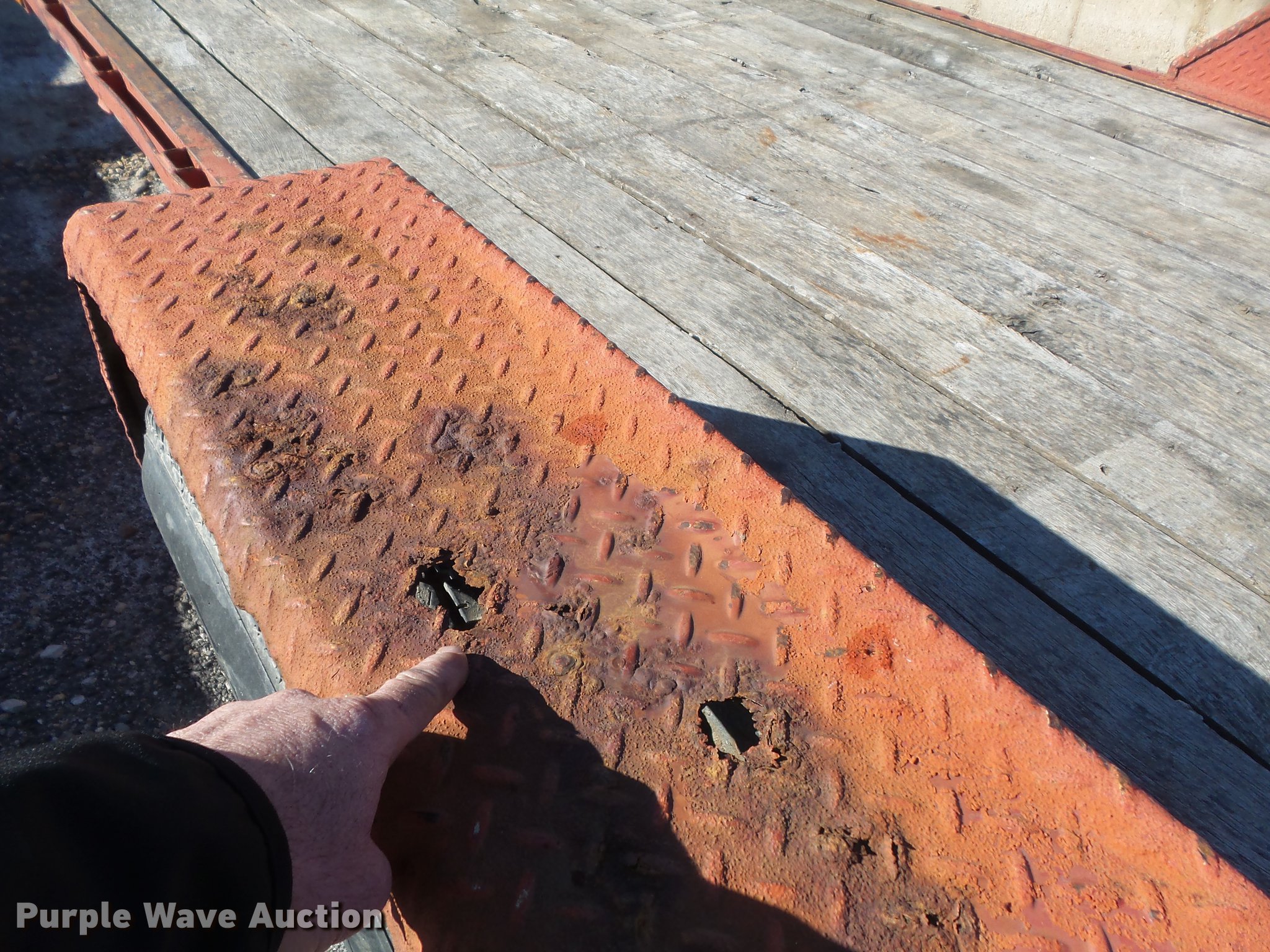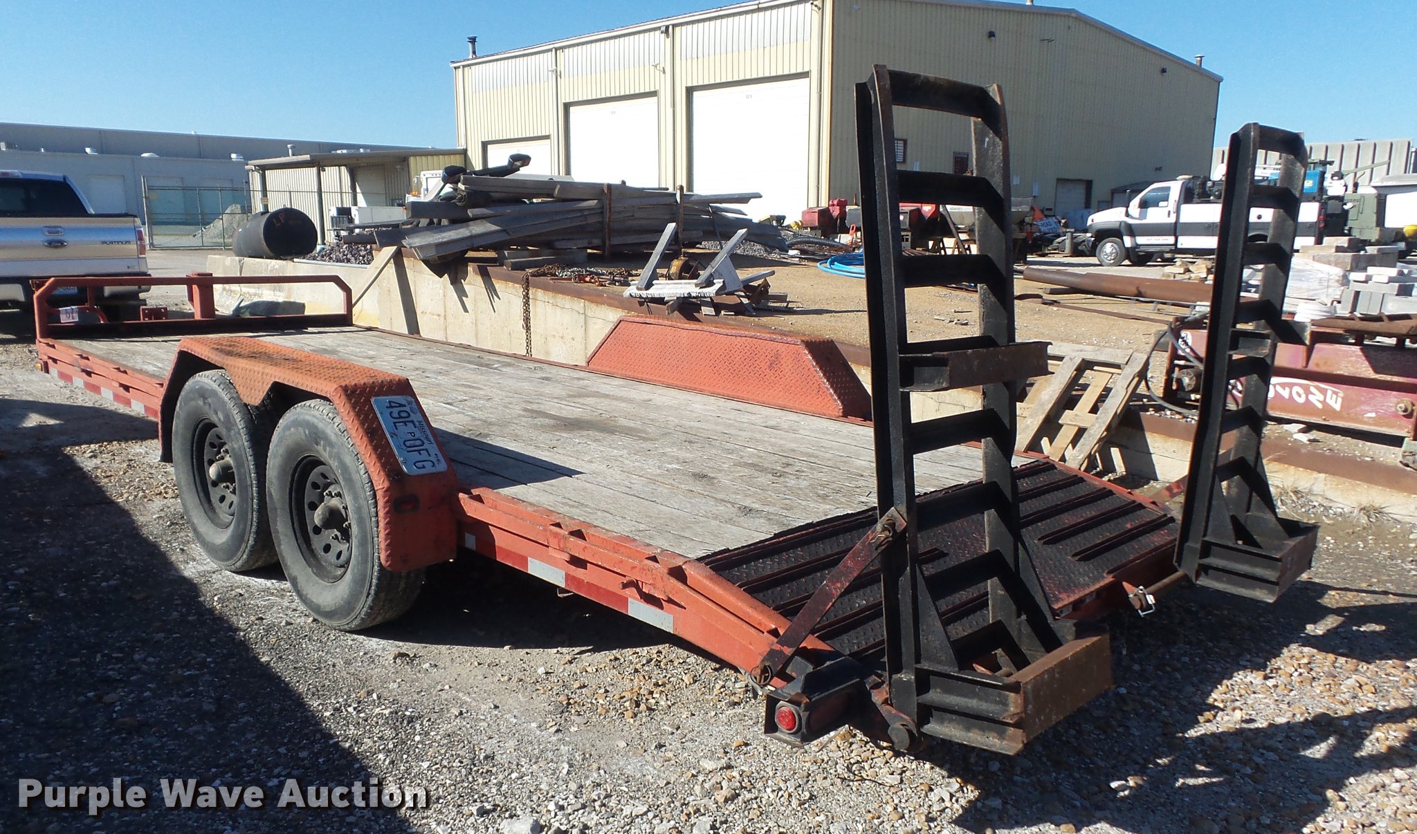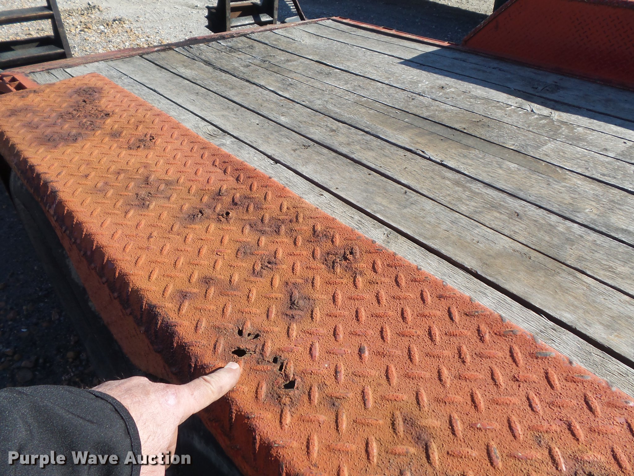 Purple Wave is selling a used Equip. Trailer in Missouri. This item is a 2004 Corn Pro UT-20H equipment trailer with the following: 18'L x 80"W wood deck, 22" floor height, 24"L beavertail, 54"L ramps, Stake side pockets, Single leg landing gear, 2 5/16" ball hitch, Torque flex suspension, Electric brakes, Steel wheels, ST235/80R16 tires, GVWR 14,000 lbs, GAWR 7,000 lbs