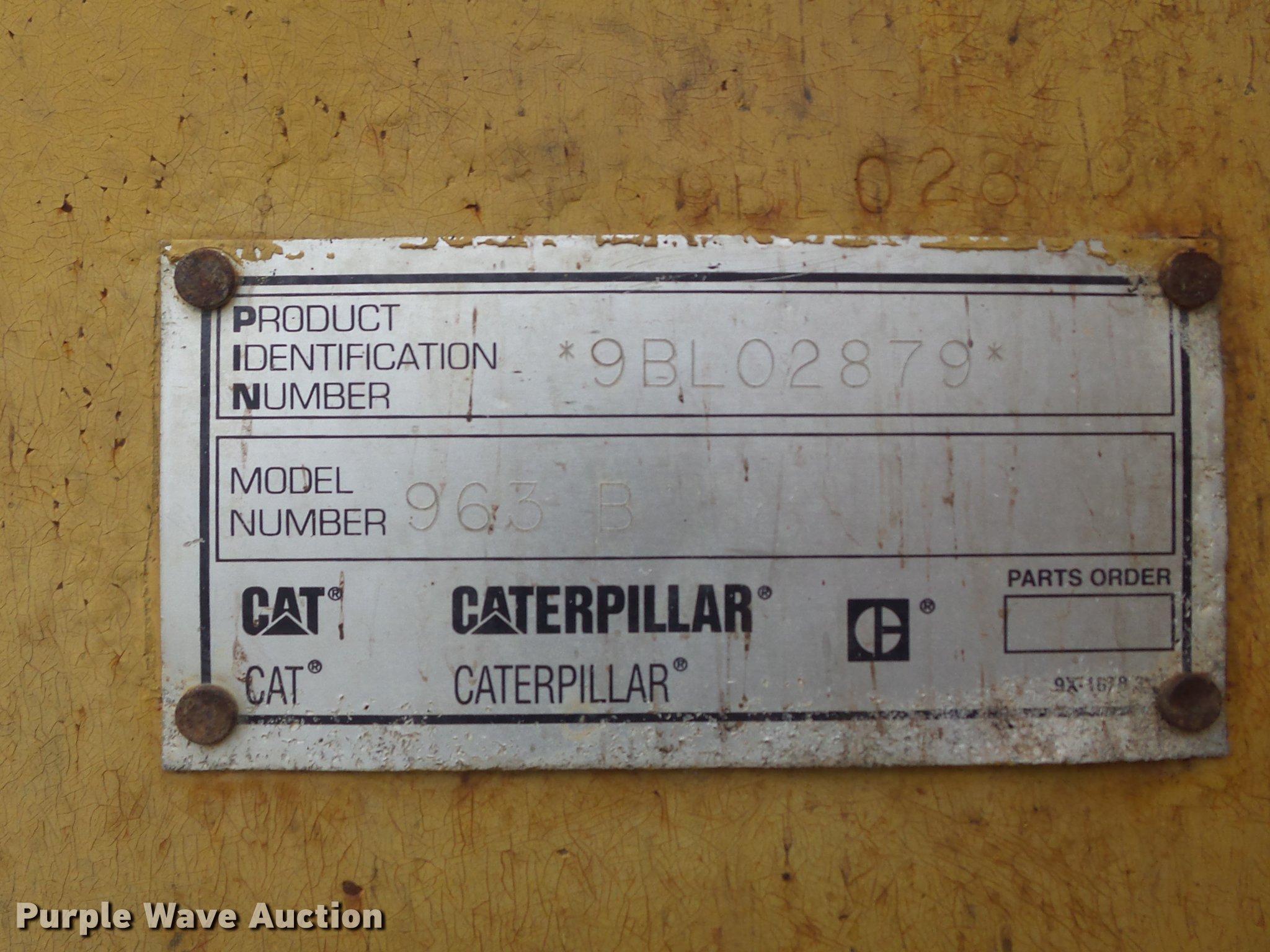 Purple Wave is selling a used Crawler Loader in Missouri. This item is a 1998 Caterpillar 963B track loader with the following: 7,768 hours on meter, Caterpillar 3116 six cylinder turbo diesel engine, 160 HP, Serial 4TF48176, Hydrostatic transmission, Enclosed cab, AC and heat, Suspension seat, Two-lever bucket controls, Wipers, 98"W general purpose bucket, Bolt-on cutting edge, (8) teeth, Self-leveling, 22"W double grouser track pads, Serial 9BL02879