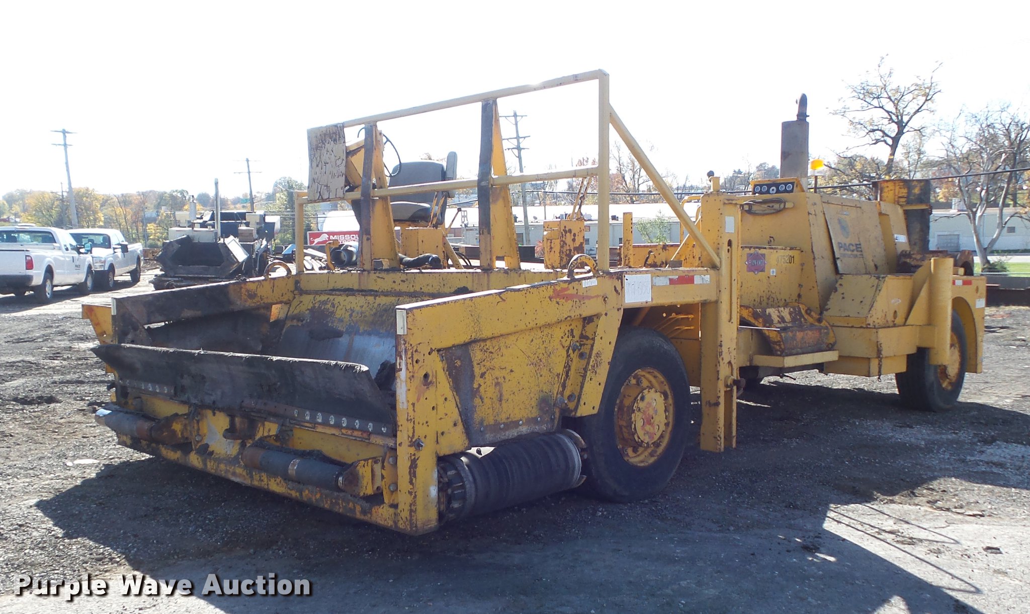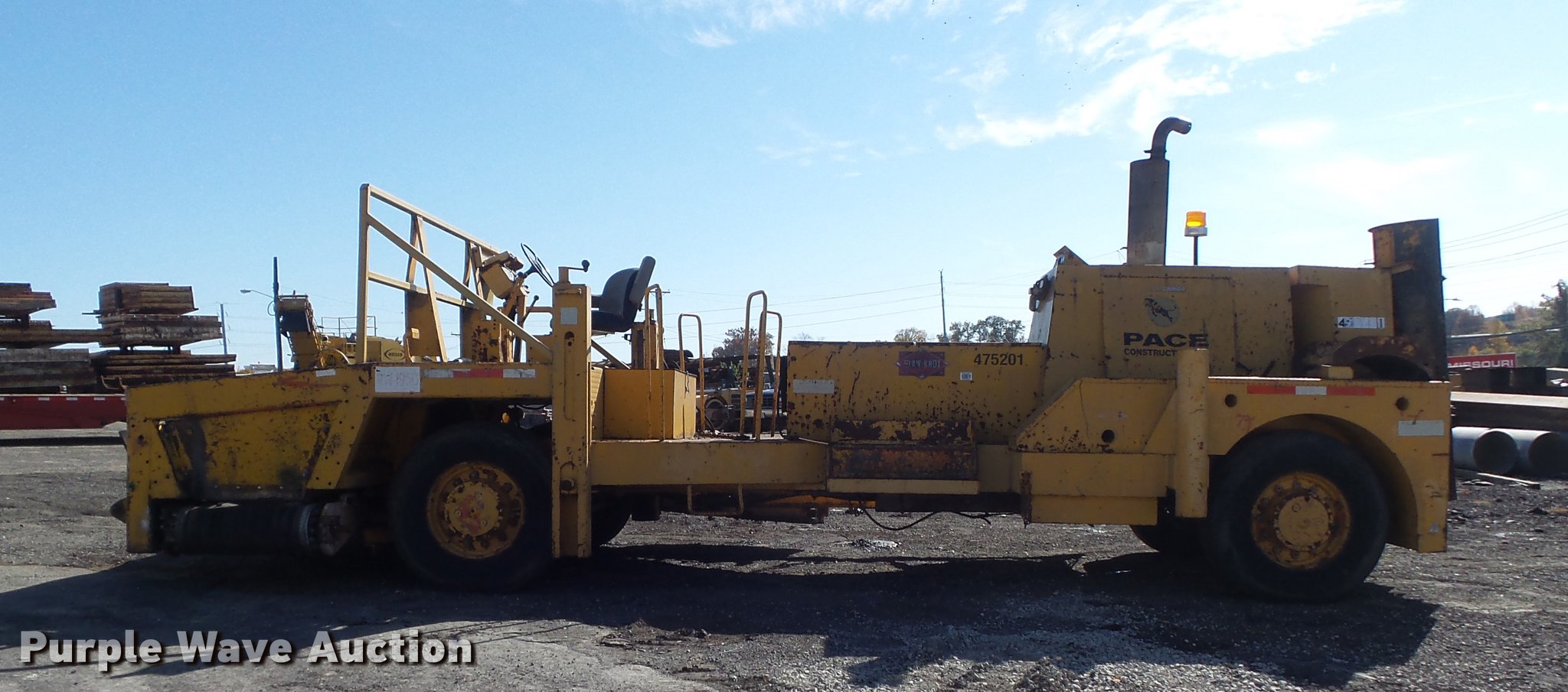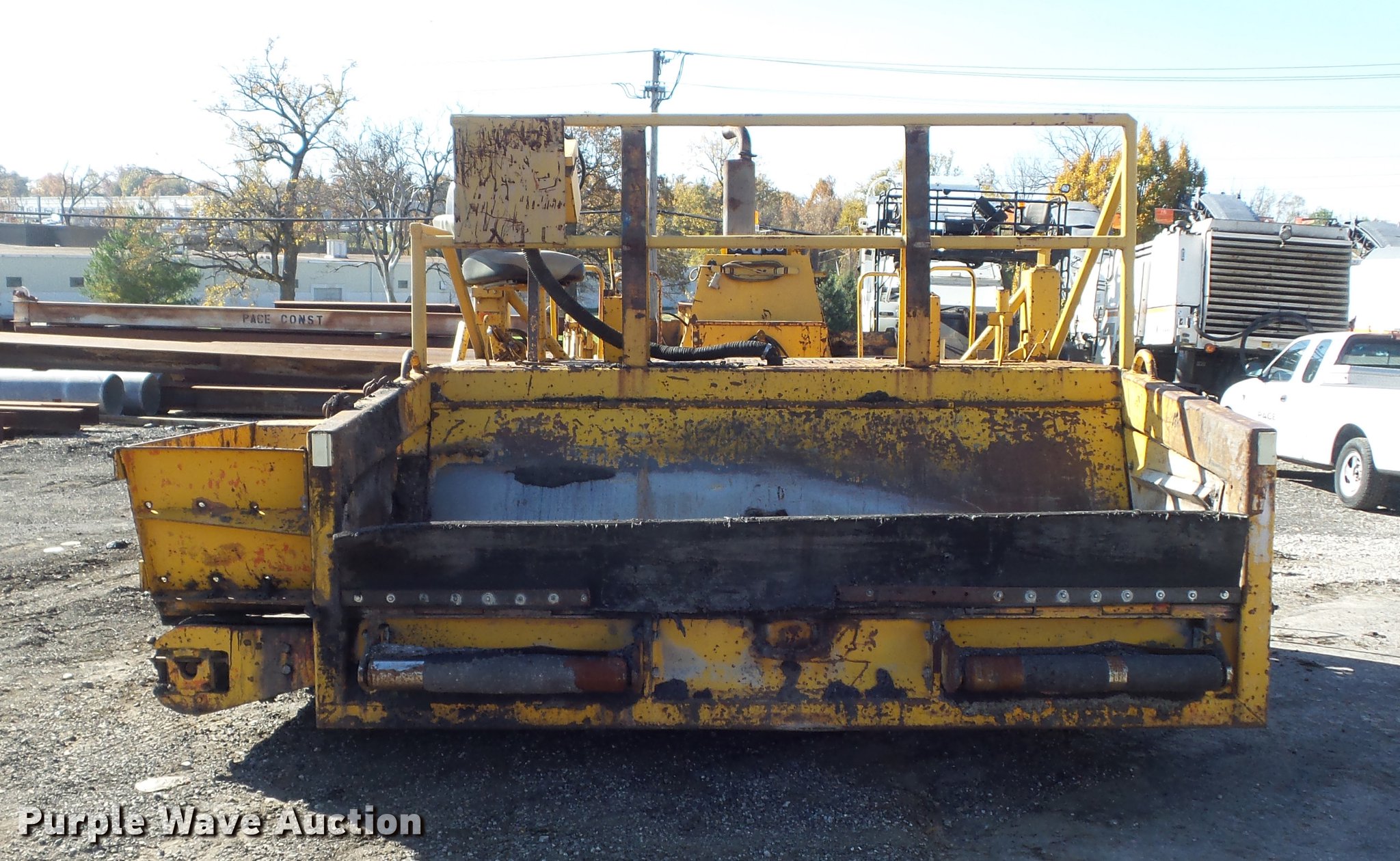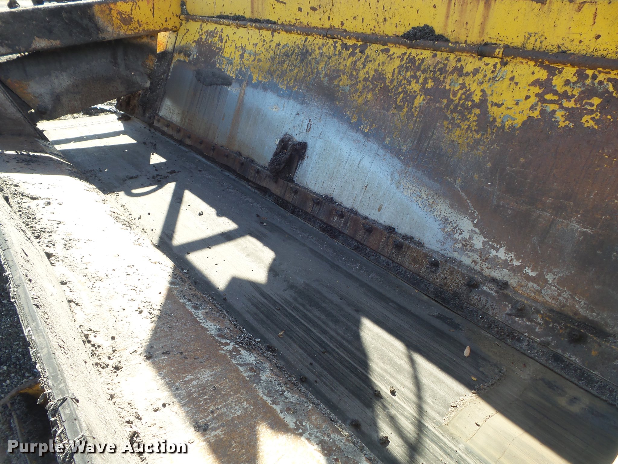1988 Blaw-Knox RW195C road widener. 23 hours on meter, John Deere 6414 six cylinder diesel engine 180 HP, T06414D130813, Hydrostatic transmission, Dual operator stations, Protective cover, 30"W material conveyor, Wash down system, Contoured strike-off extensions 12", (2) 24", 36", 48", 72", 27'3"L x 12'2"W overall, 385/65R22.5 tires, Conveyor belt will not turn due to asphalt, Hydraulic drive turns but slips on belt, Hour meter inoperable, Serial 1950905. Pace Construction. 1620 Woodson Rd. St. Louis, MO 63114