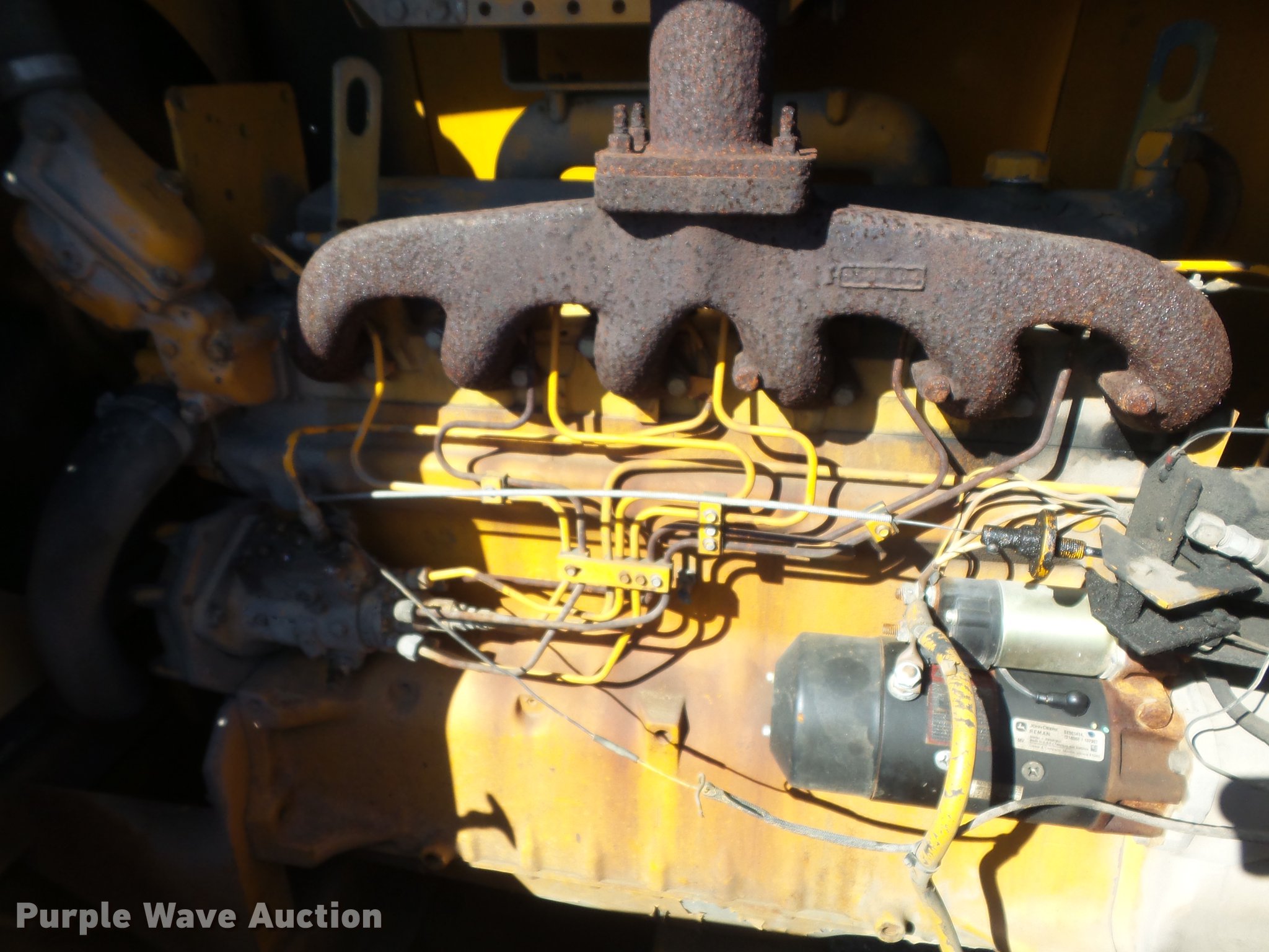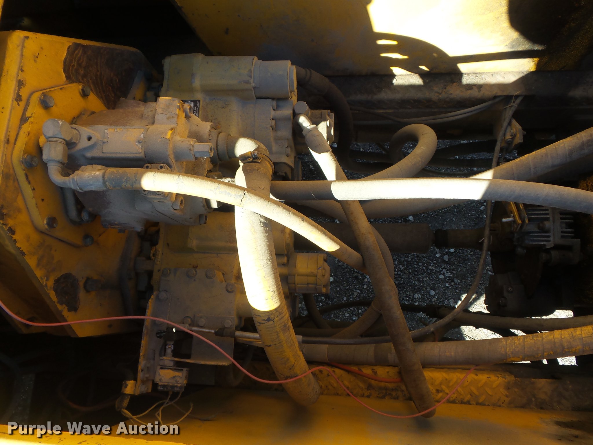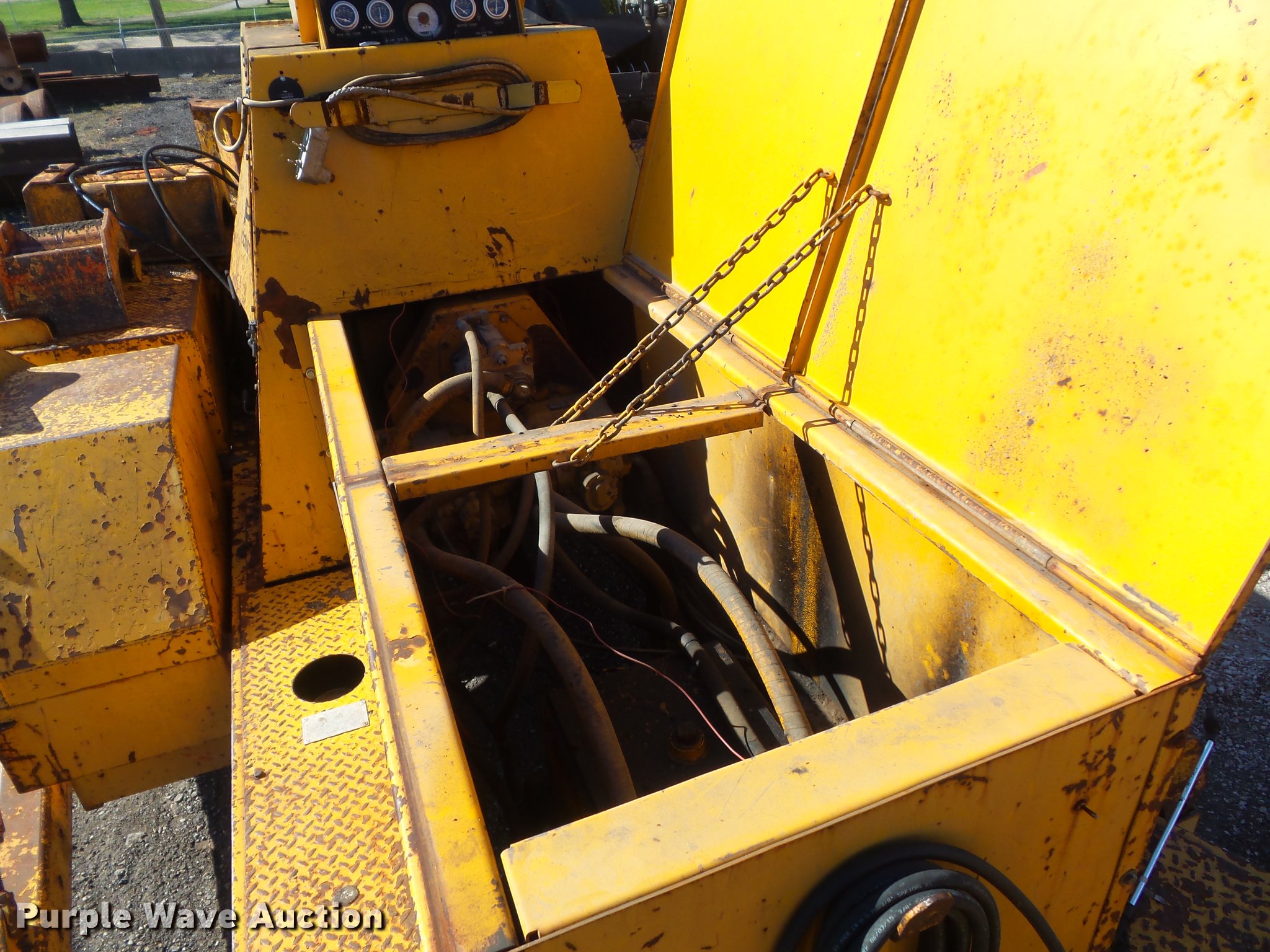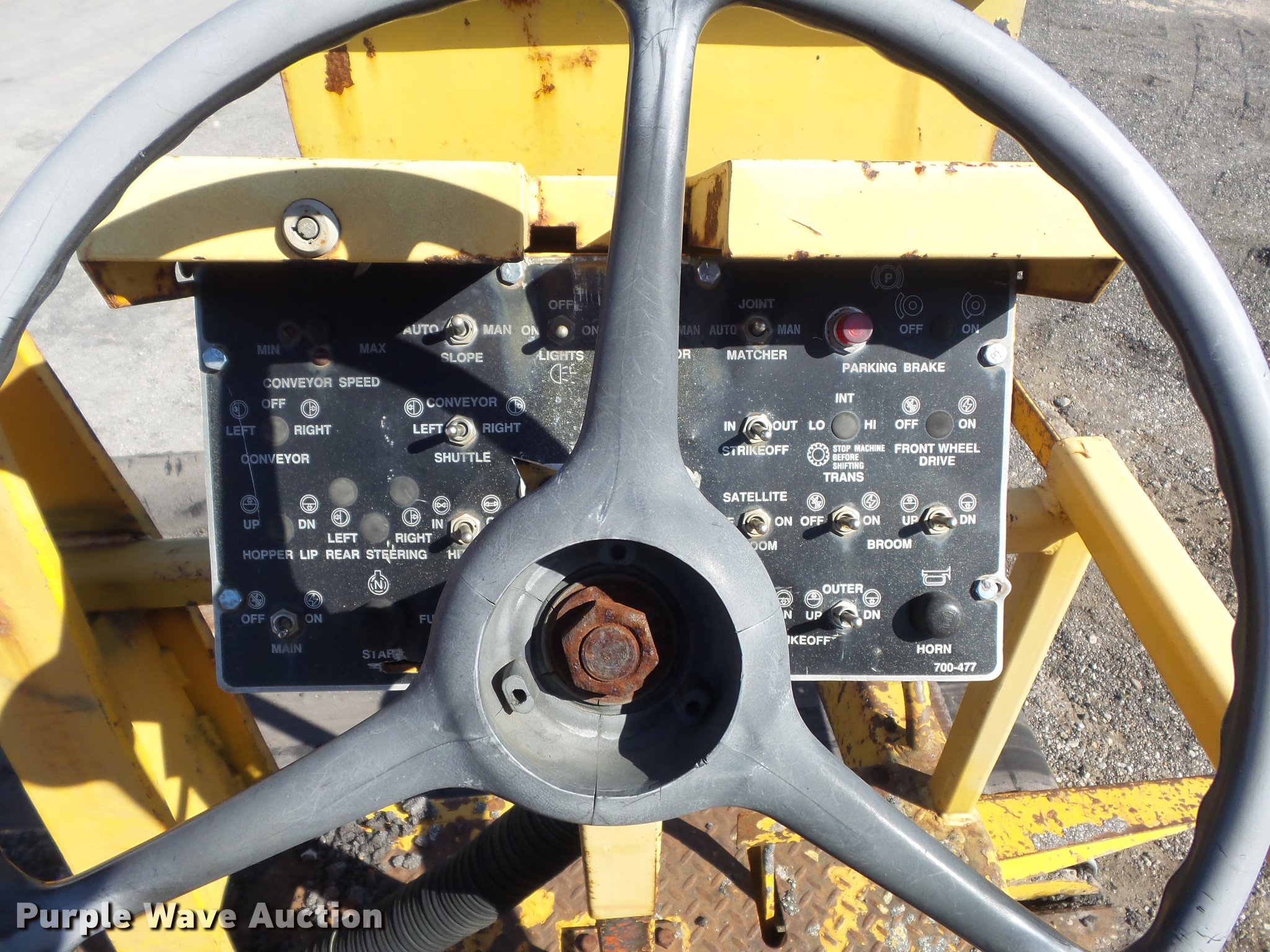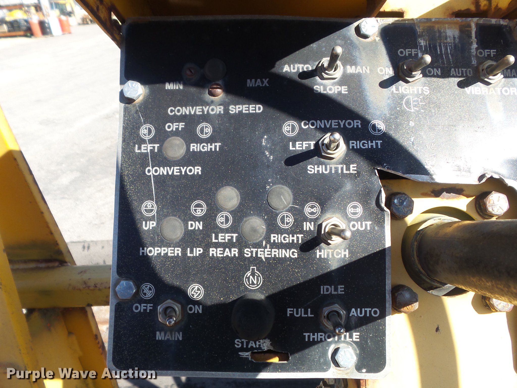 Purple Wave is selling a used Road Widener in Missouri. This item is a 1988 Blaw-Knox RW195C road widener with the following: 23 hours on meter, John Deere 6414 six cylinder diesel engine, 180 HP, T06414D130813, Hydrostatic transmission, Dual operator stations, Protective cover, 30"W material conveyor, Wash down system, Contoured strike-off extensions, 12", (2) 24", 36", 48", 72", 27'3"L x 12'2"W overall, 385/65R22.5 tires, Conveyor belt will not turn due to asphalt, Hydraulic drive turns but slips on belt, Hour meter inoperable, Serial 1950905