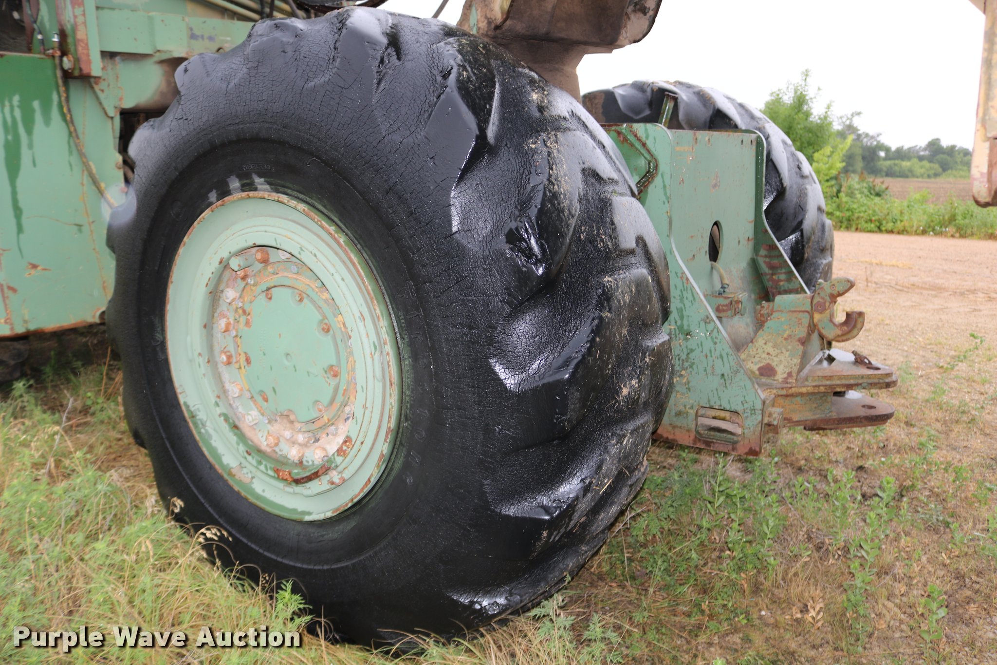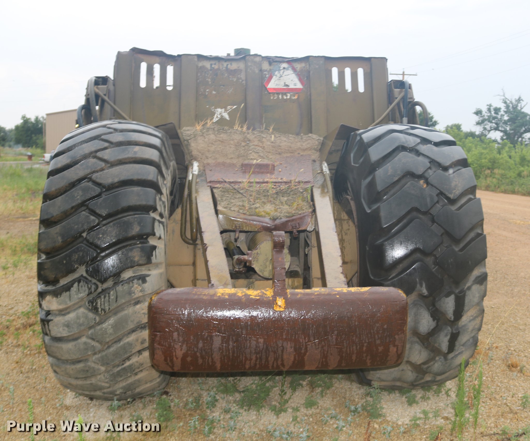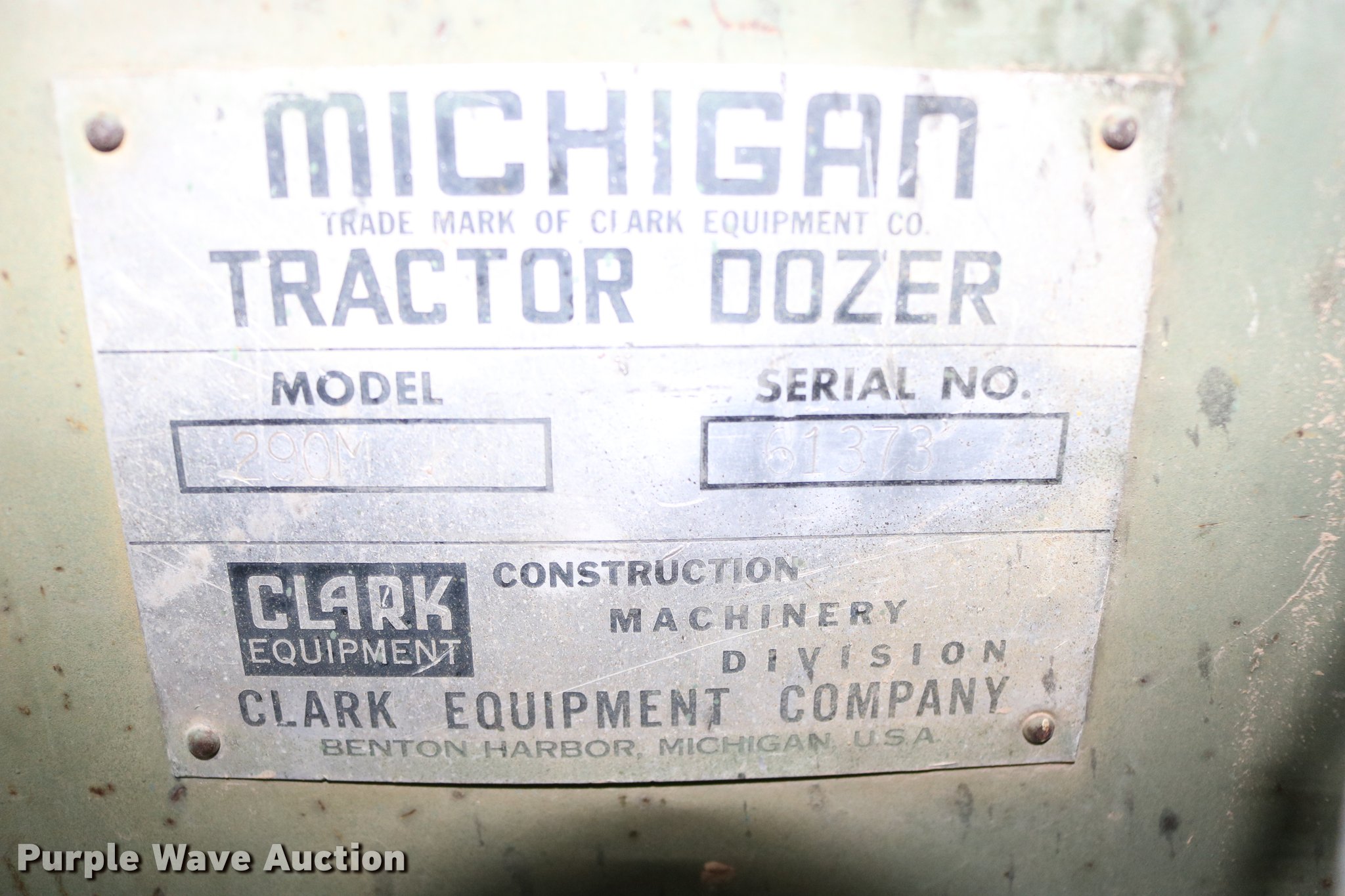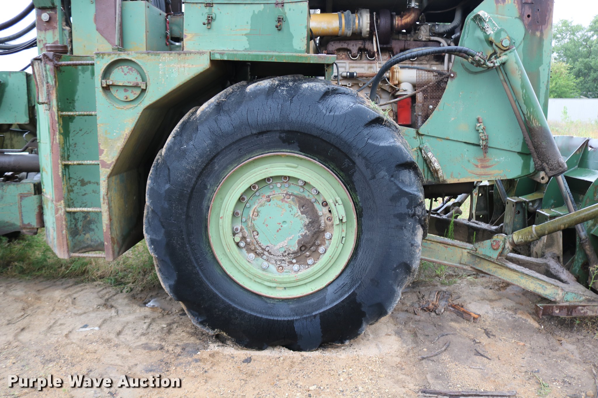 Purple Wave is selling a used Conventional Scraper in Kansas. This item is a Clark 290M conventional scraper with the following: 3,017 hours on meter, Hour meter replaced, Approximately 2,005 hours on replaced meter, Cummins 360 six cylinder turbo diesel engine, Manual transmission, 4F-2R gears, Four wheel drive, Enclosed cab, Heat, Suspension seat, Wipers, Backup alarm, Model CT4 bowl, 9' bowl width, 18 cu.yd. bowl capacity, Hydraulic lift, Serial S-64588-CT4, Three lever controls, 136"W blade, Bolt-on cutting edge, Rear push block, Air brakes, 29.5-29 tires, Serial 61373