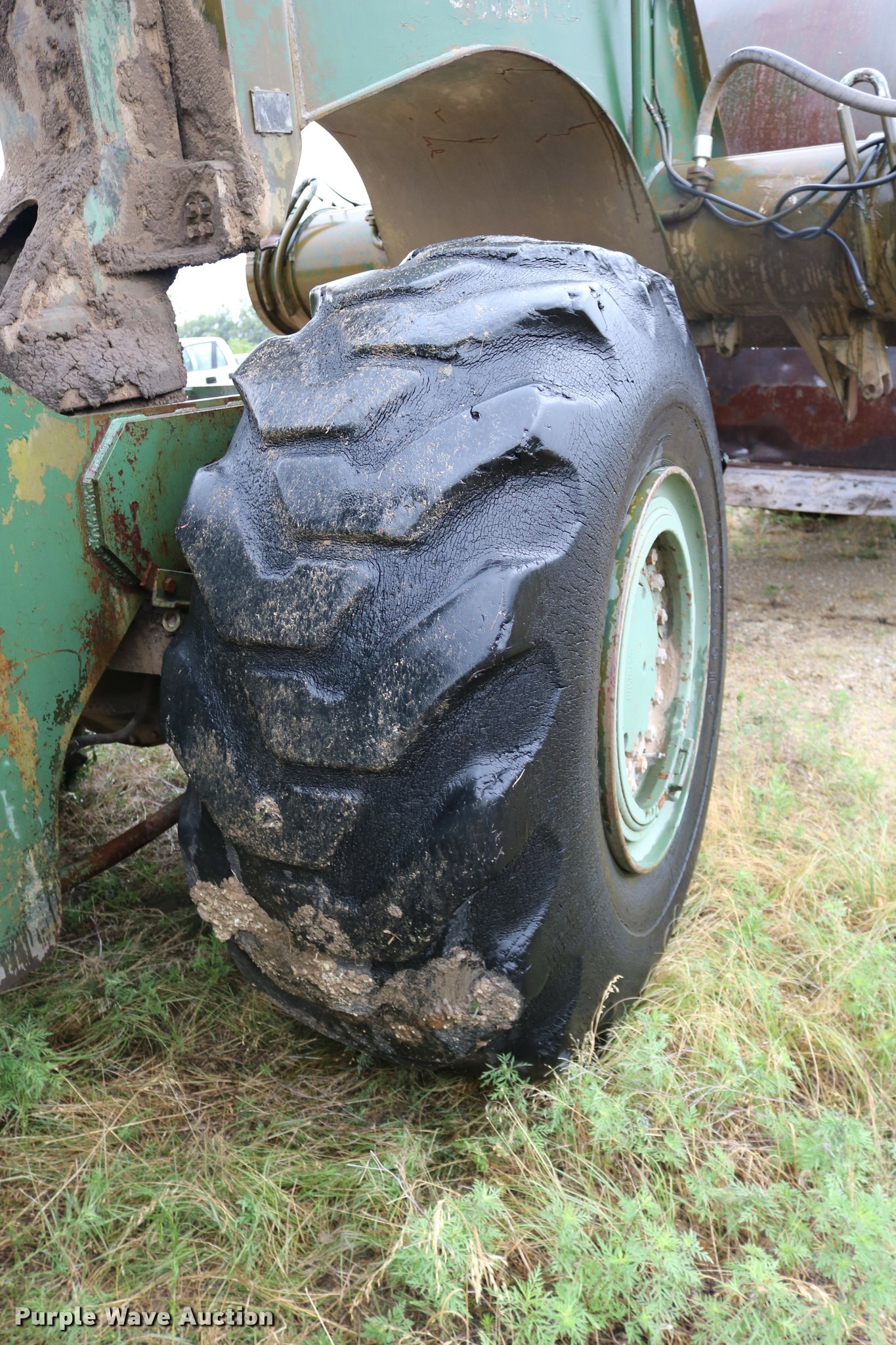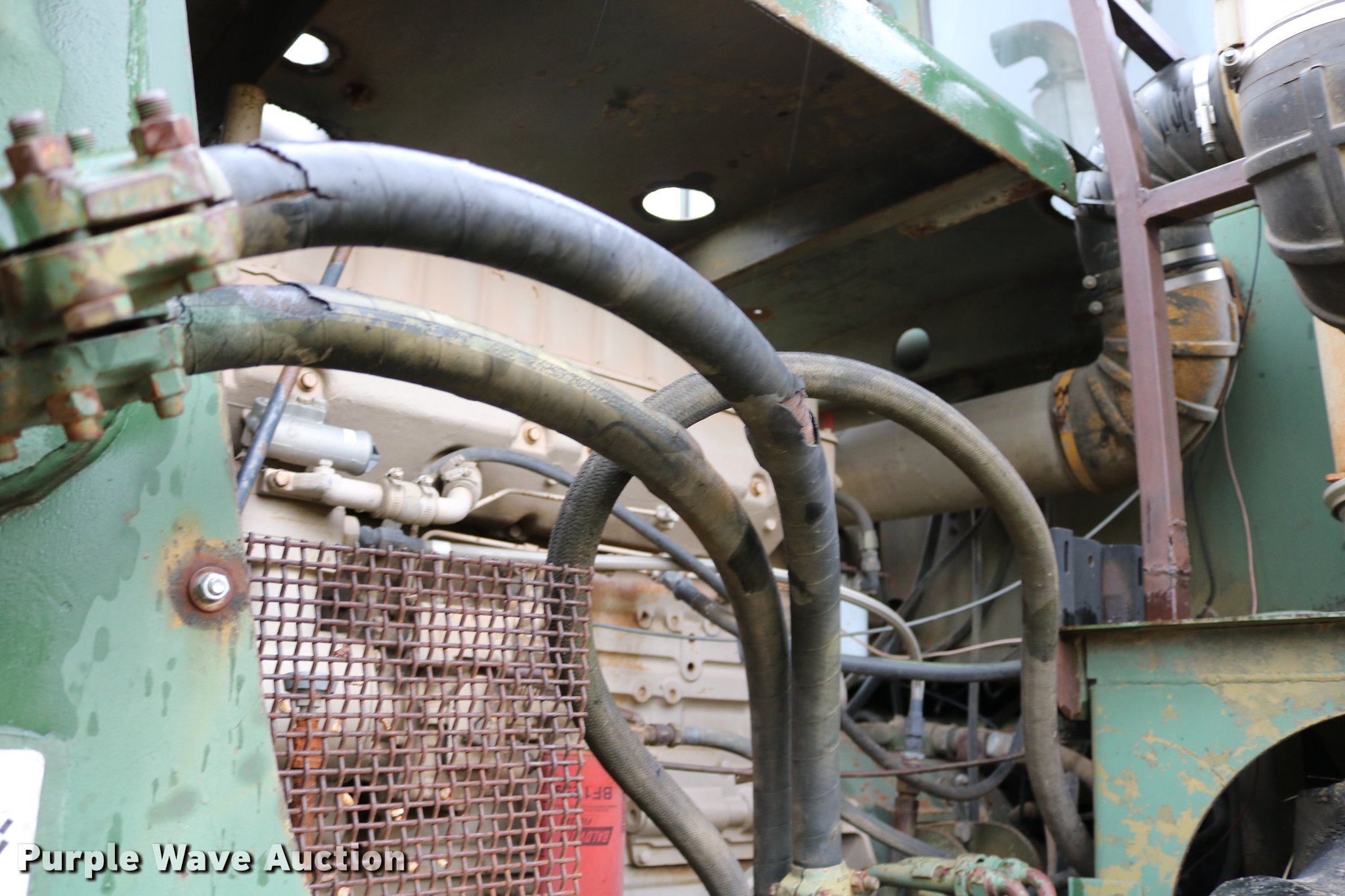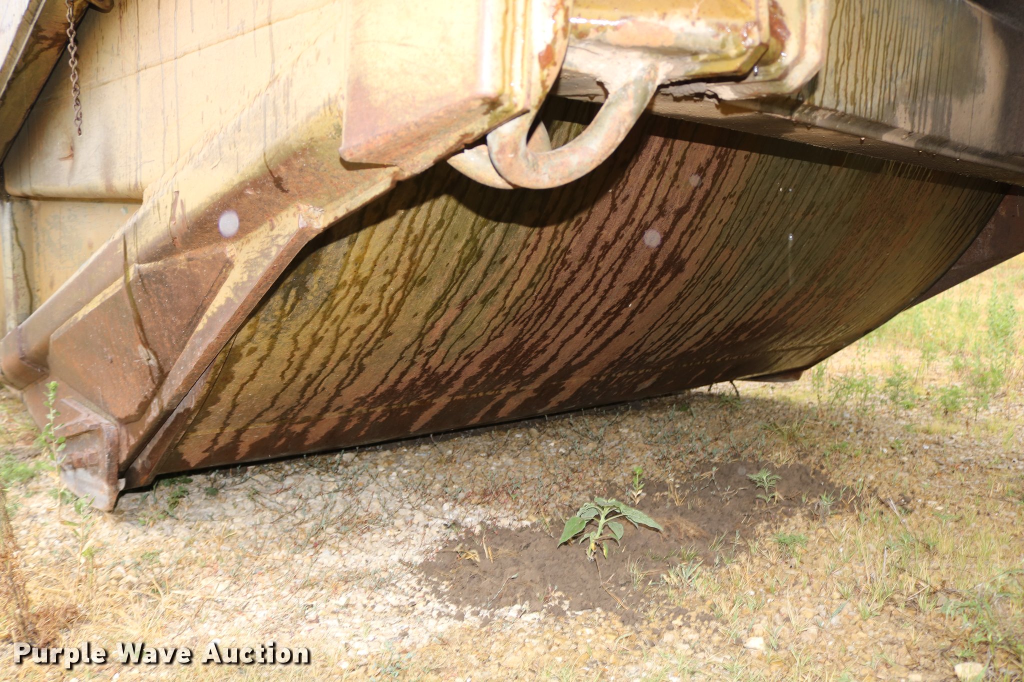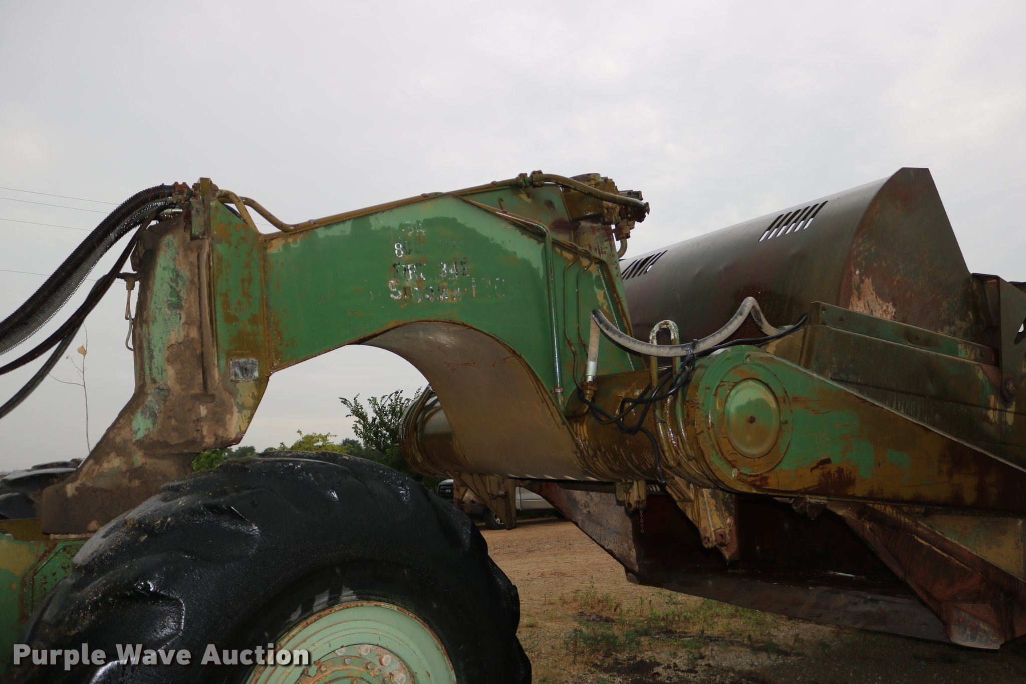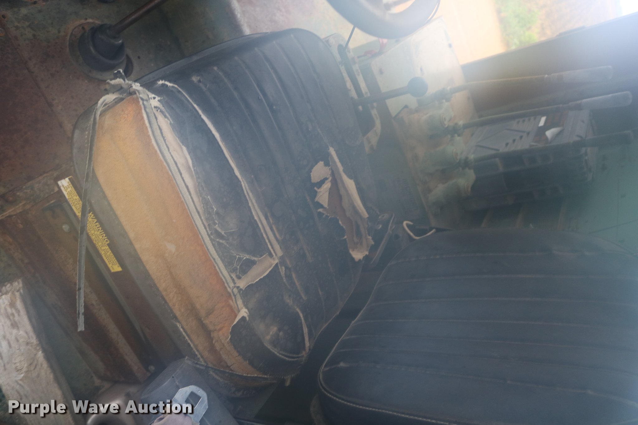 Purple Wave is selling a used Conventional Scraper in Kansas. This item is a Clark 290M conventional scraper with the following: 3,017 hours on meter, Hour meter replaced, Approximately 2,005 hours on replaced meter, Cummins 360 six cylinder turbo diesel engine, Manual transmission, 4F-2R gears, Four wheel drive, Enclosed cab, Heat, Suspension seat, Wipers, Backup alarm, Model CT4 bowl, 9' bowl width, 18 cu.yd. bowl capacity, Hydraulic lift, Serial S-64588-CT4, Three lever controls, 136"W blade, Bolt-on cutting edge, Rear push block, Air brakes, 29.5-29 tires, Serial 61373