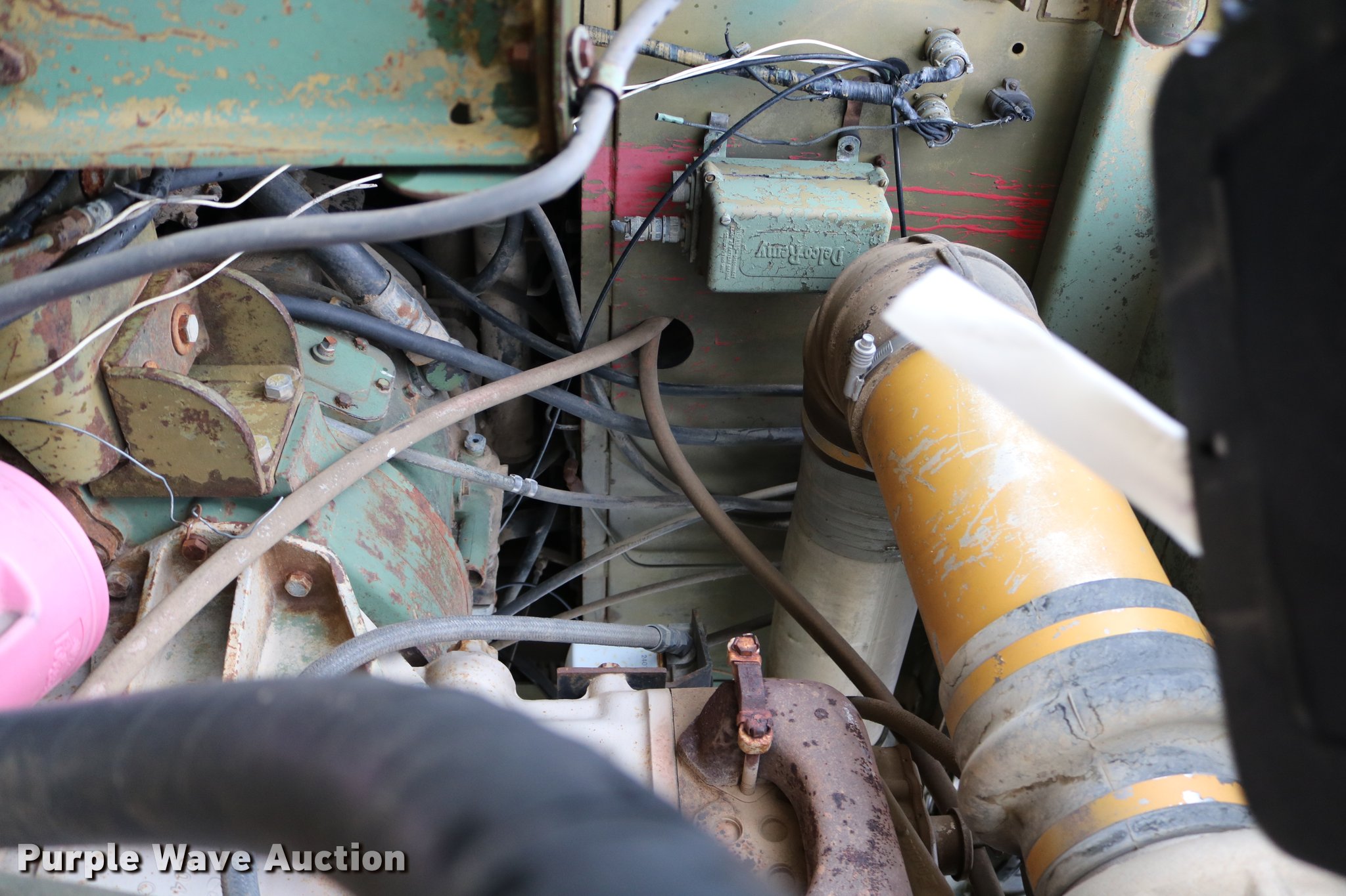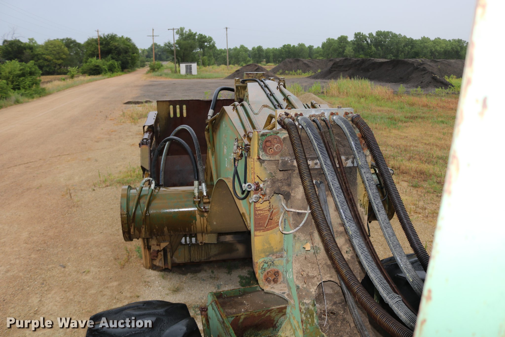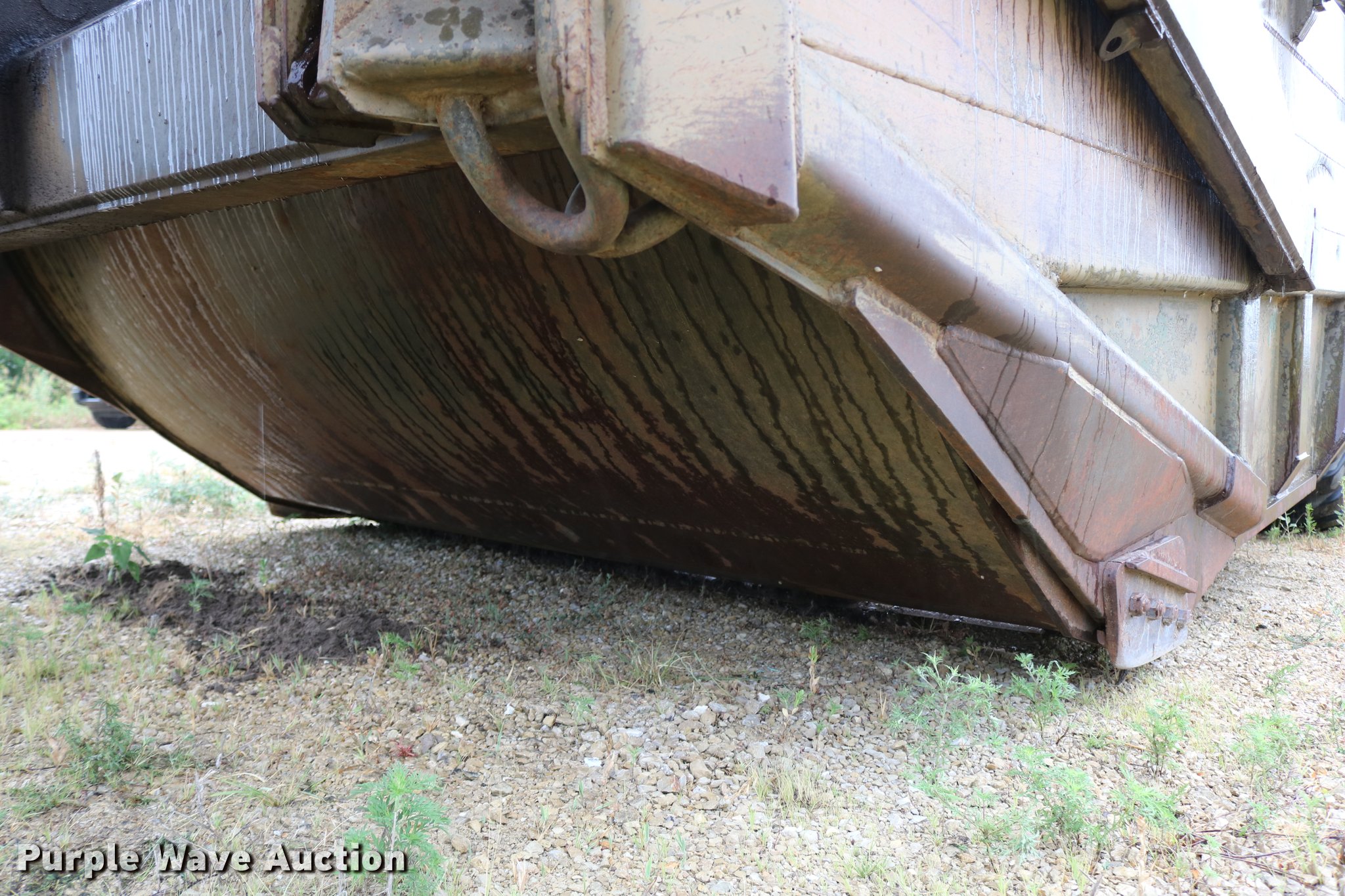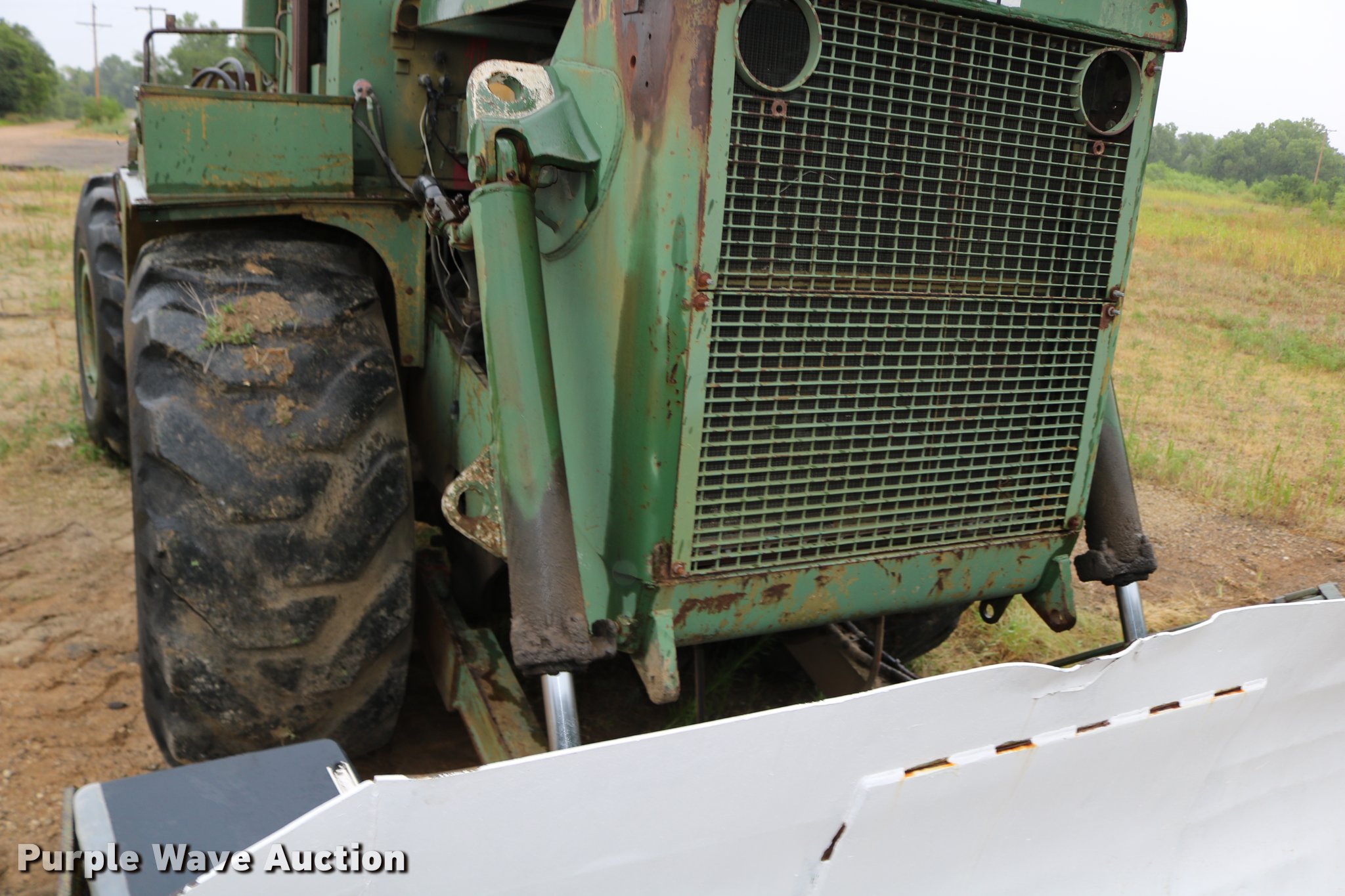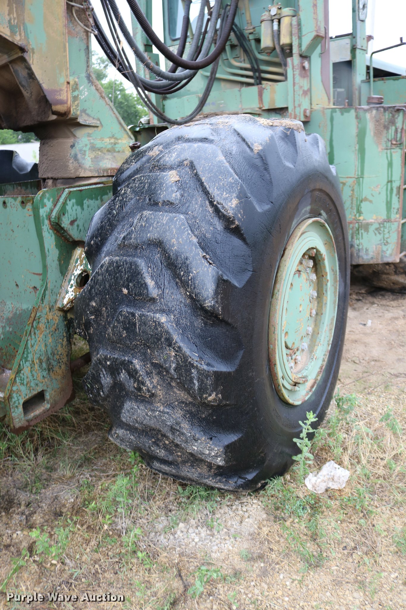 Purple Wave is selling a used Conventional Scraper in Kansas. This item is a Clark 290M conventional scraper with the following: 3,017 hours on meter, Hour meter replaced, Approximately 2,005 hours on replaced meter, Cummins 360 six cylinder turbo diesel engine, Manual transmission, 4F-2R gears, Four wheel drive, Enclosed cab, Heat, Suspension seat, Wipers, Backup alarm, Model CT4 bowl, 9' bowl width, 18 cu.yd. bowl capacity, Hydraulic lift, Serial S-64588-CT4, Three lever controls, 136"W blade, Bolt-on cutting edge, Rear push block, Air brakes, 29.5-29 tires, Serial 61373