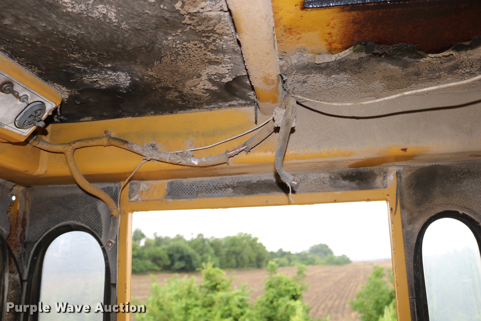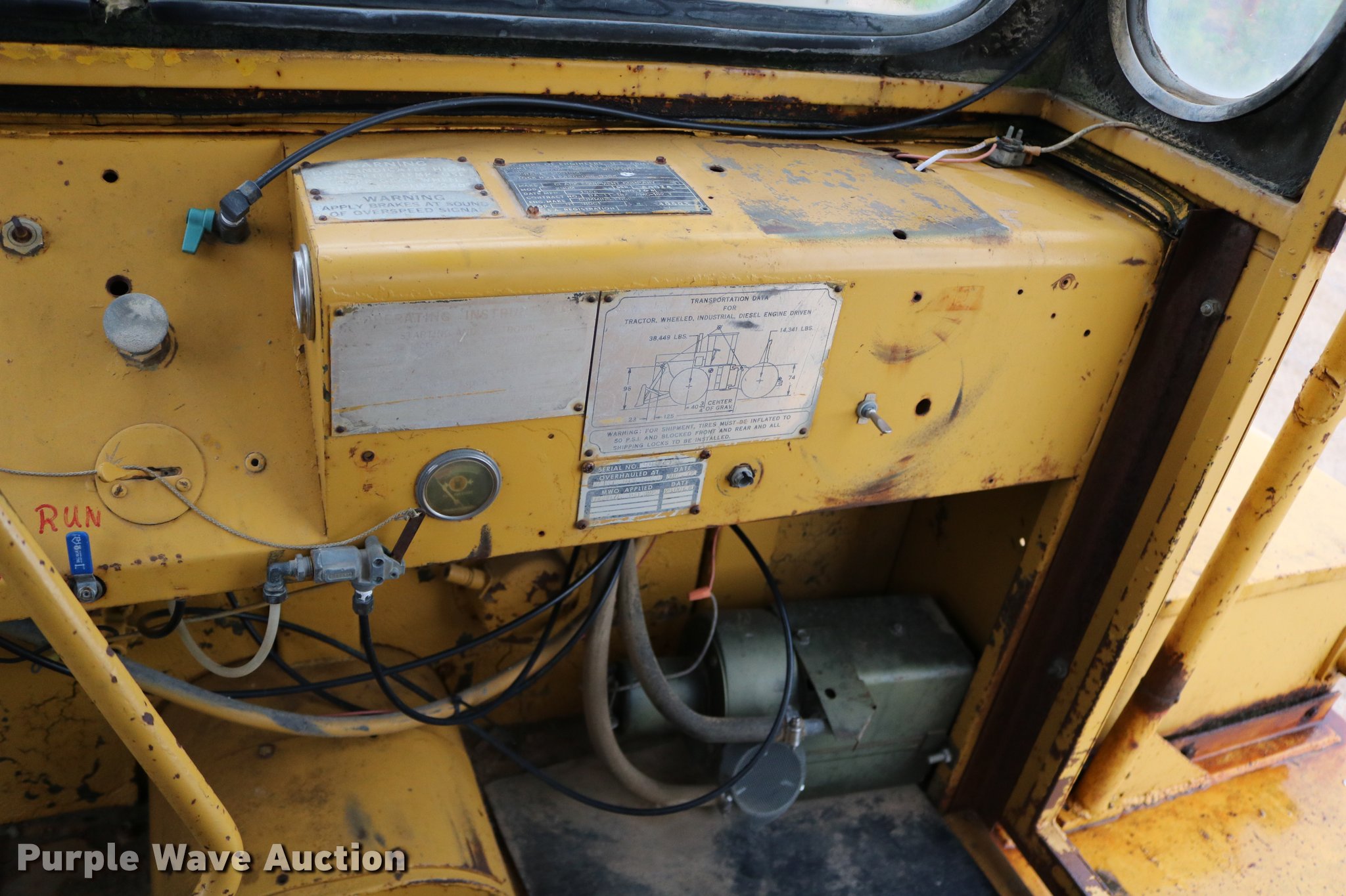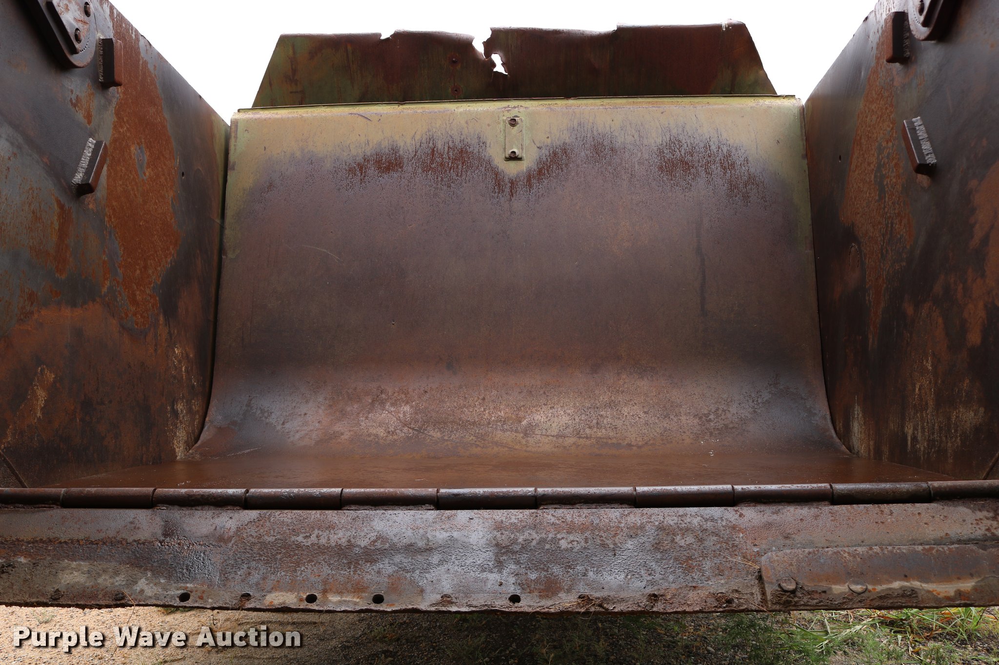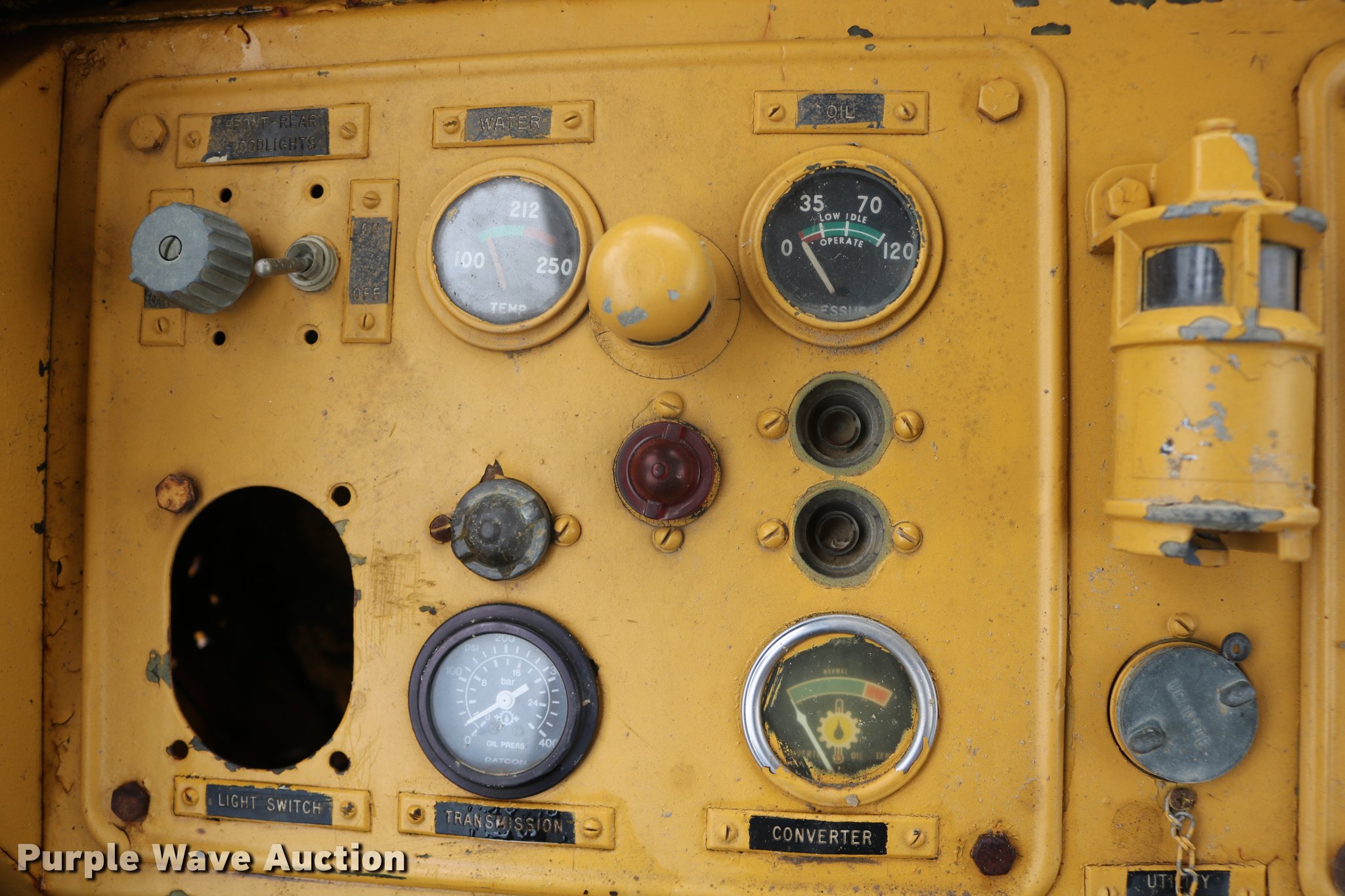 Purple Wave is selling a used Conventional Scraper in Kansas. This item is a Clark 290M conventional scraper with the following: 21,825 miles on odometer, Hour meter replaced, 2,701 hours on meter, 1,452 hours on replaced meter, Cummins 400 six cylinder turbo diesel engine, Manual transmission, 4F-2R gears, Four wheel drive, Enclosed cab, Heat, Suspension seat, Wipers, Backup alarm, 9' bowl width, 18 cu.yd. capacity, Hydraulic lift, Three lever controls, 134" blade, Bolt-on cutting edge, 29.5-29 tires, Windows cracked, Bolt on cutting edges missing, Serial 60523