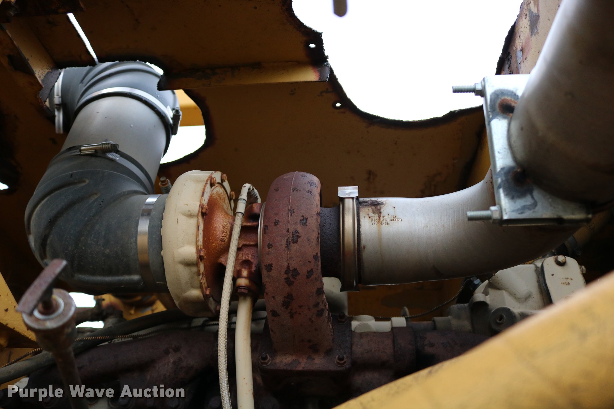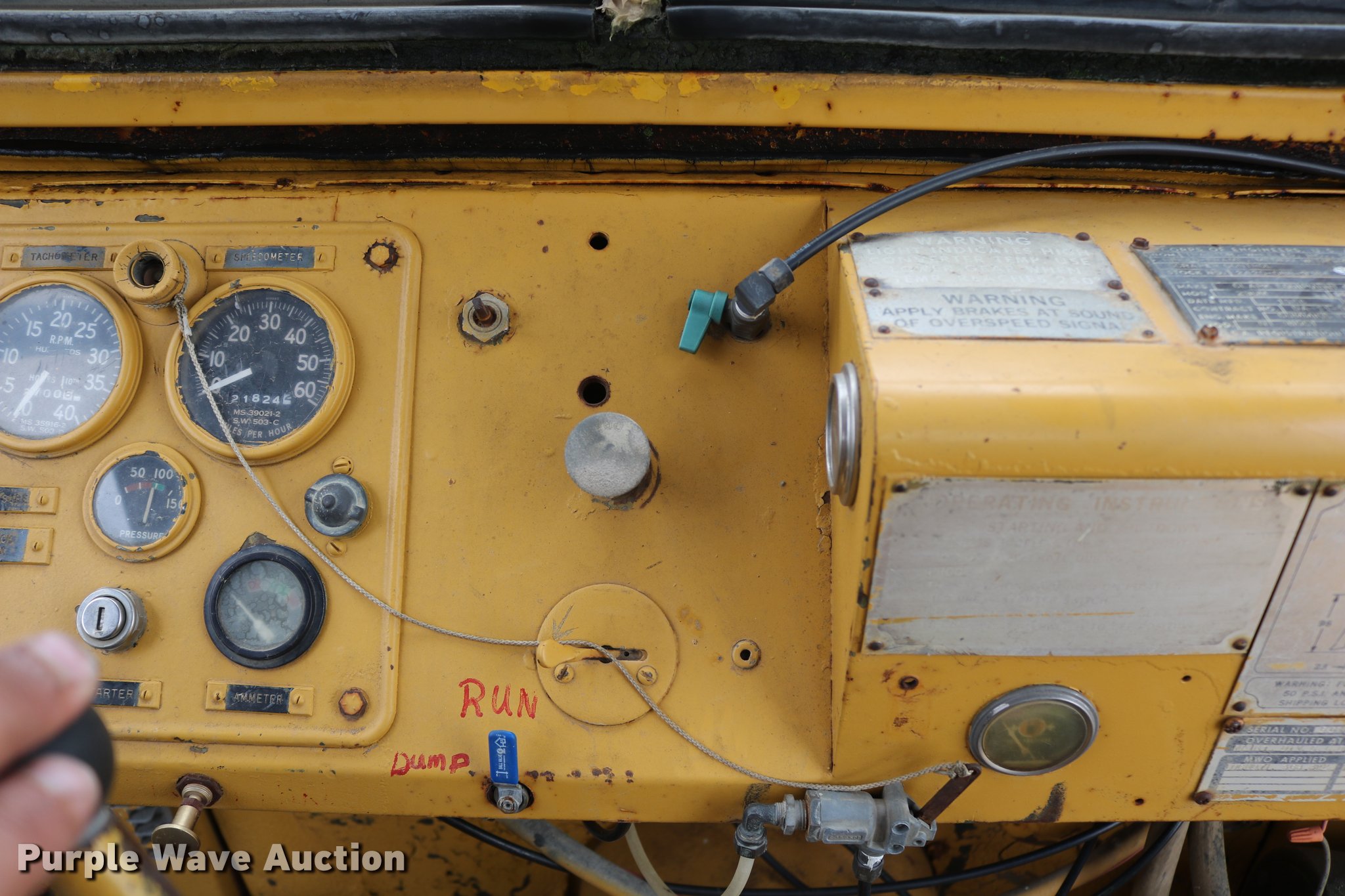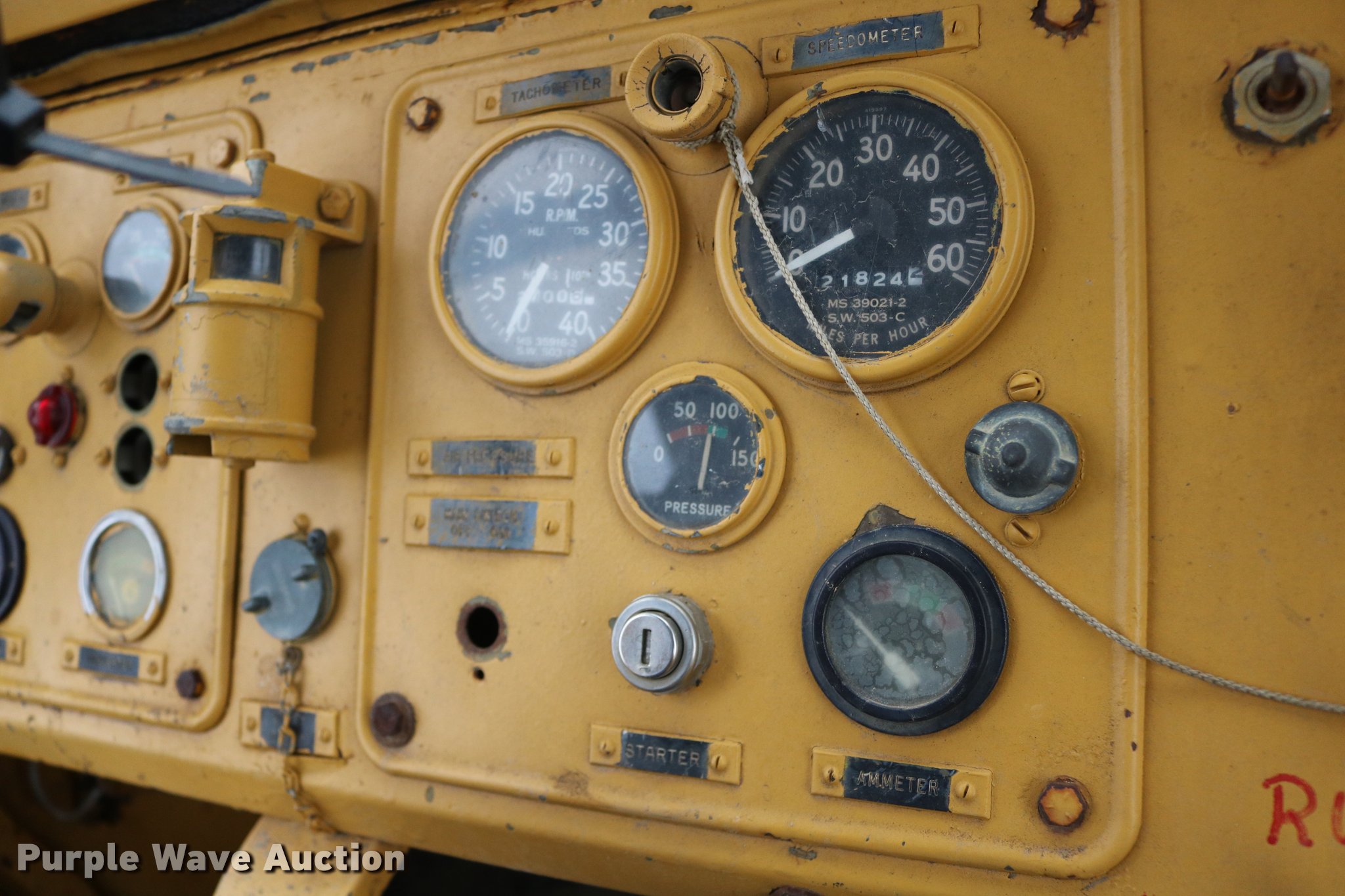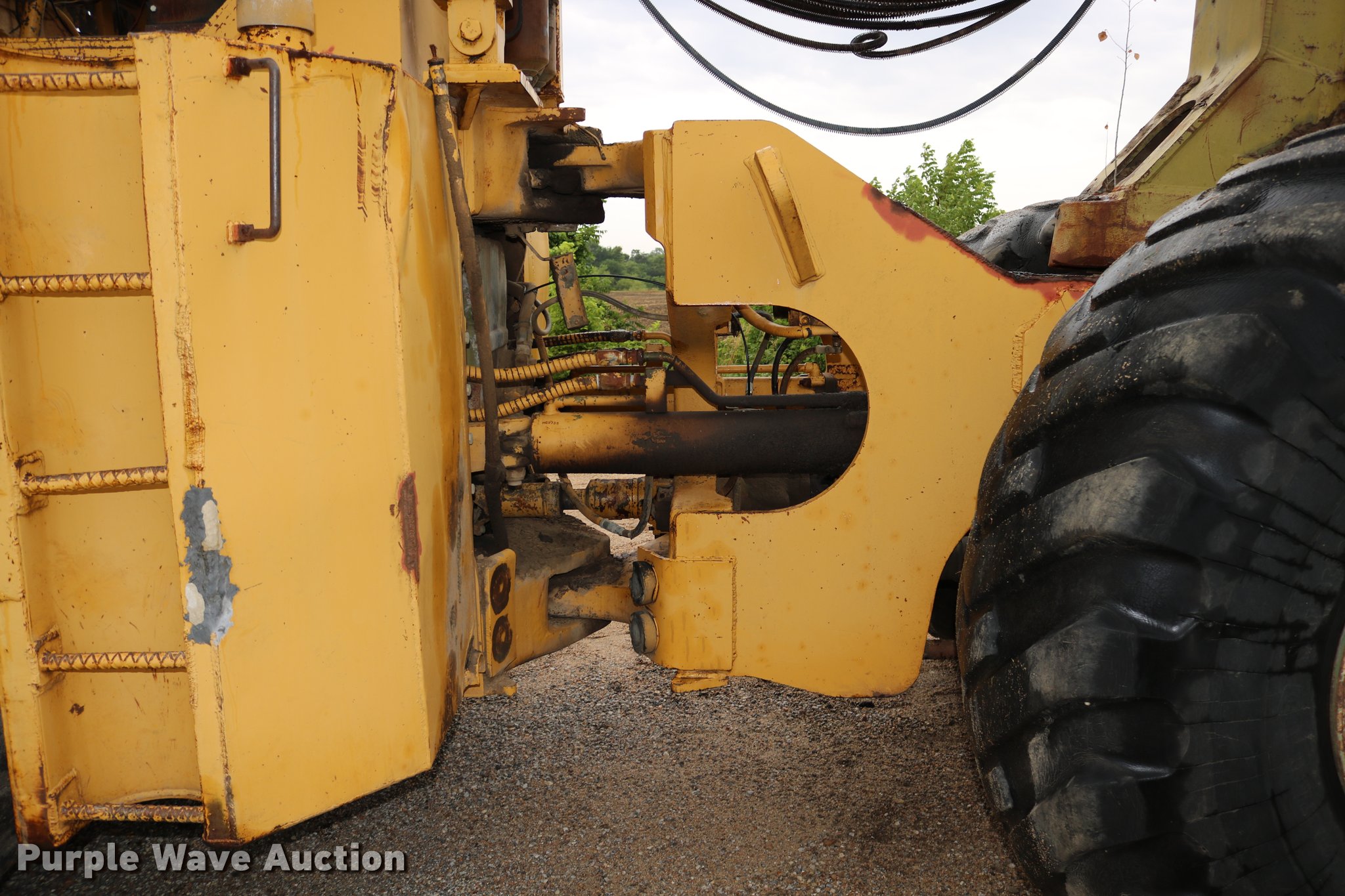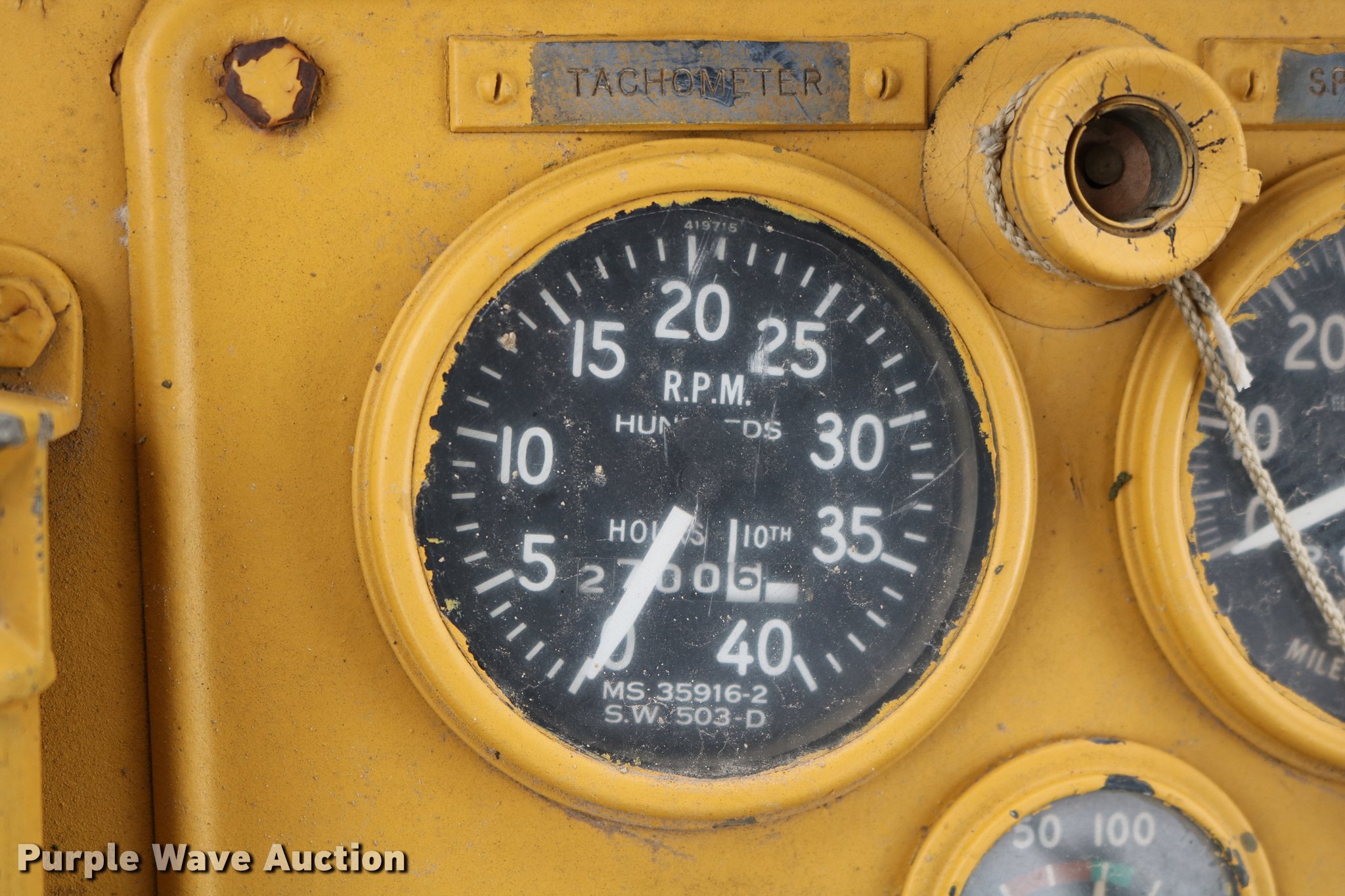 Purple Wave is selling a used Conventional Scraper in Kansas. This item is a Clark 290M conventional scraper with the following: 21,825 miles on odometer, Hour meter replaced, 2,701 hours on meter, 1,452 hours on replaced meter, Cummins 400 six cylinder turbo diesel engine, Manual transmission, 4F-2R gears, Four wheel drive, Enclosed cab, Heat, Suspension seat, Wipers, Backup alarm, 9' bowl width, 18 cu.yd. capacity, Hydraulic lift, Three lever controls, 134" blade, Bolt-on cutting edge, 29.5-29 tires, Windows cracked, Bolt on cutting edges missing, Serial 60523