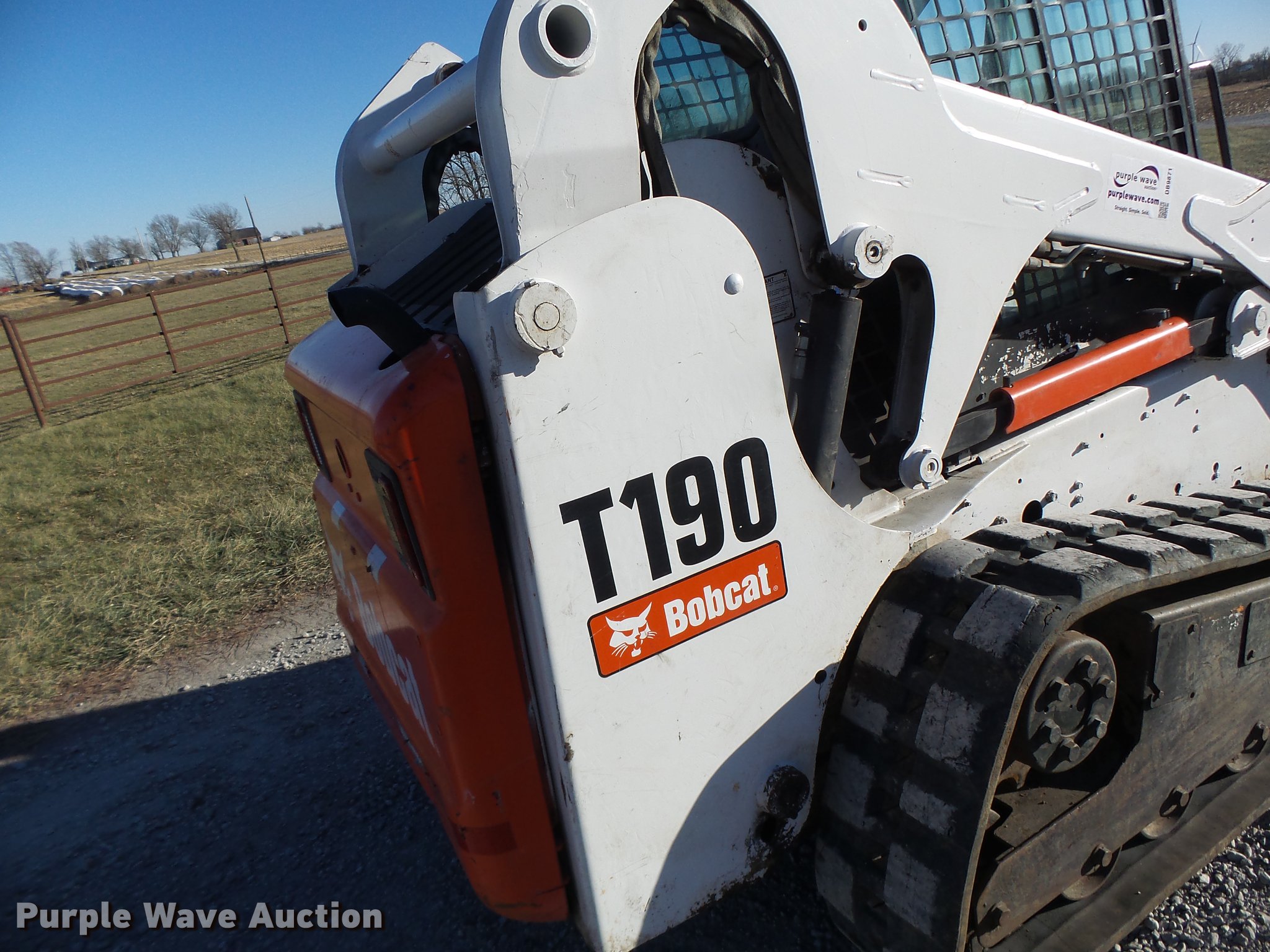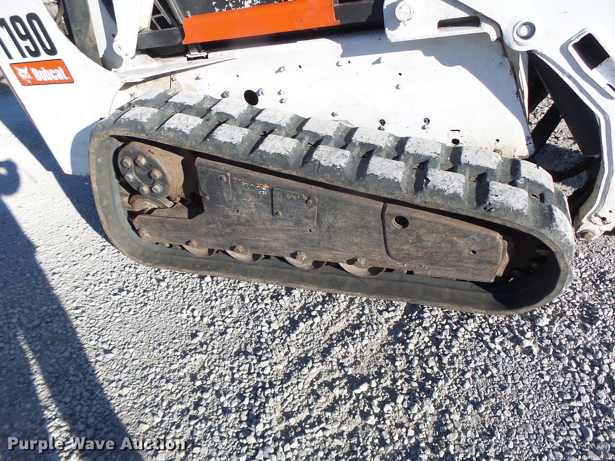 Purple Wave is selling a used Tracked Skid Steer Loader in Missouri. This item is a 2007 Bobcat T190 skid steer with the following: 2,894 hours on meter, Four cylinder turbo diesel engine, Hydrostatic transmission, Enclosed cab, AC and heat, AM/FM, Joystick controls, Iso and H patterns, Spring suspension seat, High Flow auxiliary hydraulics, 12"W tracks, Fuel injector replaced, Drive belt replace, Idler pulley replaced, Bushings and pivot pins replaced, Cab enclosure broken, Serial 531614205