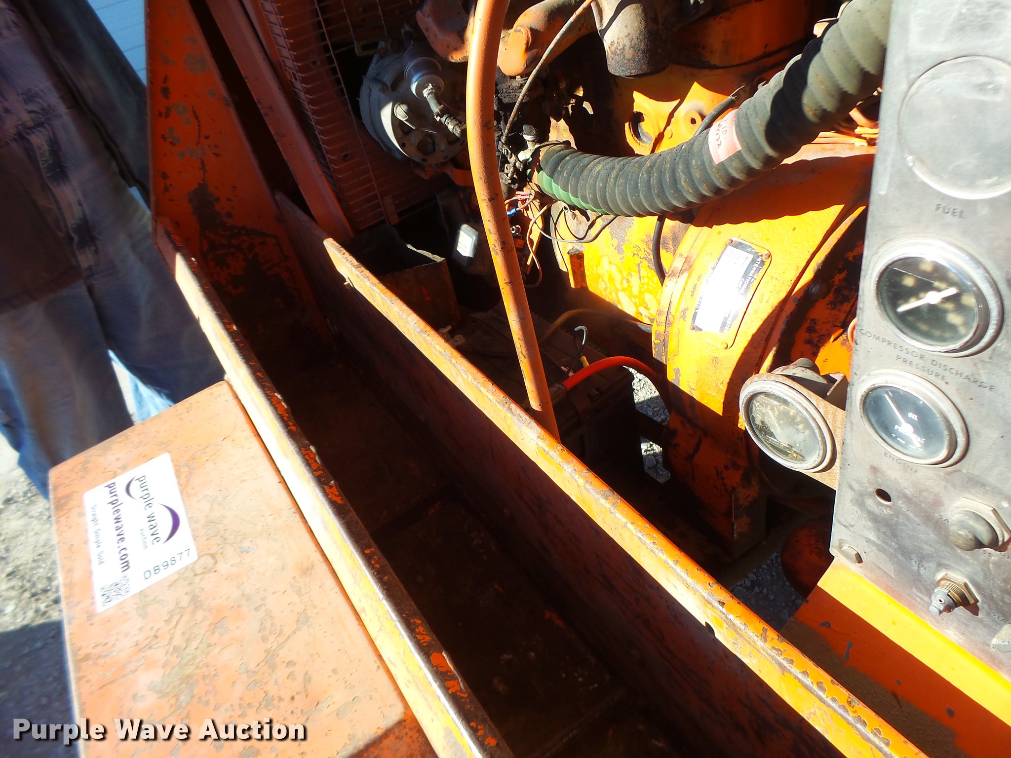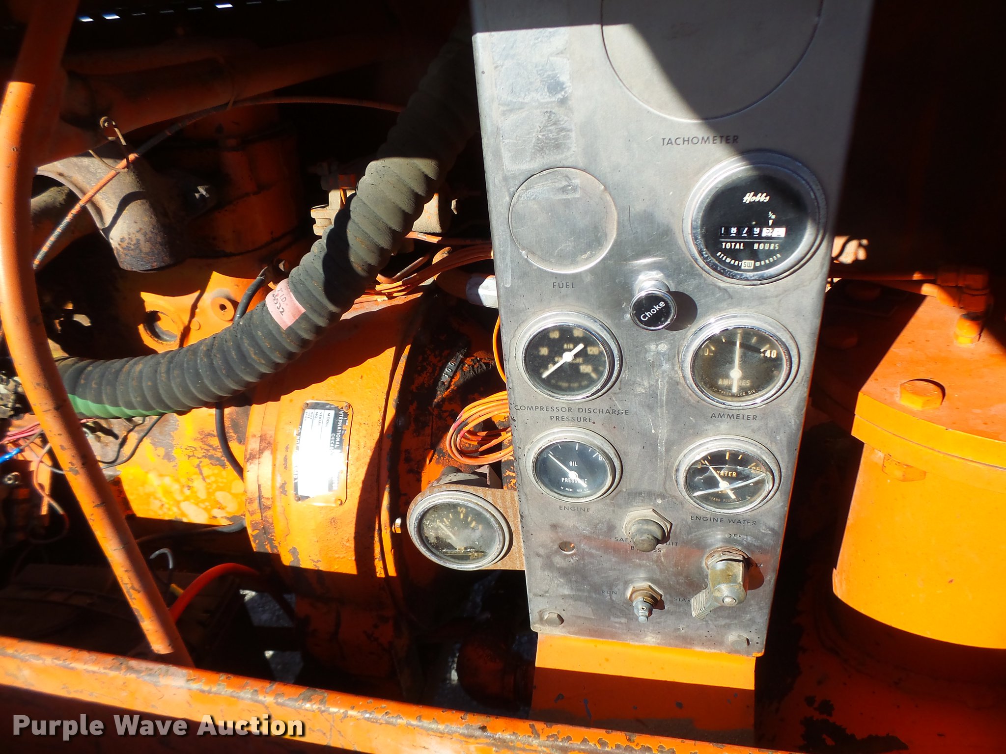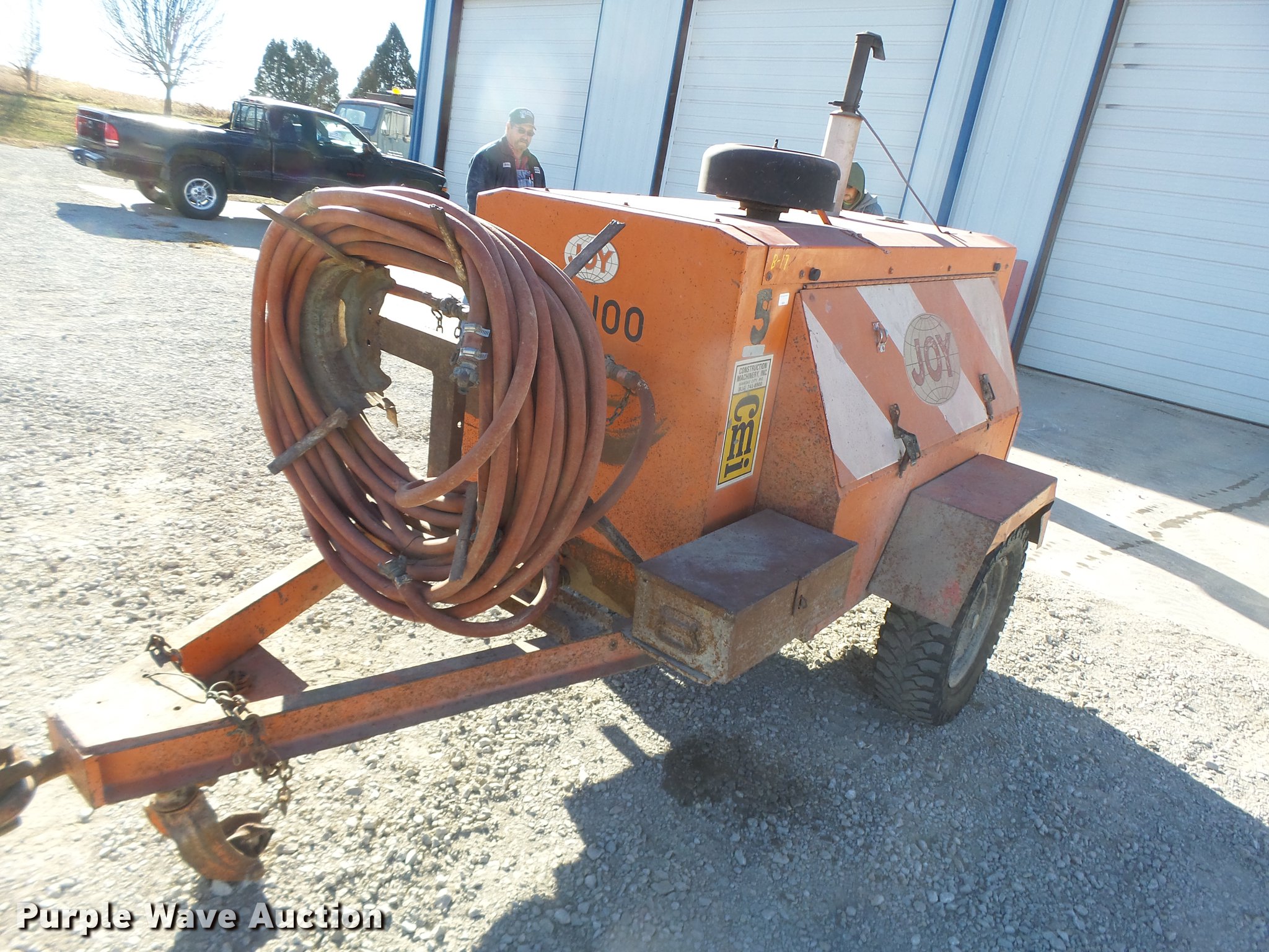 Purple Wave is selling a used Air Compressor in Missouri. This item is a Joy RPV100 air compressor with the following: 1,879 hours on meter, Four cylinder gas engine, International Harvester UC153 pump, 100 CFM, Hose, Jack hammer, Bits, Tamper, Pneumatic saw, 2" ball hitch, 215/75R15 tires, Serial 114080