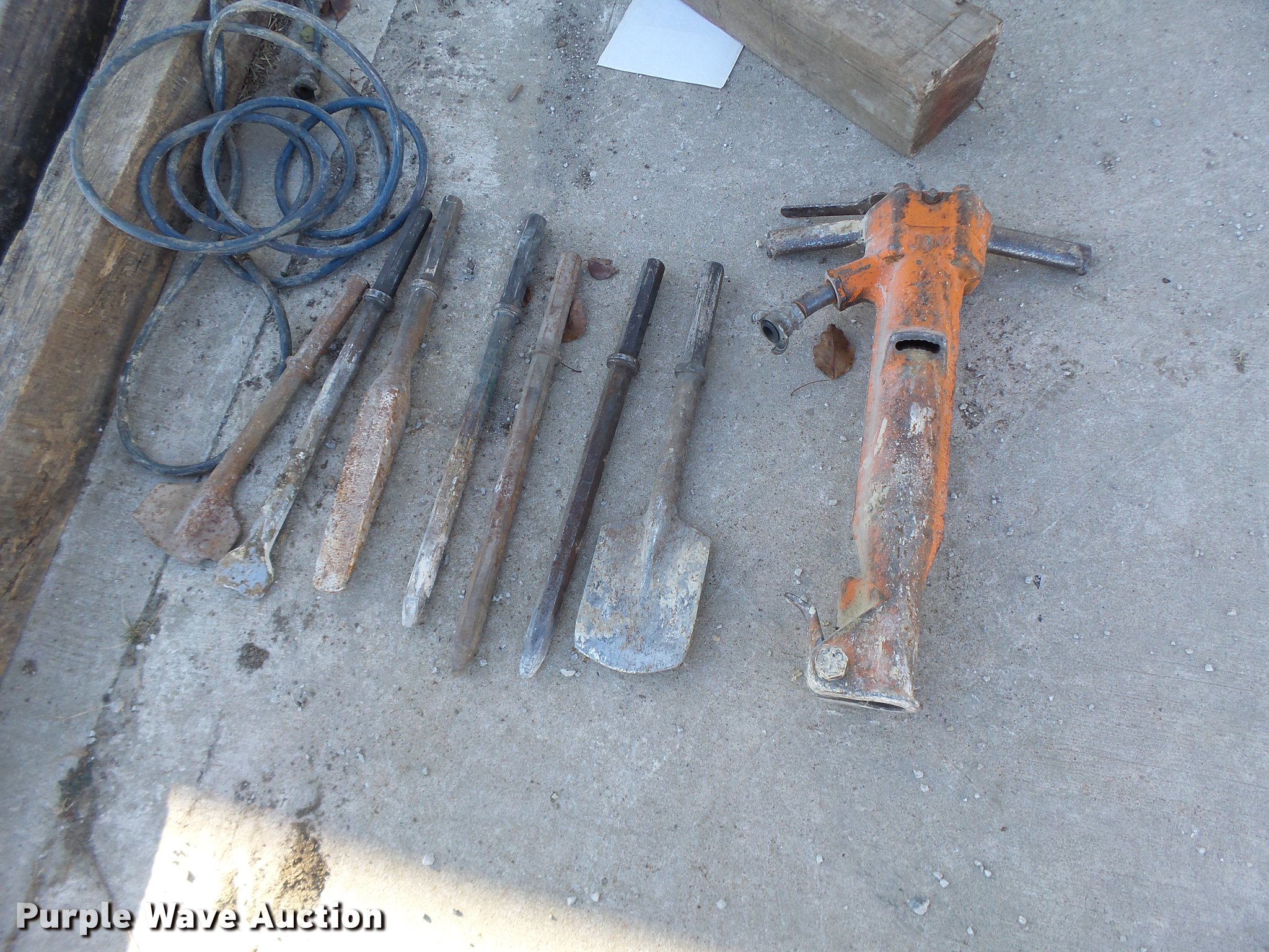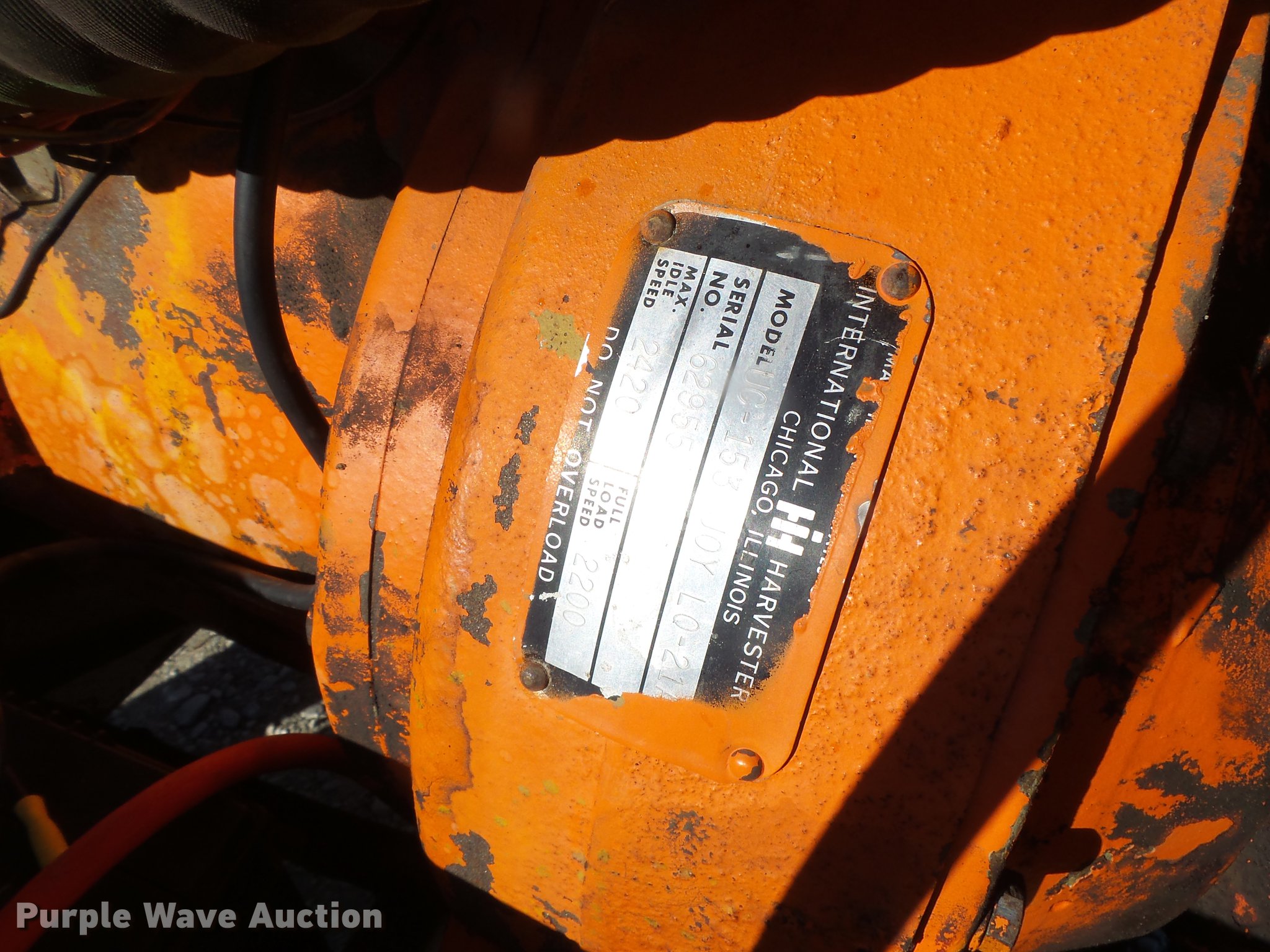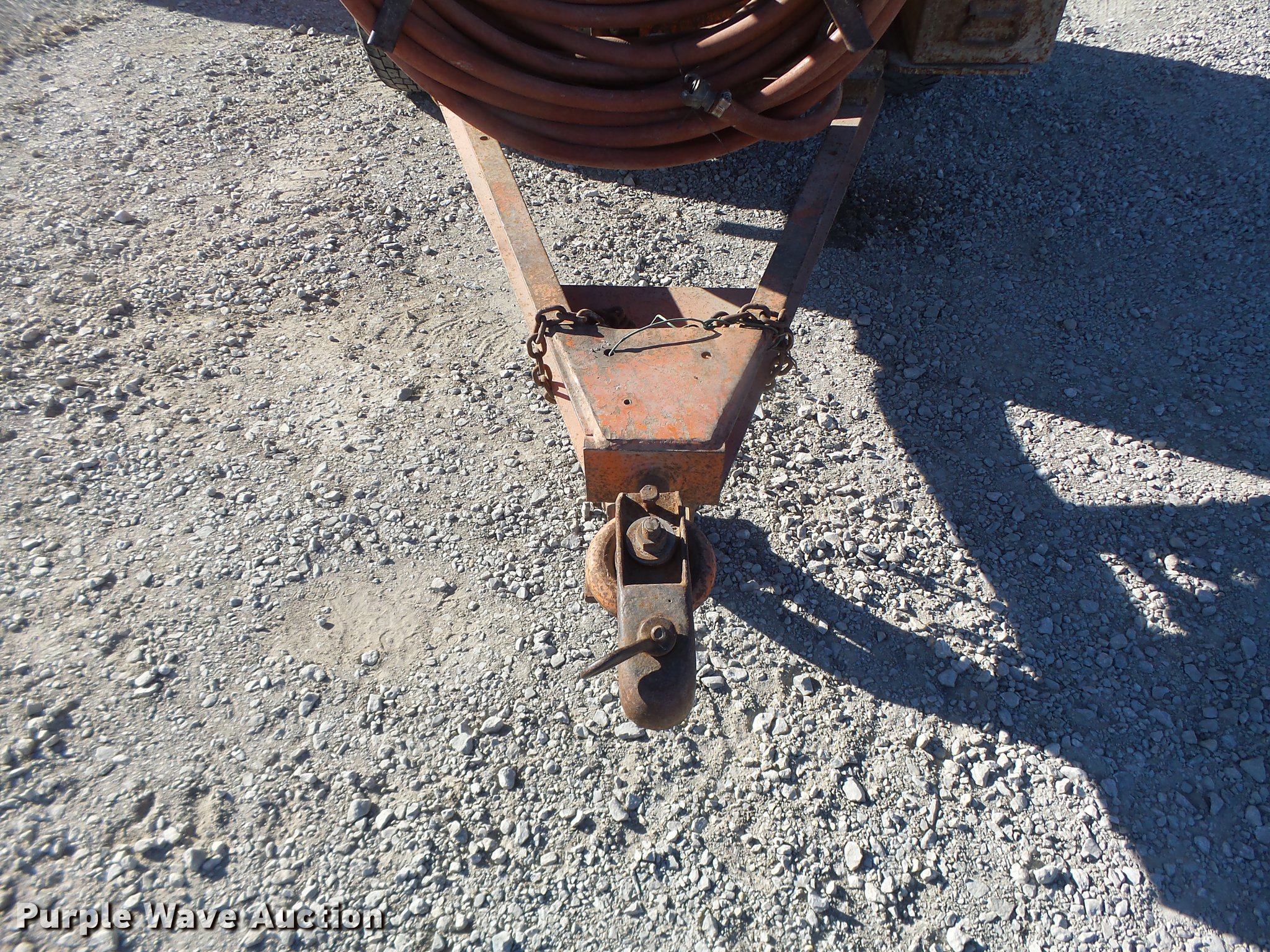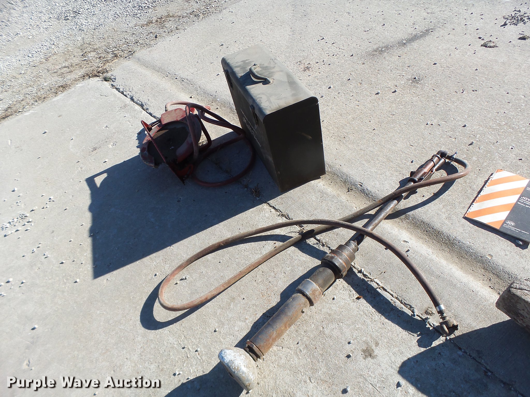 Purple Wave is selling a used Air Compressor in Missouri. This item is a Joy RPV100 air compressor with the following: 1,879 hours on meter, Four cylinder gas engine, International Harvester UC153 pump, 100 CFM, Hose, Jack hammer, Bits, Tamper, Pneumatic saw, 2" ball hitch, 215/75R15 tires, Serial 114080