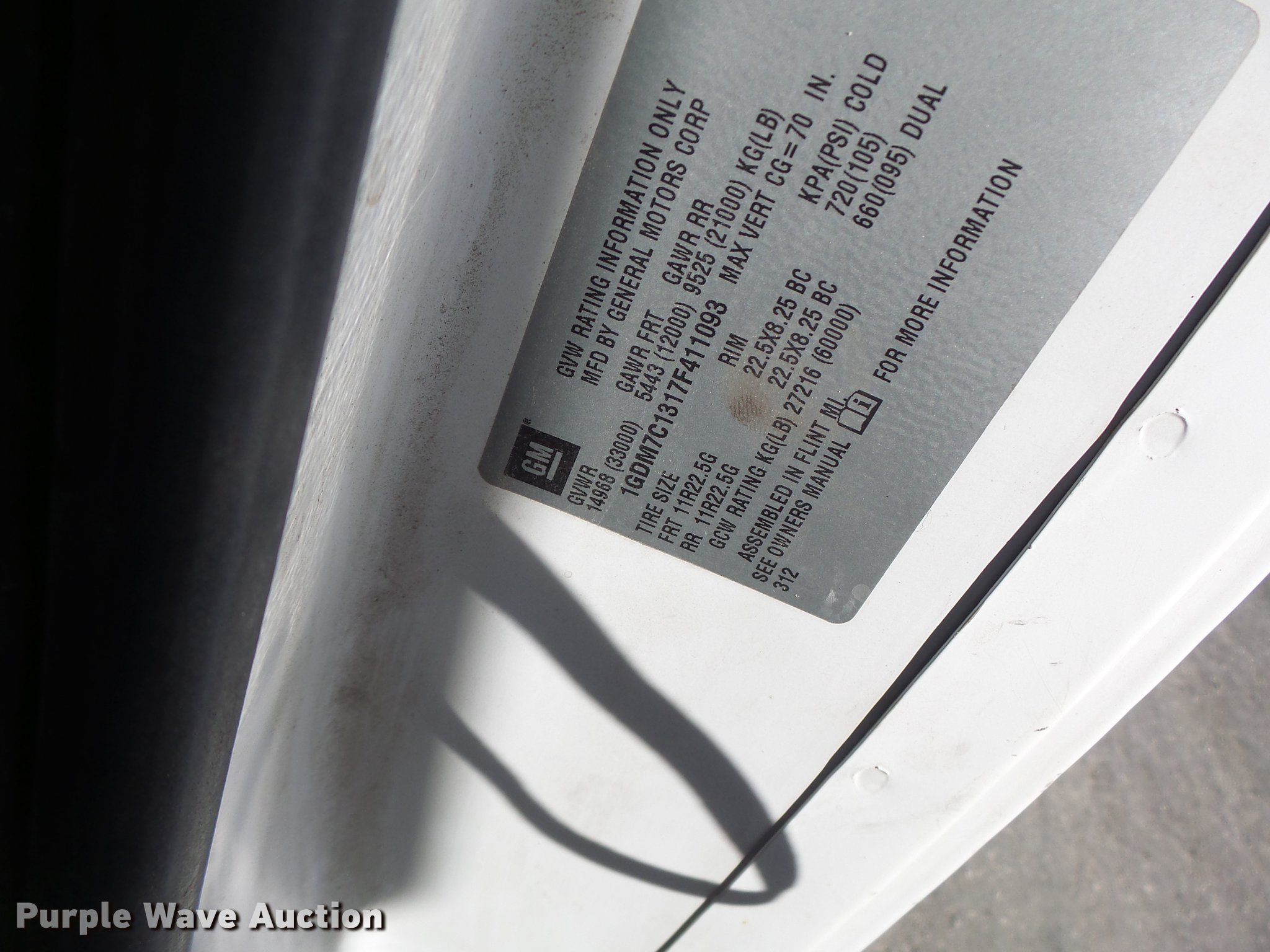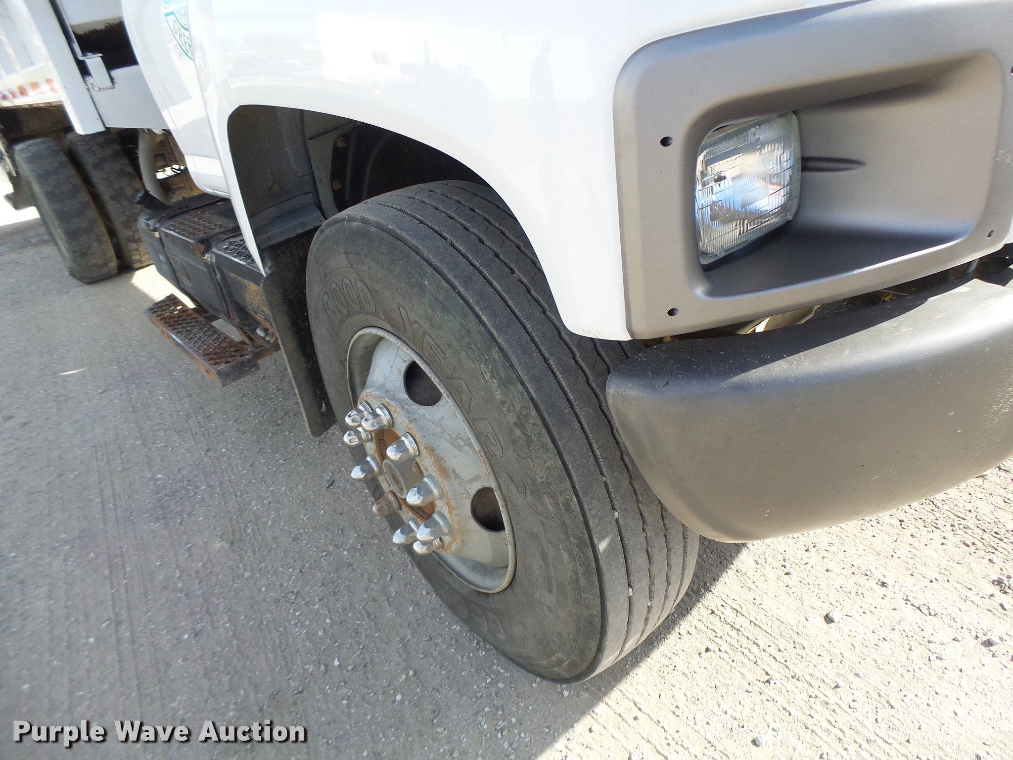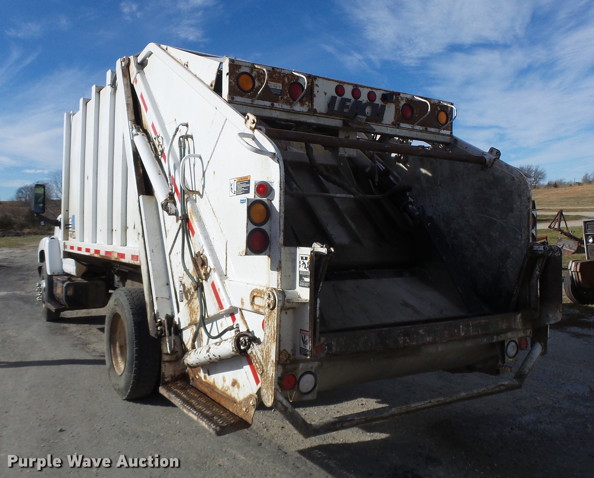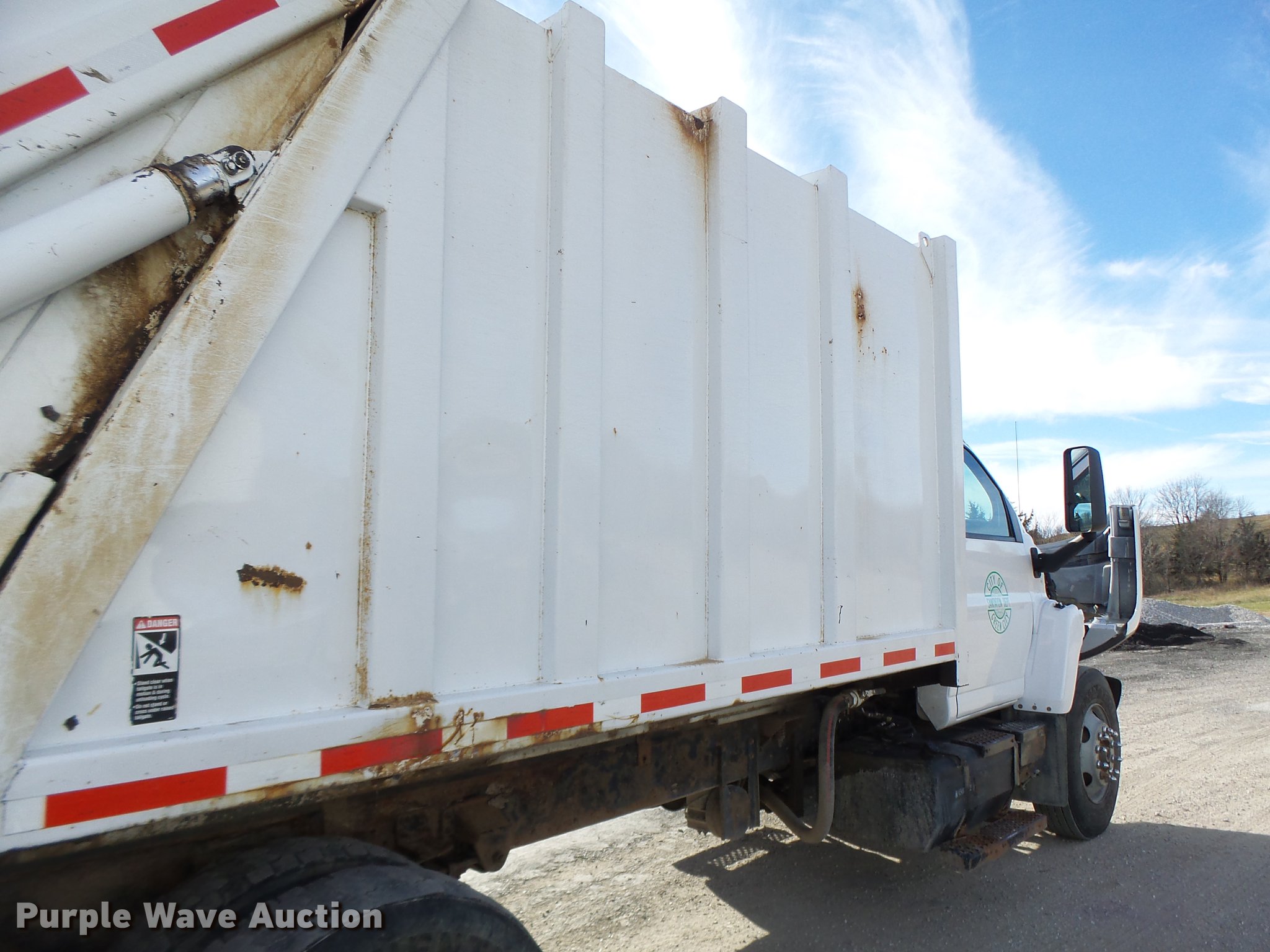 Purple Wave is selling a used Refuse Truck in Missouri. This item is a 2007 GMC C7500 refuse truck with the following: 125,684 miles on odometer, Isuzu 6HK1 7.8L L6 turbo diesel engine, Six speed manual transmission, Single axle, AC and heat, AM/FM, Suspension seat, Leach Alpha refuse bed, Rear load, 18 cu.yd. capacity, Serial 4627, Dual fuel tanks, Spring suspension, Air brakes, 11R22.5 tires
