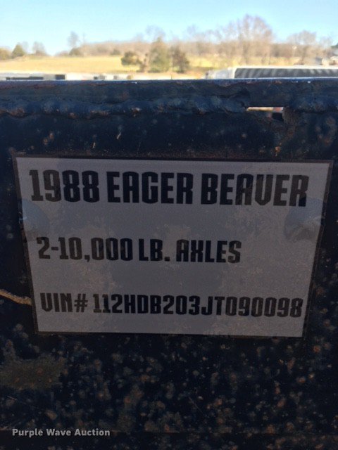 1988 Eager Beaver equipment trailer has sold in Eugene, Missouri for $5610. Item DB9891 sold on December 28th, 2017.
