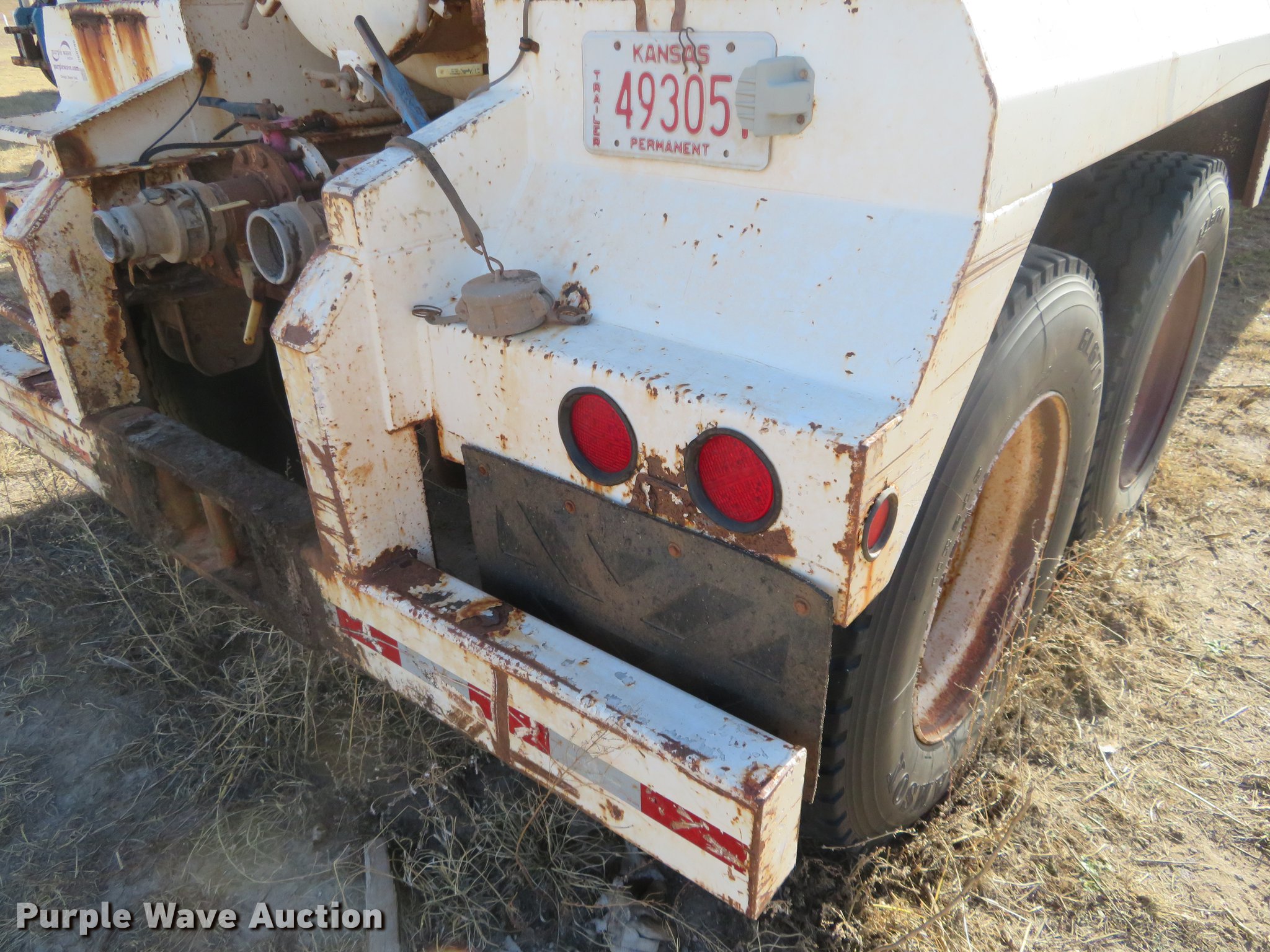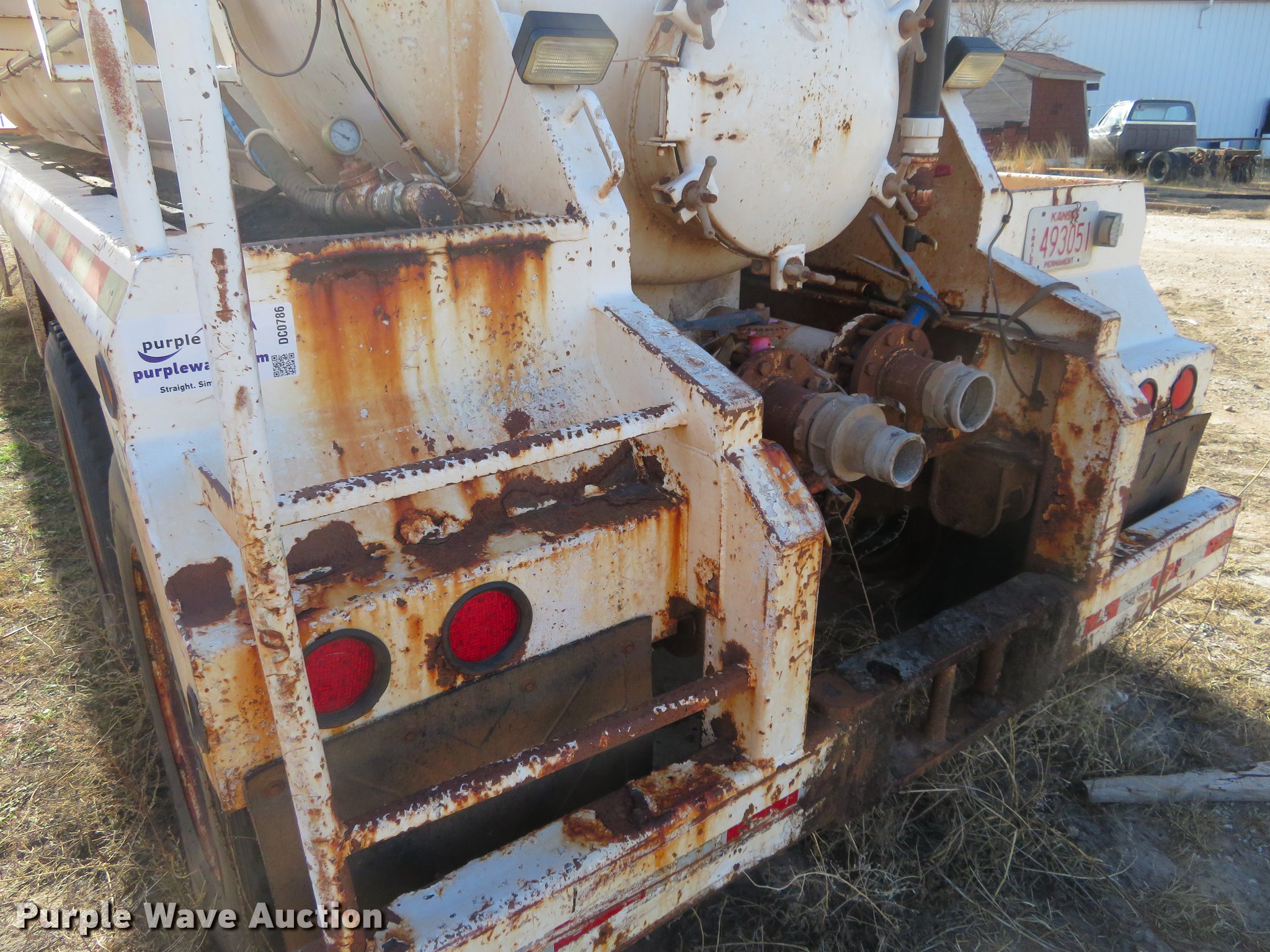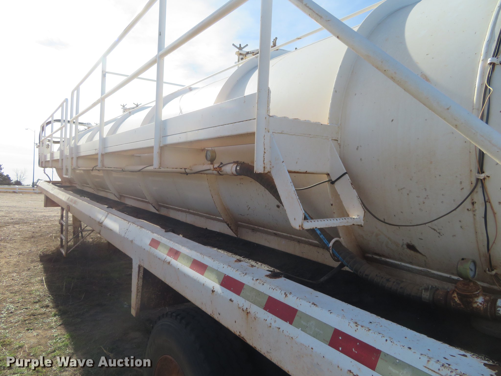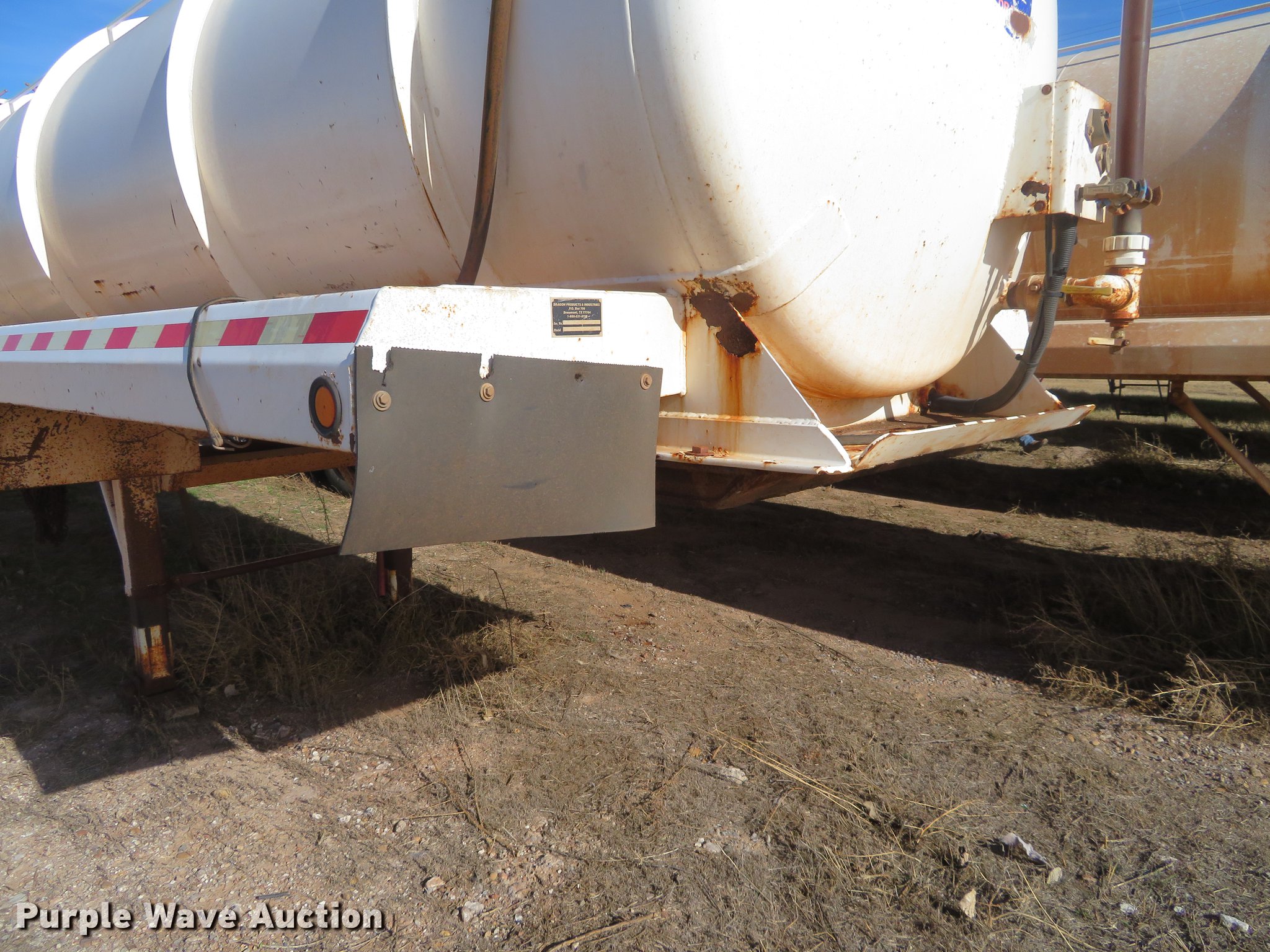 Purple Wave is selling a used Tank Trailer in Kansas. This item is a 2007 Dragon vacuum trailer with the following: Steel construction, 160 barrel capacity, Tank coating, (2) outlet valves, (4) manways, Dual leg landing gear, Fifth wheel plate, Tandem axle, Spring suspension, Air brakes, 11R24.5 tires