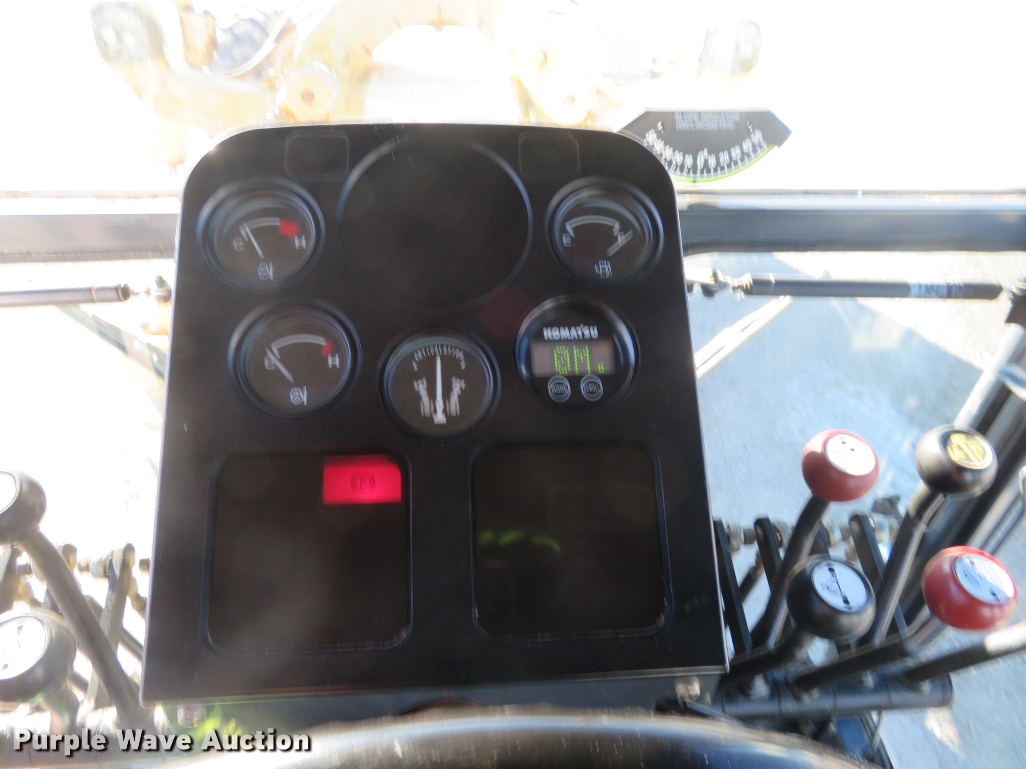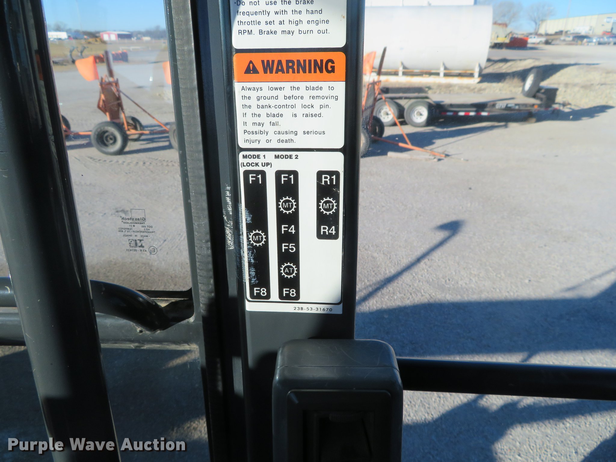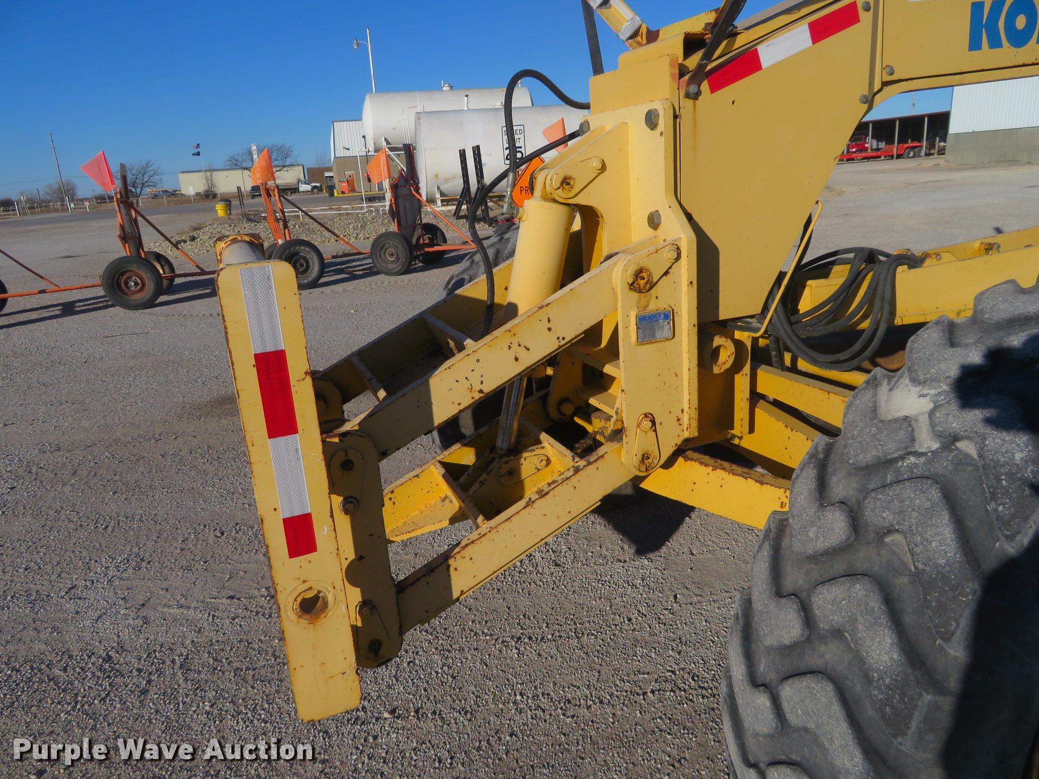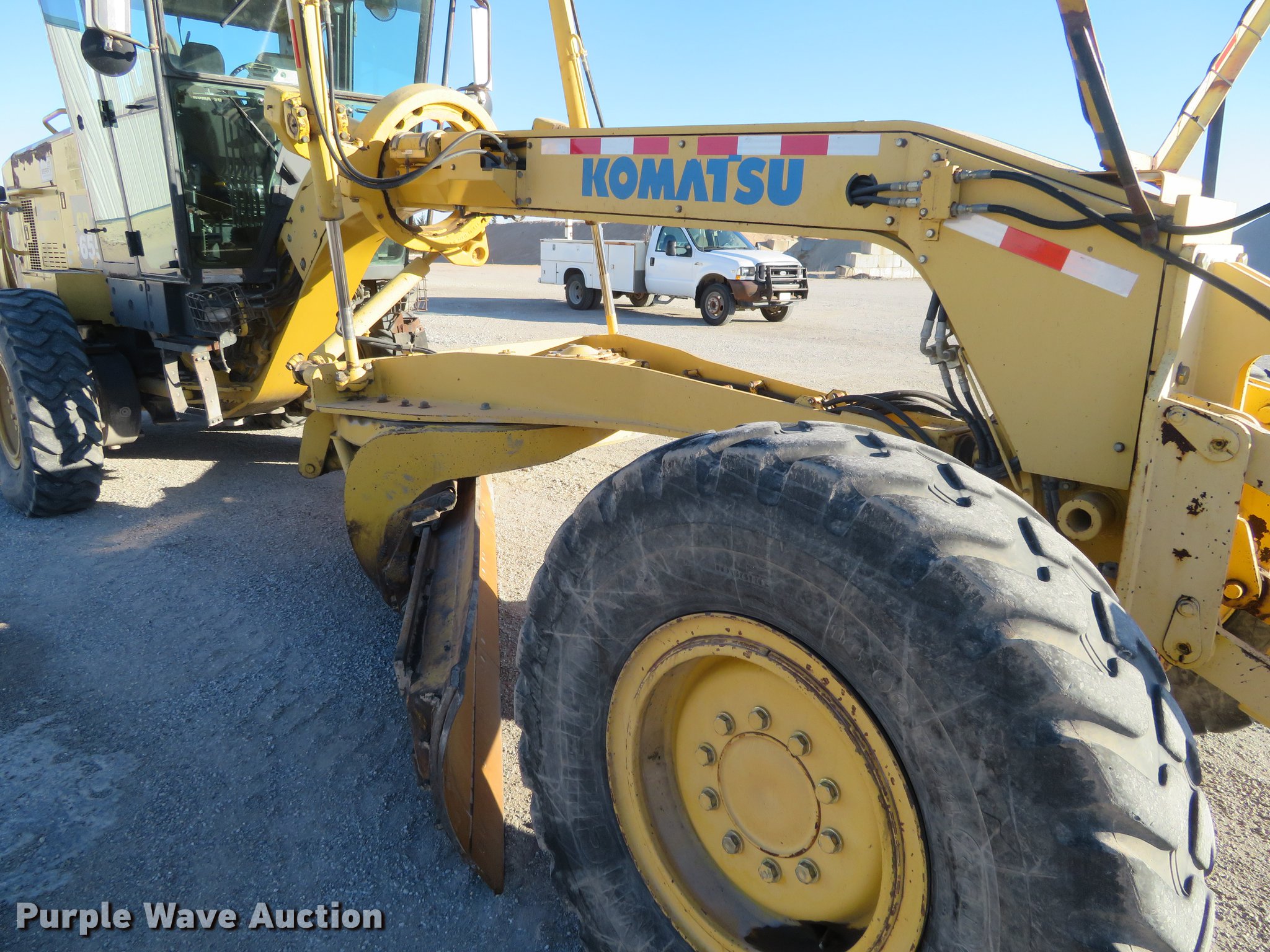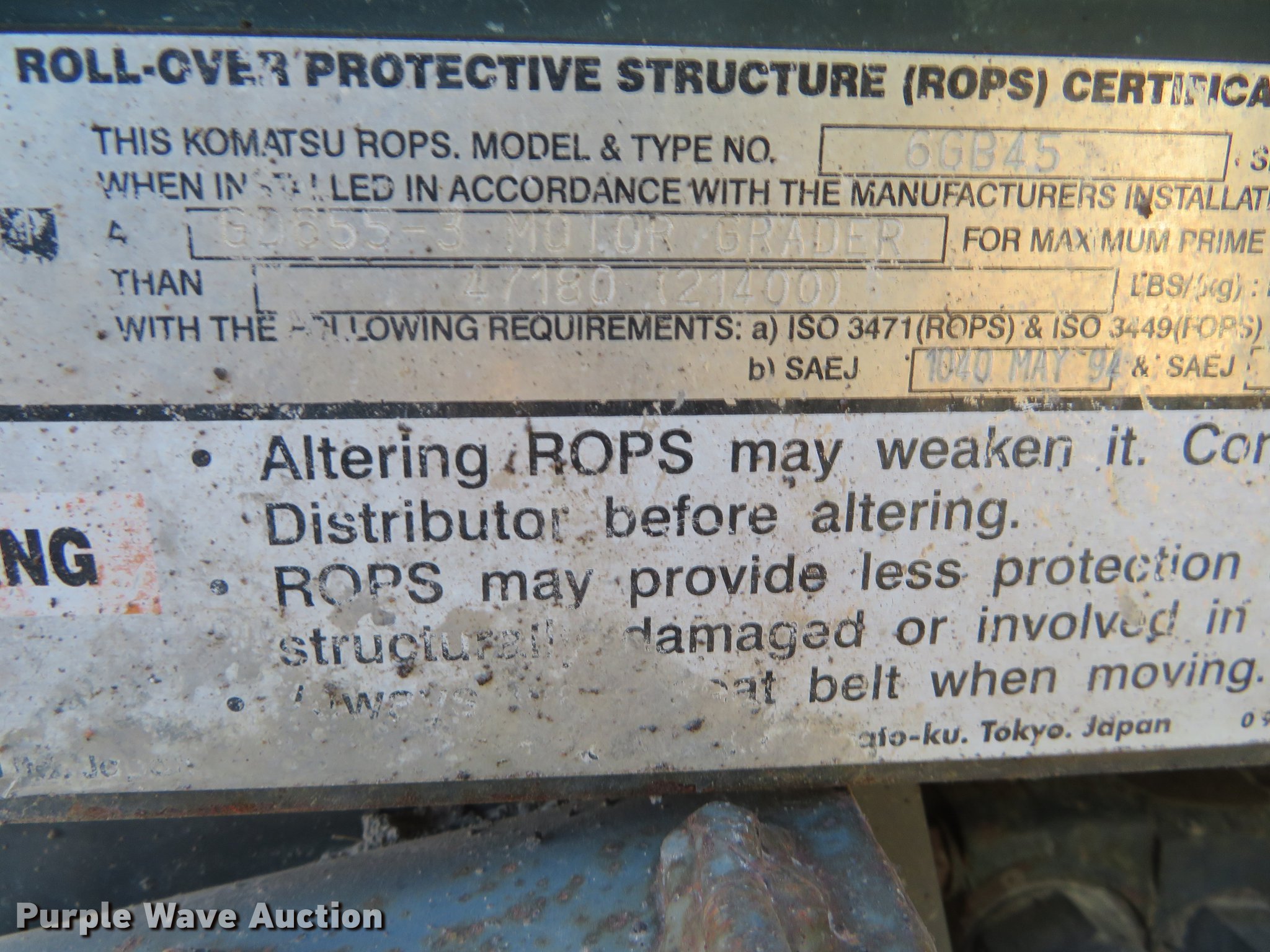 Purple Wave is selling a used Motor Grader in Kansas. This item is a 2006 Komatsu GD655-3C motor grader with the following: 5,707 hours on meter, Komatsu six cylinder diesel engine, Powershift transmission, 8F-4R gears, EROPS, AC and heat, AM/FM, Suspension seat, Nine control valves, Front and rear work lights, 16'W moldboard, Left blade extension, Tip control, Side shift, Henke front mounted lift group, Rear ripper, (4) teeth, 14.00R24 tires, Serial KM1GD015E51B20049