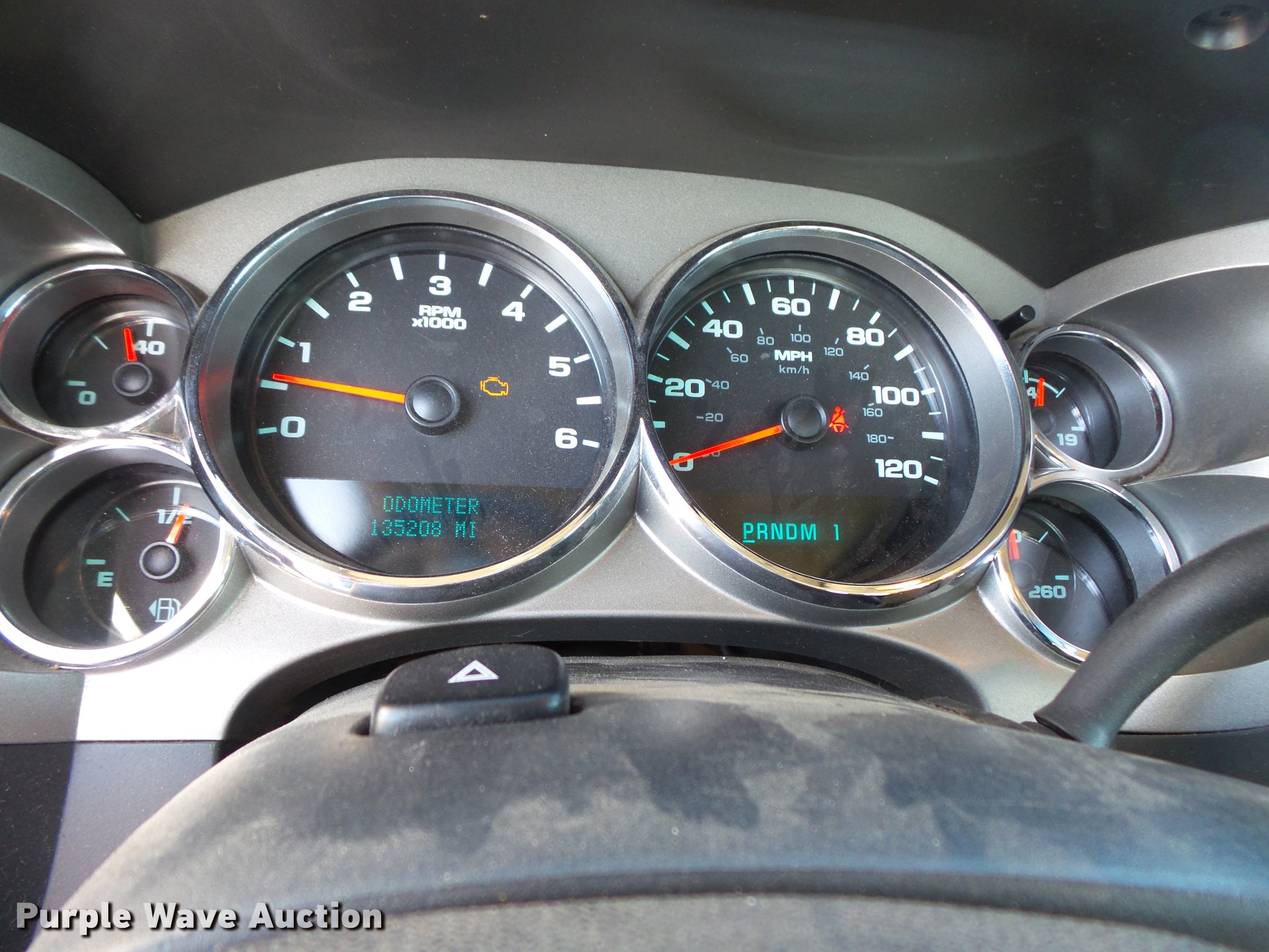Purple Wave is selling a used 3/4 or 1 Ton Pickup or Van in Illinois. This item is a 2012 Chevrolet Silverado 2500HD Crew Cab pickup truck with the following: 135,208 miles on odometer, 6.0L V8 OHV 16V FFV gas engine, Automatic transmission, Four wheel drive, AC and heat, Tilt, Cruise, AM/FM/CD, Power windows, locks, and mirrors, Cloth interior, Trailer brake controller, Auxiliary fuel tank, Electric pump, Hose, Nozzle, Front tow hooks, Gooseneck hitch, Receiver hitch, Trailer wiring, 285/65R18 tires