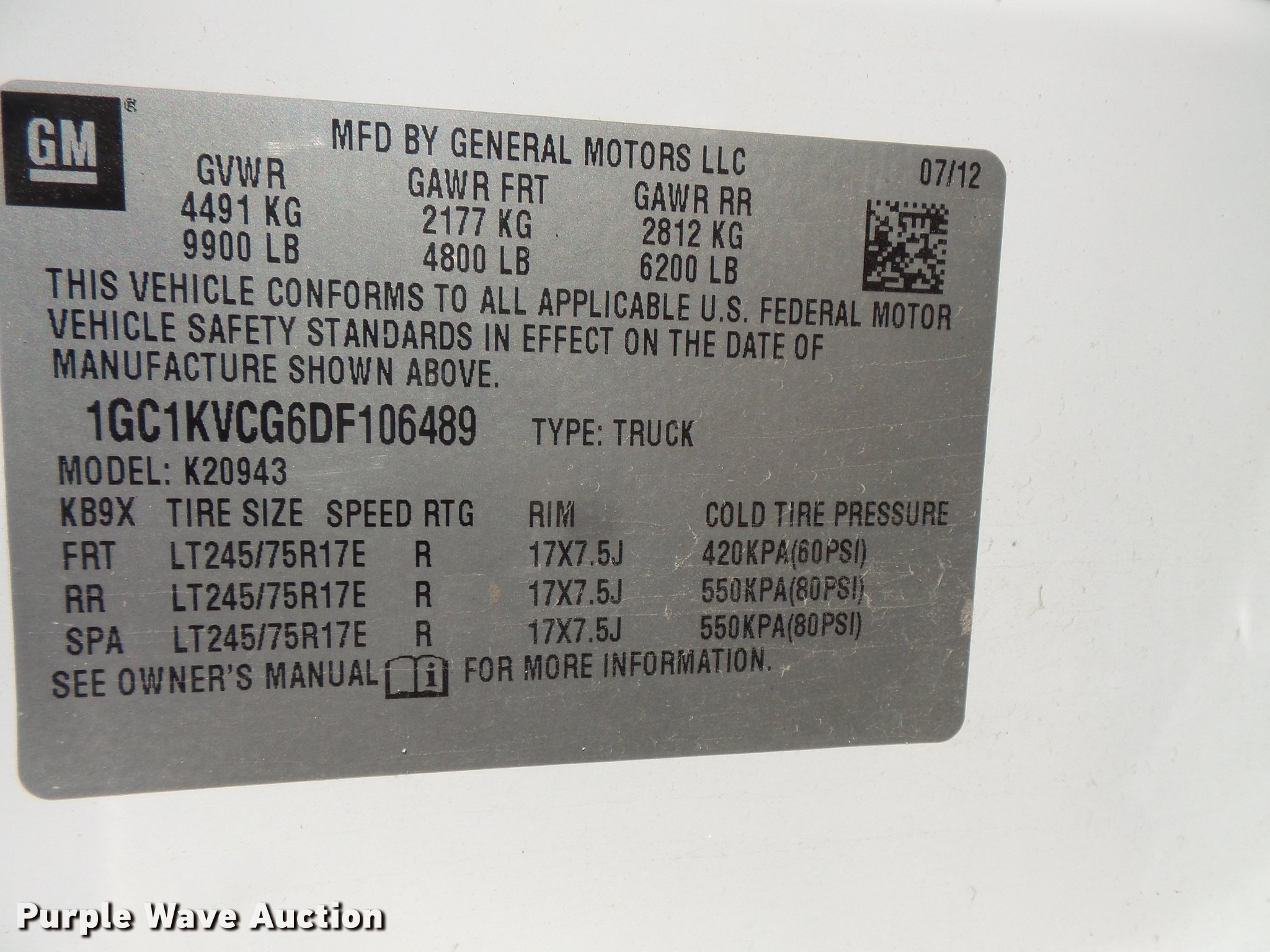 Purple Wave is selling a used 3/4 or 1 Ton Pickup or Van in Illinois. This item is a 2013 Chevrolet Silverado 2500HD Crew Cab pickup truck with the following: 129,006 miles on odometer, 6.0L V8 OHV 16V FFV gas engine, Automatic transmission, Four wheel drive, AC and heat, Tilt, Cruise, Power windows, locks, and mirrors, Cloth interior, Auxiliary fuel tank, Pump, Hose, Nozzle, Toolbox, Front tow hook, Receiver hitch, 245/75R17 tires