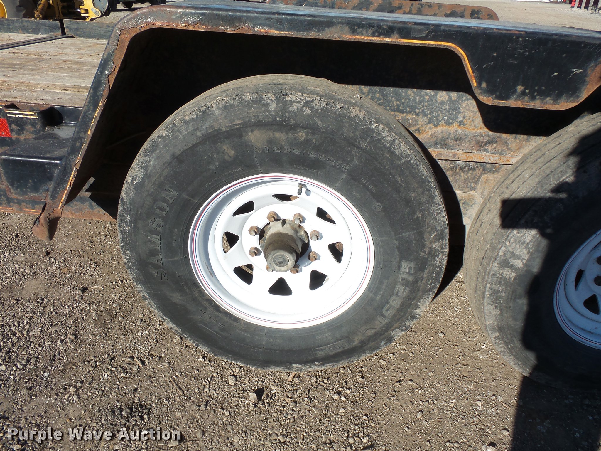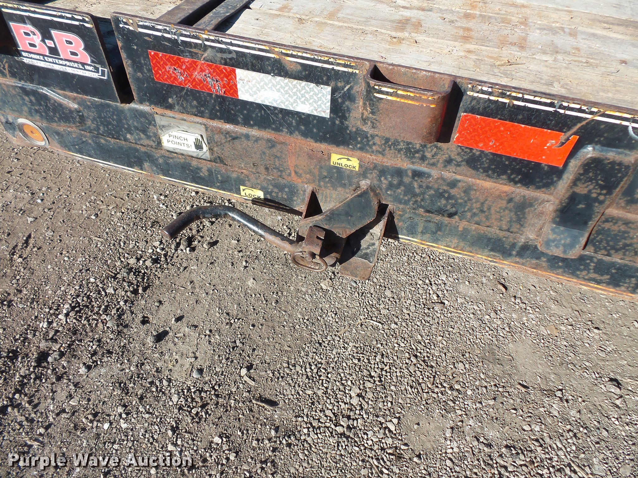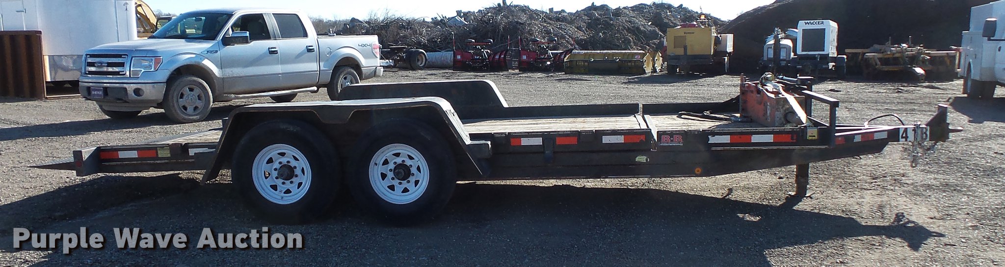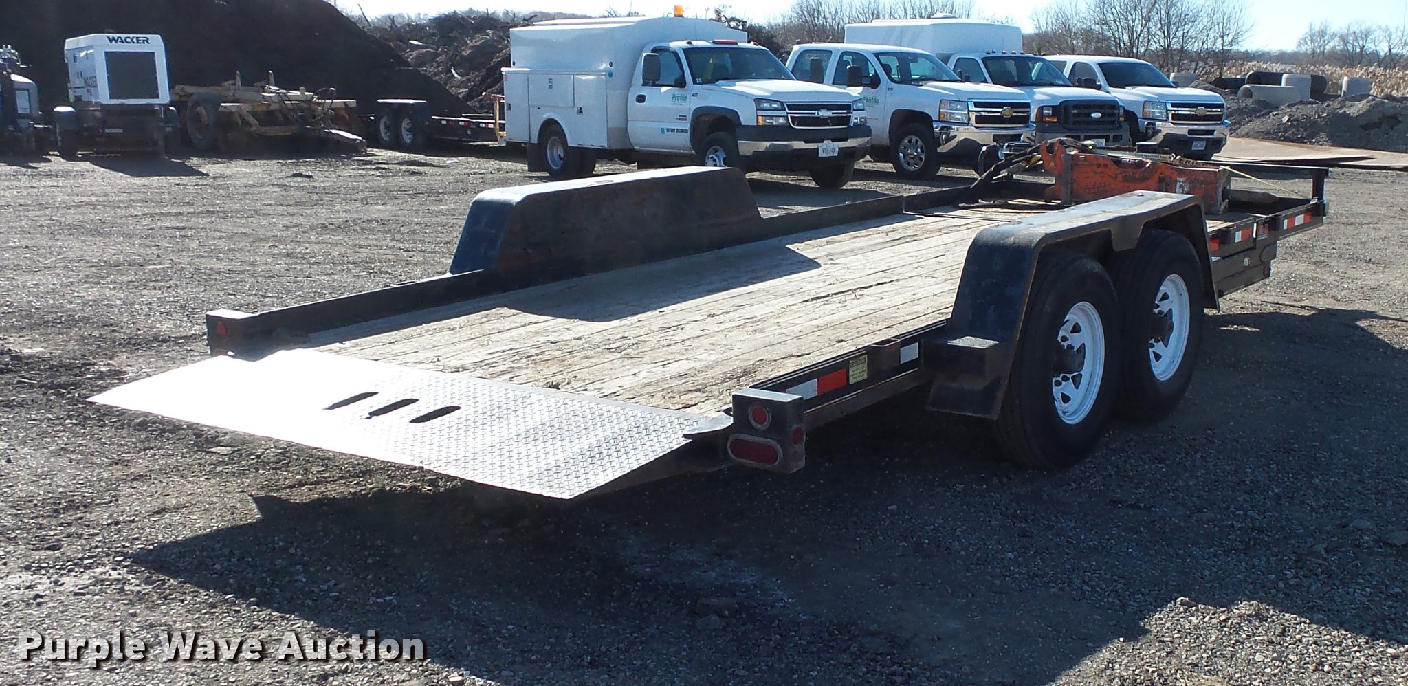 Purple Wave is selling a used Equip. Trailer in Illinois. This item is a 2011 Behnke tilt deck equipment trailer with the following: 24' overall length, 18'L x 106"W wood deck, 2'L dovetail, 23" floor height, Stake side pockets, D-ring tie downs, Single leg landing gear, Pintle hitch, Tandem axle, Spring suspension, Electric brakes, Steel wheels, 235/85R16 tires, Breaker not included, Unit# 418