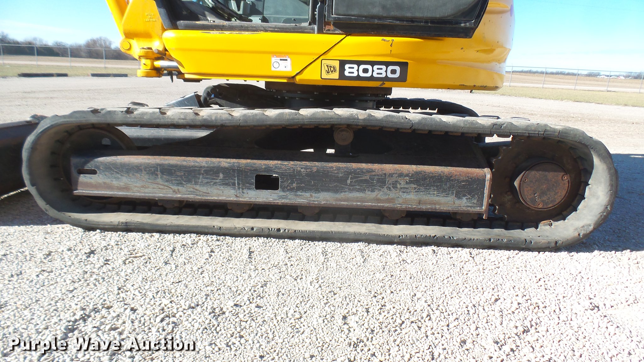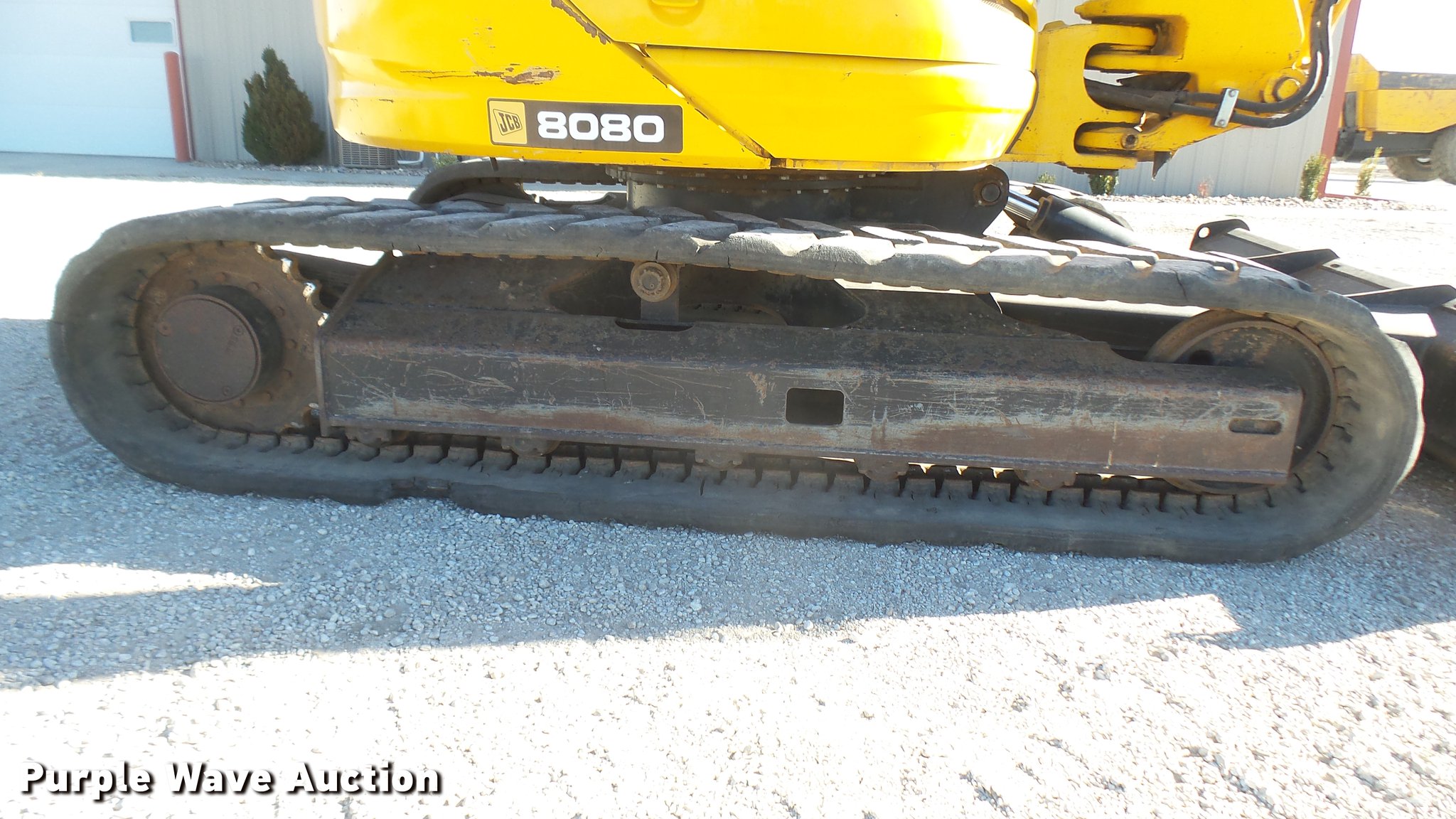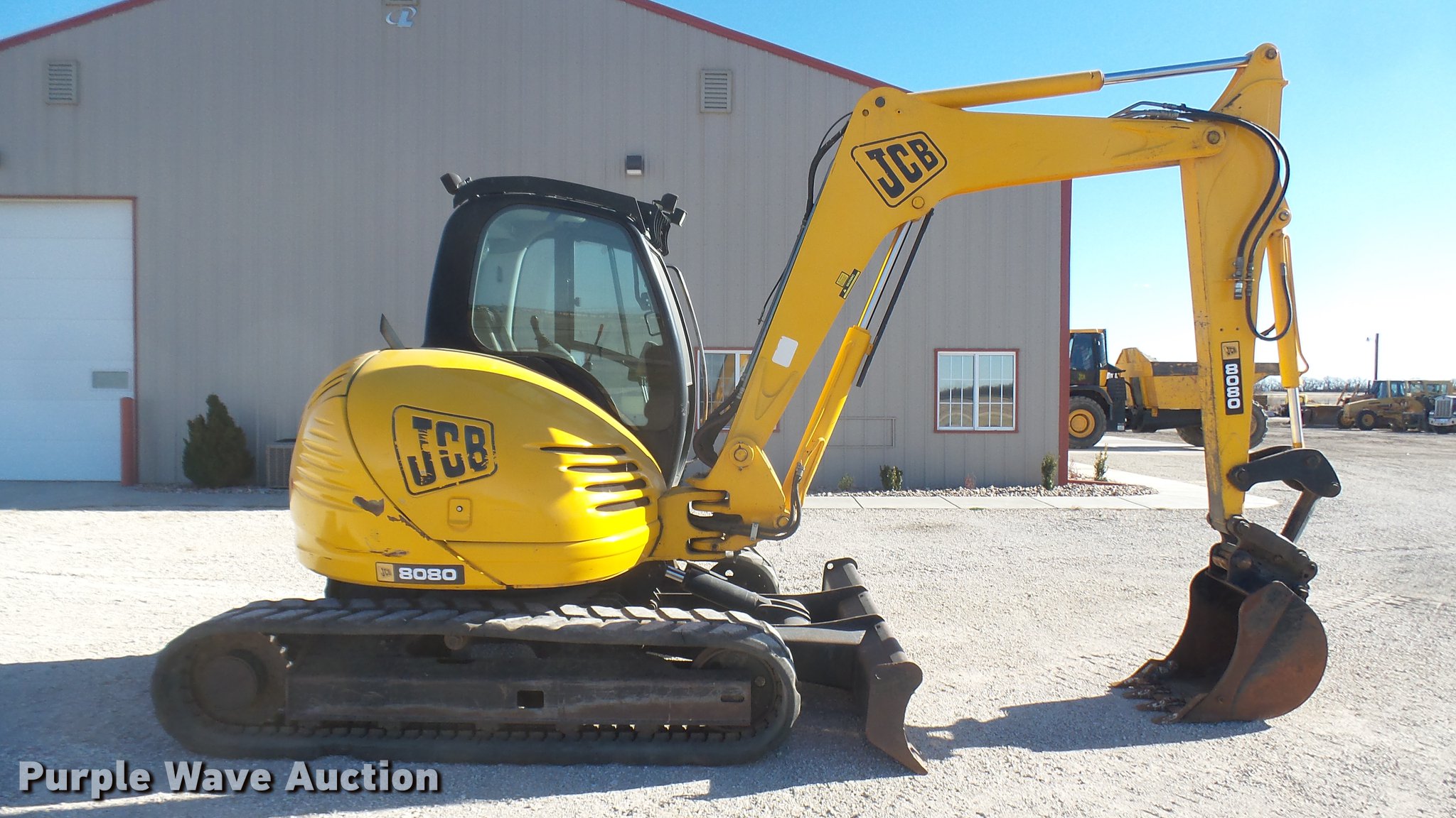 Purple Wave is selling a used Mini Excavator in Kansas. This item is a 2006 JCB 8080 excavator with the following: 6,734 hours on meter, Four cylinder diesel engine, 41 kW, Two speed hydrostatic transmission, EROPS, AC and heat, Suspension seat, Front and rear work lights, Standard boom, 6.5 stick length, 22"W bucket, (4) bolt-on teeth, Two way auxiliary hydraulics, 91"W backfill blade, 17"W rubber tracks, Serial SLP080806E1025106