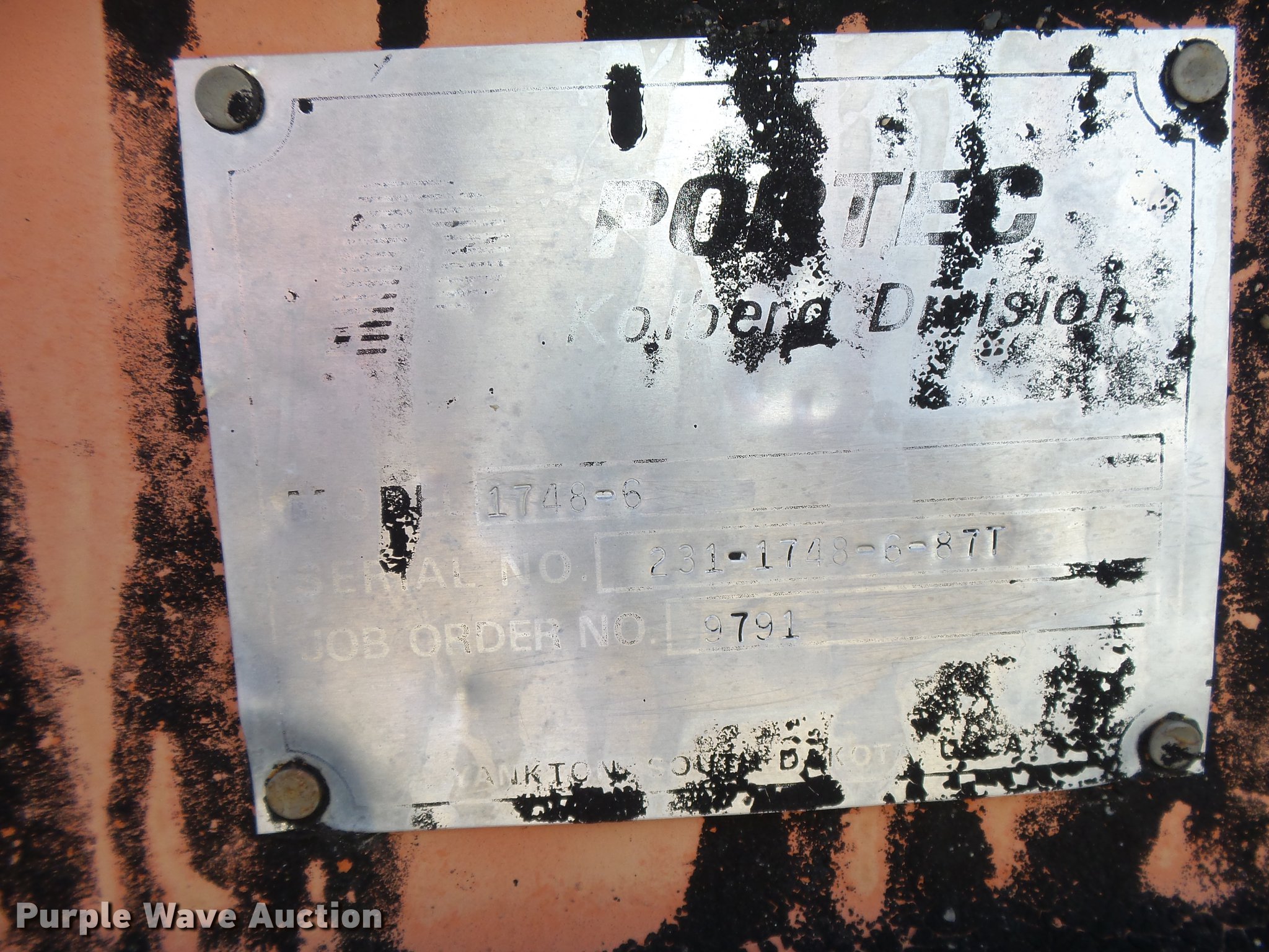 Purple Wave is selling a used Asphalt Plant in Kansas. This item is a Kolberg Protec 1730-33 asphalt plant with the following: 444 hours on meter, 2,834 hours on Neptune meter, Detroit Diesel 453 four cylinder diesel engine, Model 1043700, 54' overall length, Double hopper, 9791 conveyor, Model 1230-33, Serial 6235-1230-33-87, 29"W triple roller belt, Feeder model 924-8B, 24"W belt, (10) rollers, Serial 978-924-85B, Model 130-B feeder, 29"W belt, (10) rollers, Serial 2061-130-8-87, Pug box model 1748-6, Serial 231-1748-6-8TT, Detroit PTA114144 power takeoff, Serial 617985, Viking Q32 pump, Serial 0840758, 10.00-20 tires, Serial 23017303387