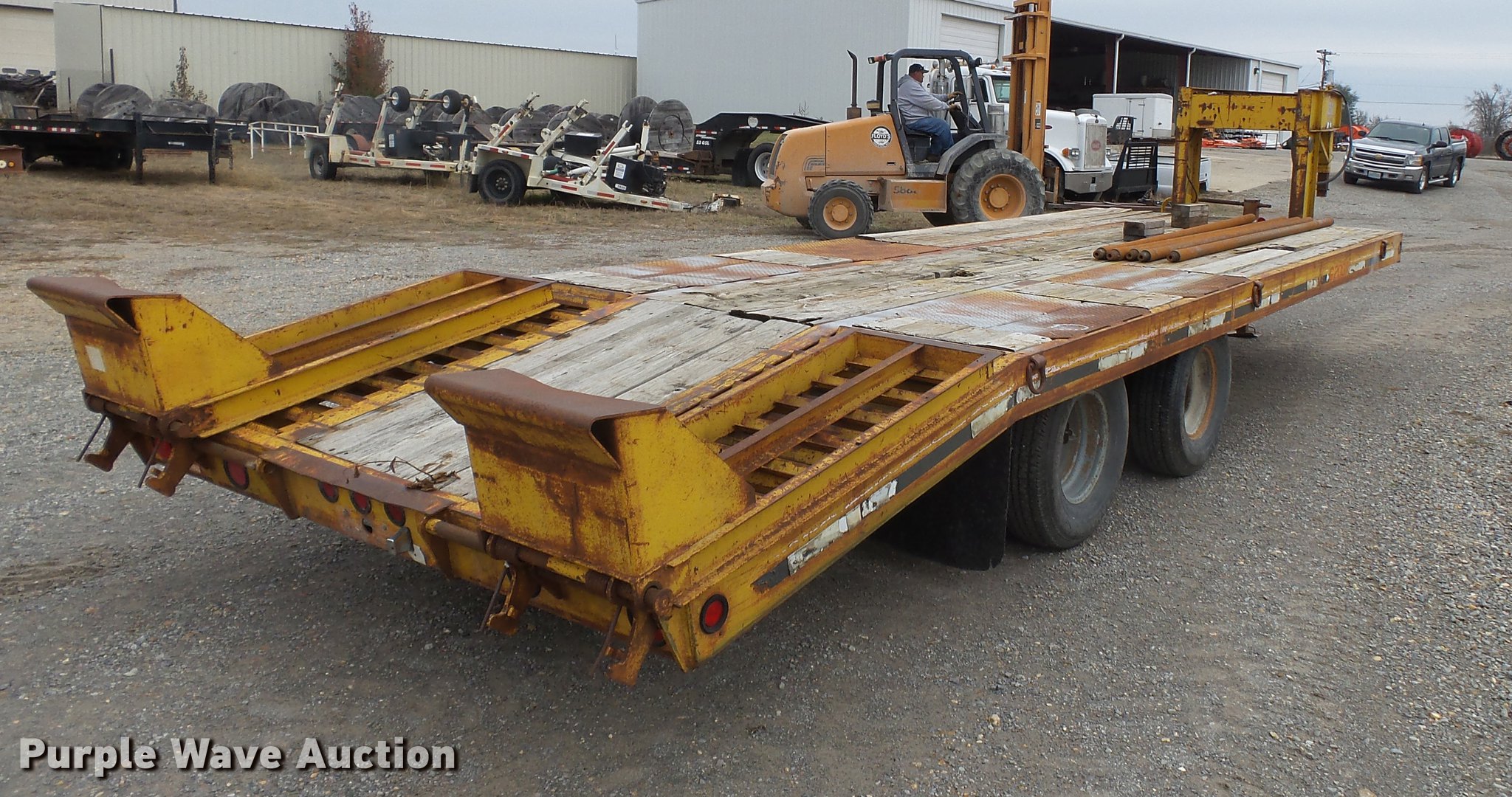 Purple Wave is selling a used Equip. Trailer in Missouri. This item is a 1995 Interstate G20DT equipment trailer with the following: 19'L x 95"W wood deck, 5'L dovetail, 4'10"L ramps, 35" floor height, Single leg landing gear, 2 5/16" gooseneck hitch, Tandem axle, Spring suspension, Electric brakes, Steel wheels, 235/85R16 tires, GVWR 25,900 lbs, Drill stem not included, Unit# T51
