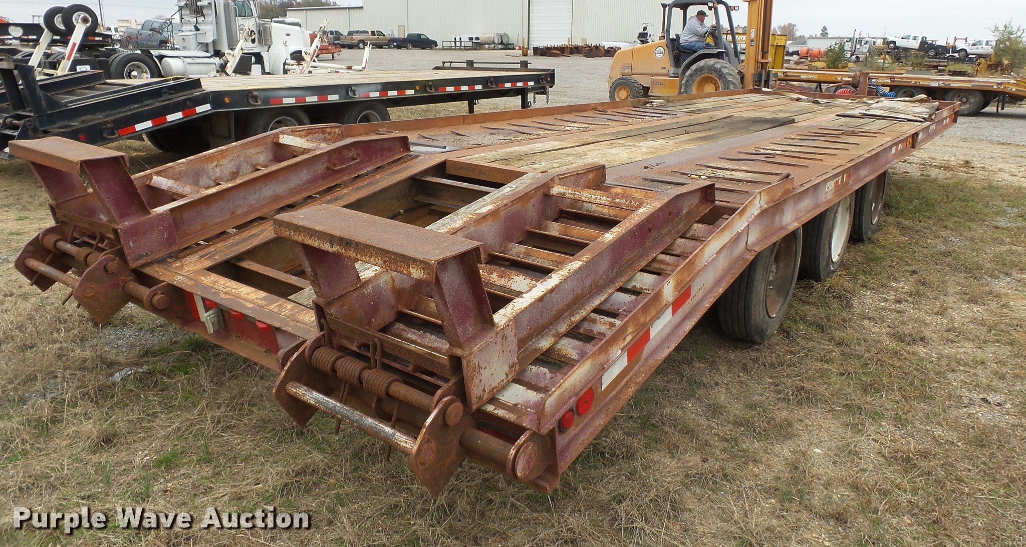 Purple Wave is selling a used Equip. Trailer in Missouri. This item is a 2000 Dynaweld 50TR25 equipment trailer with the following: 34.5' overall length, 24'L x 102"W steel and wood deck, 35" floor height, 5'L dovetail, 5'L ramps, D-ring tie downs, Recessed toolbox, Single leg landing gear, Pintle hitch, Triple axle, Spring suspension, Air brakes, Steel wheels, 215/75R17.5 tires