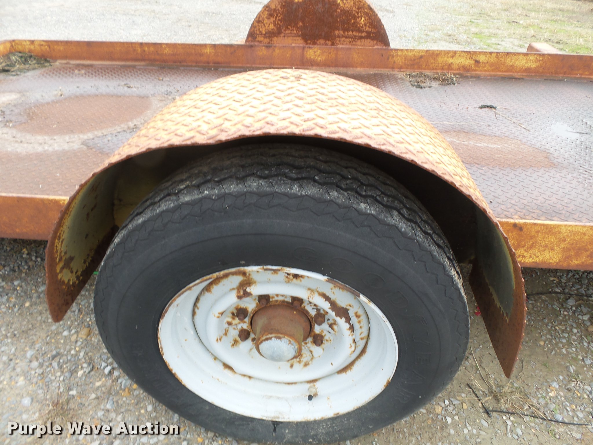 Purple Wave is selling a used Car or Utility Trailer in Missouri. This item is a 1992 Butler TS612D tilt deck trailer with the following: 17' overall length, 12'L x 66"W deck, 14" floor height, Pintle hitch, Spring suspension, Electric brakes, Steel wheels, 8.75-16.5 tires, GVWR 5,500 lbs, Unit# T402