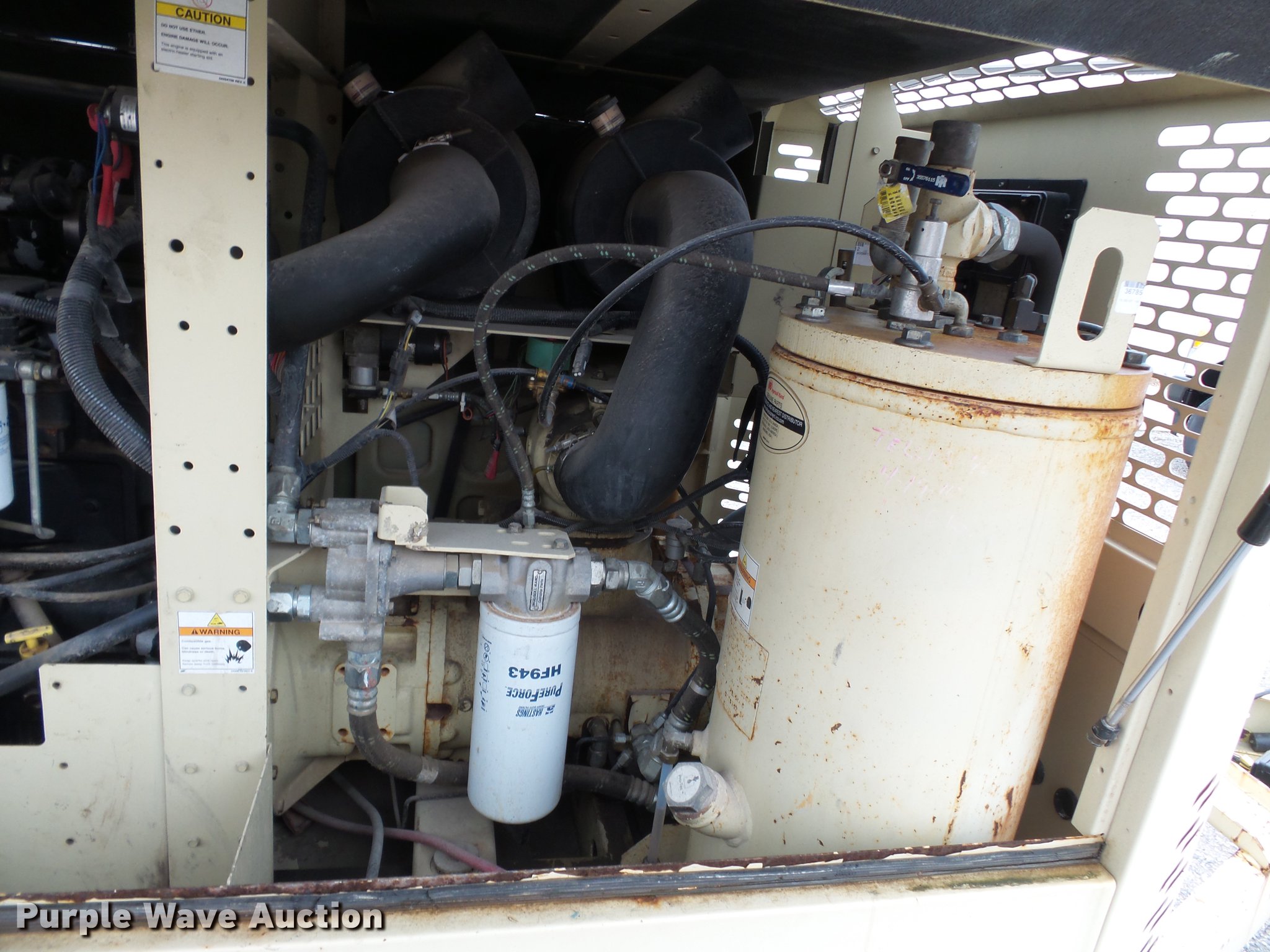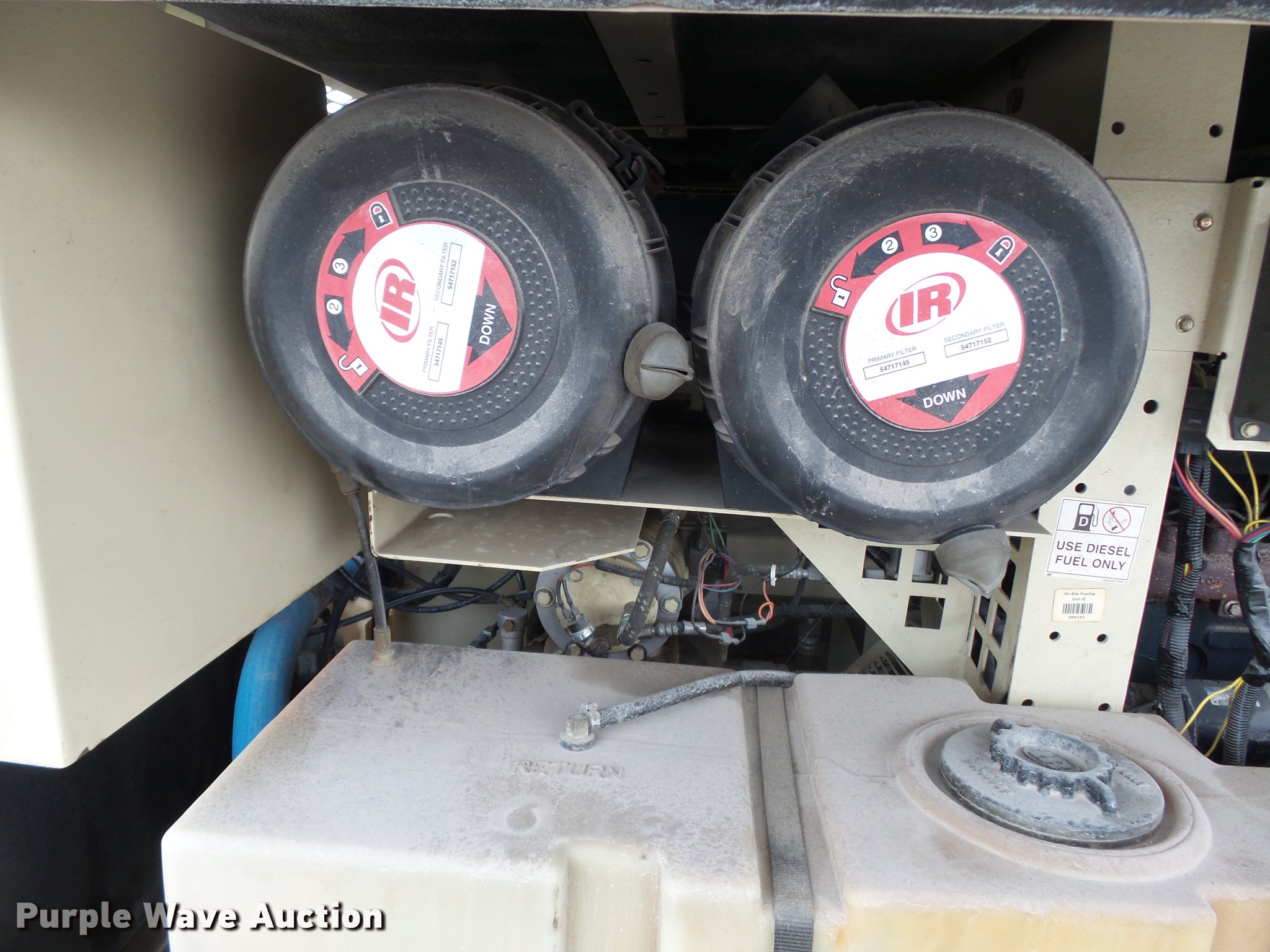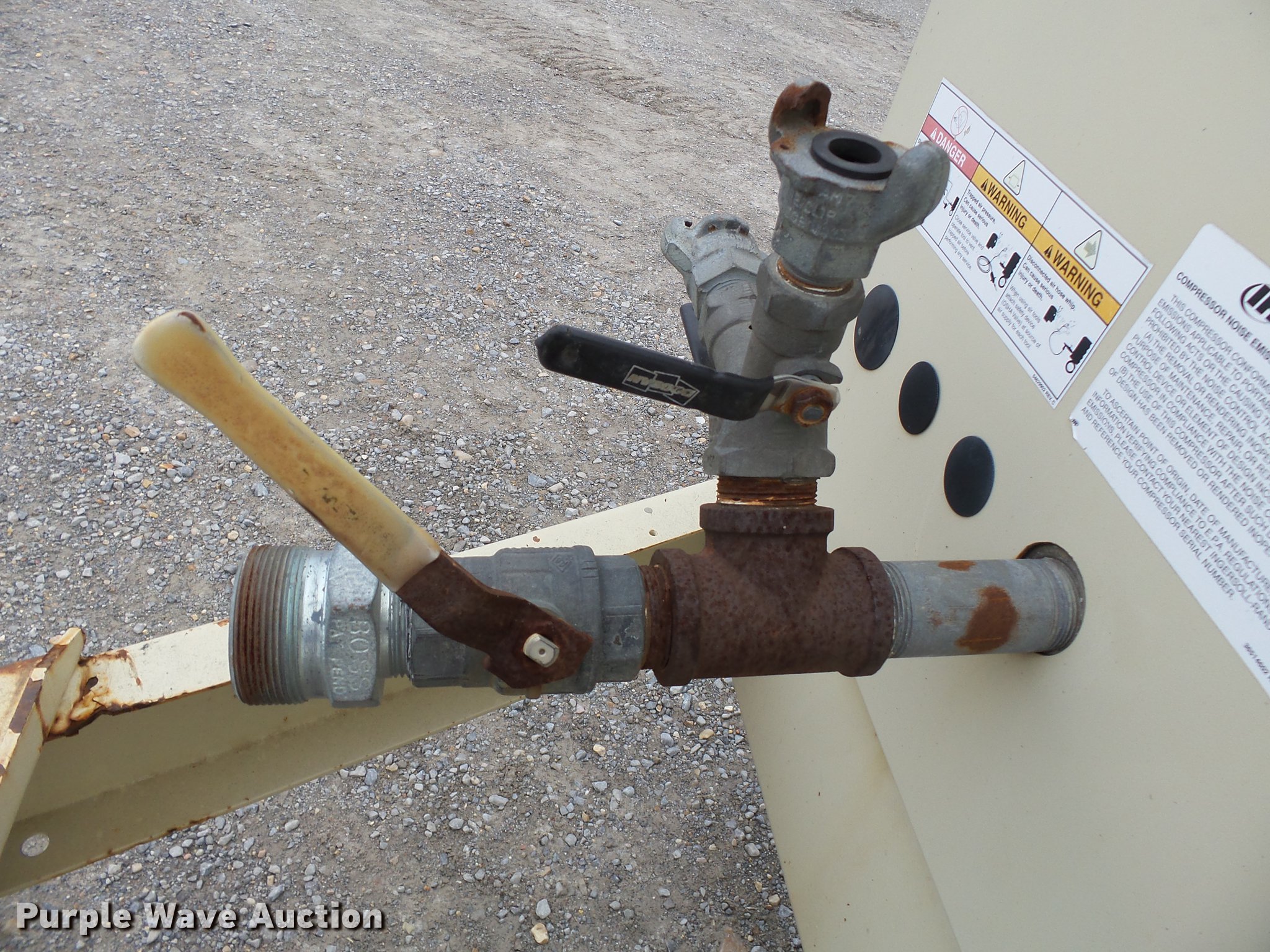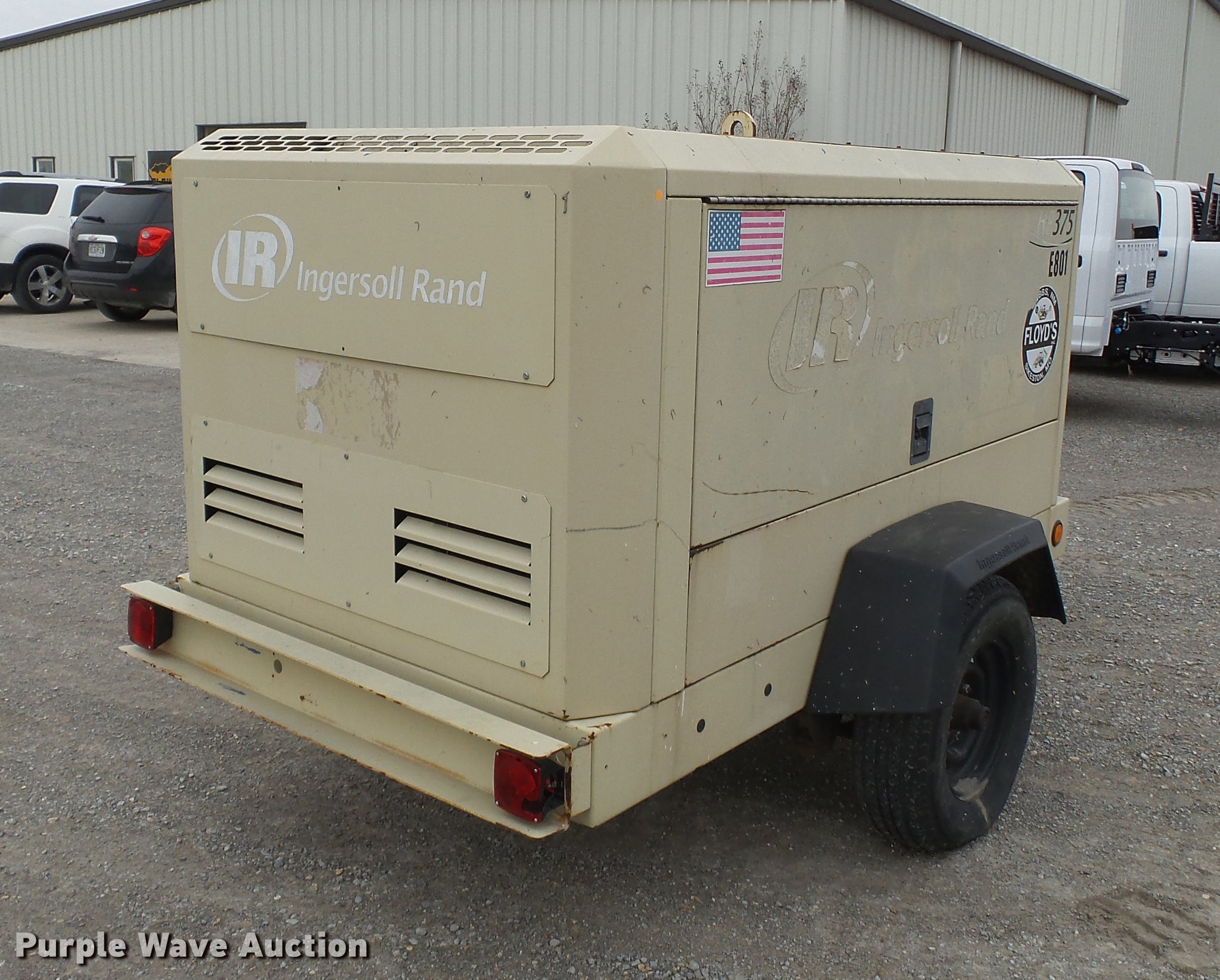 Purple Wave is selling a used Air Compressor in Missouri. This item is a 2008 Ingersoll Rand HP575 air compressor with the following: 41 hours on meter, 1,979 hours on replaced hour meter, Cummins B3.9 3.9L four cylinder turbo diesel engine, Serial 30238916, 375 CFM, 150 psi, Pinlte hitch, 235/75R15 tires, Battery dead, Serial 4FVCCBBA38U395921, Unit# E801