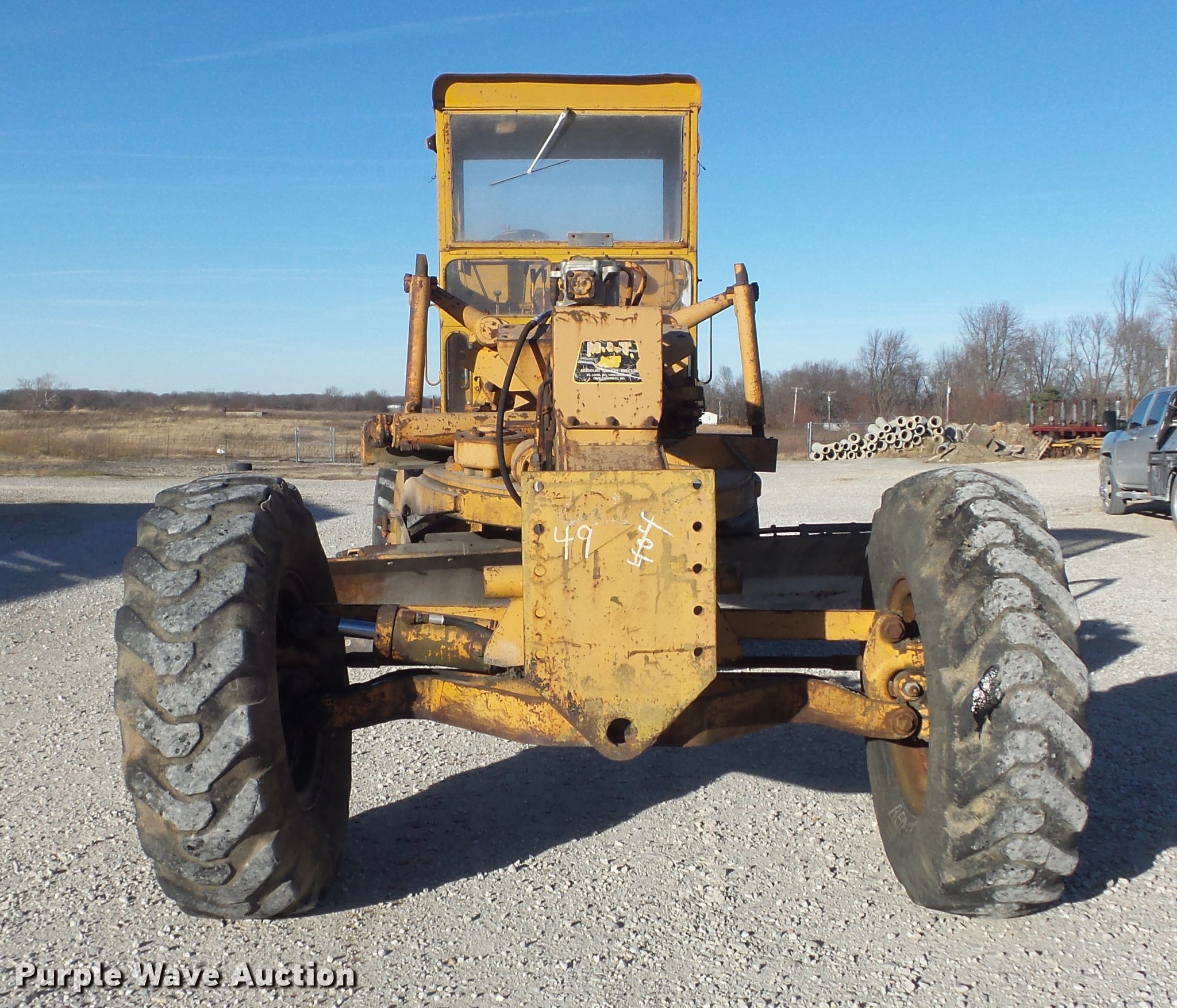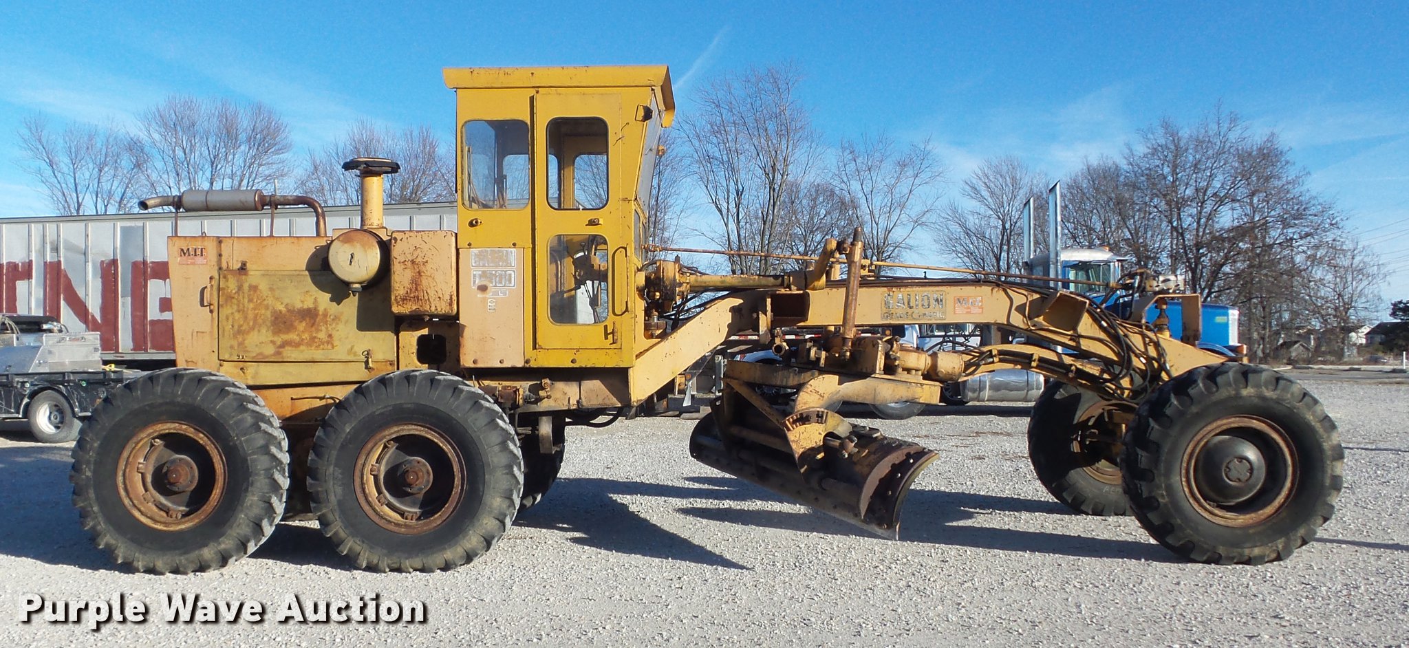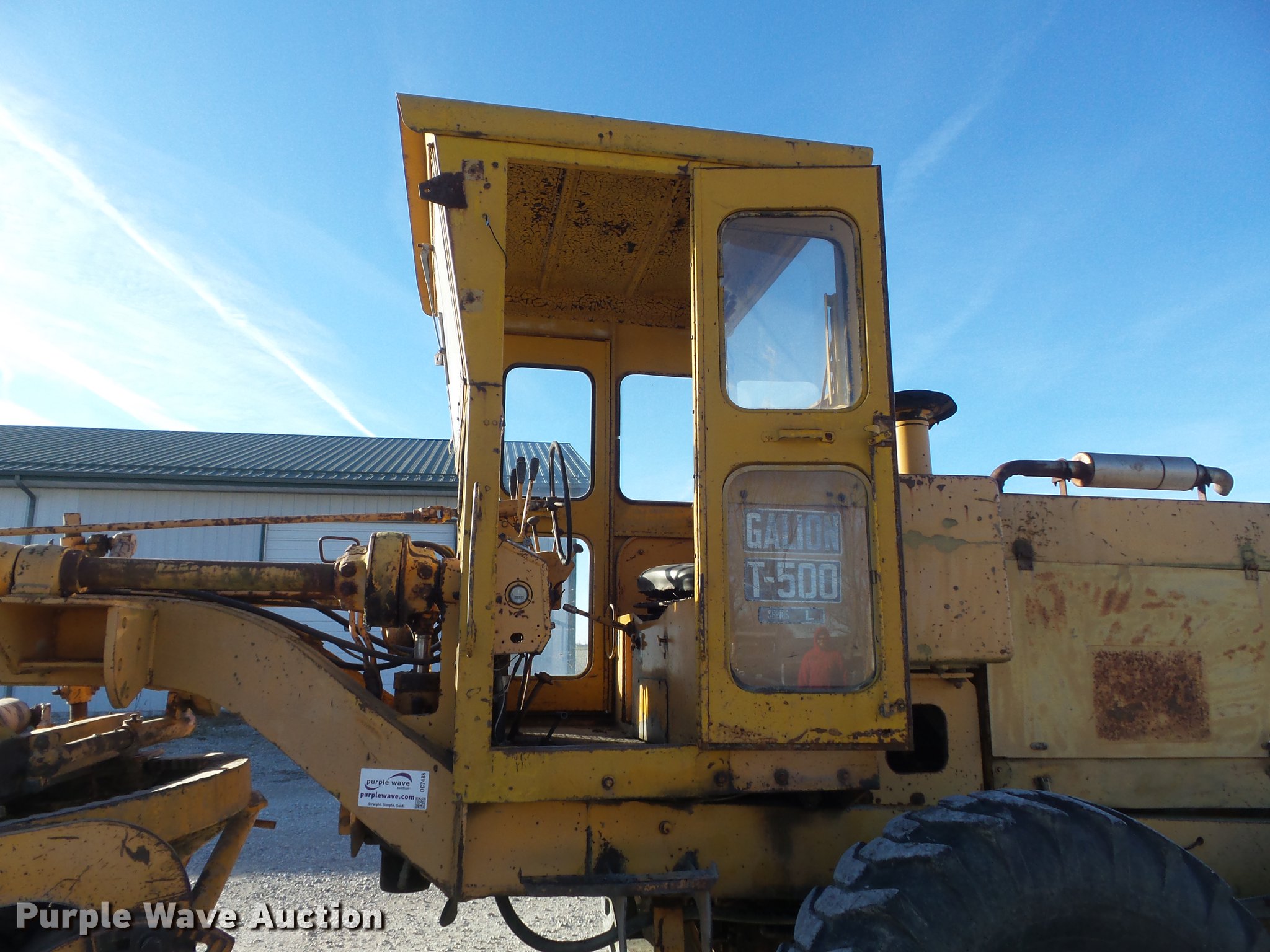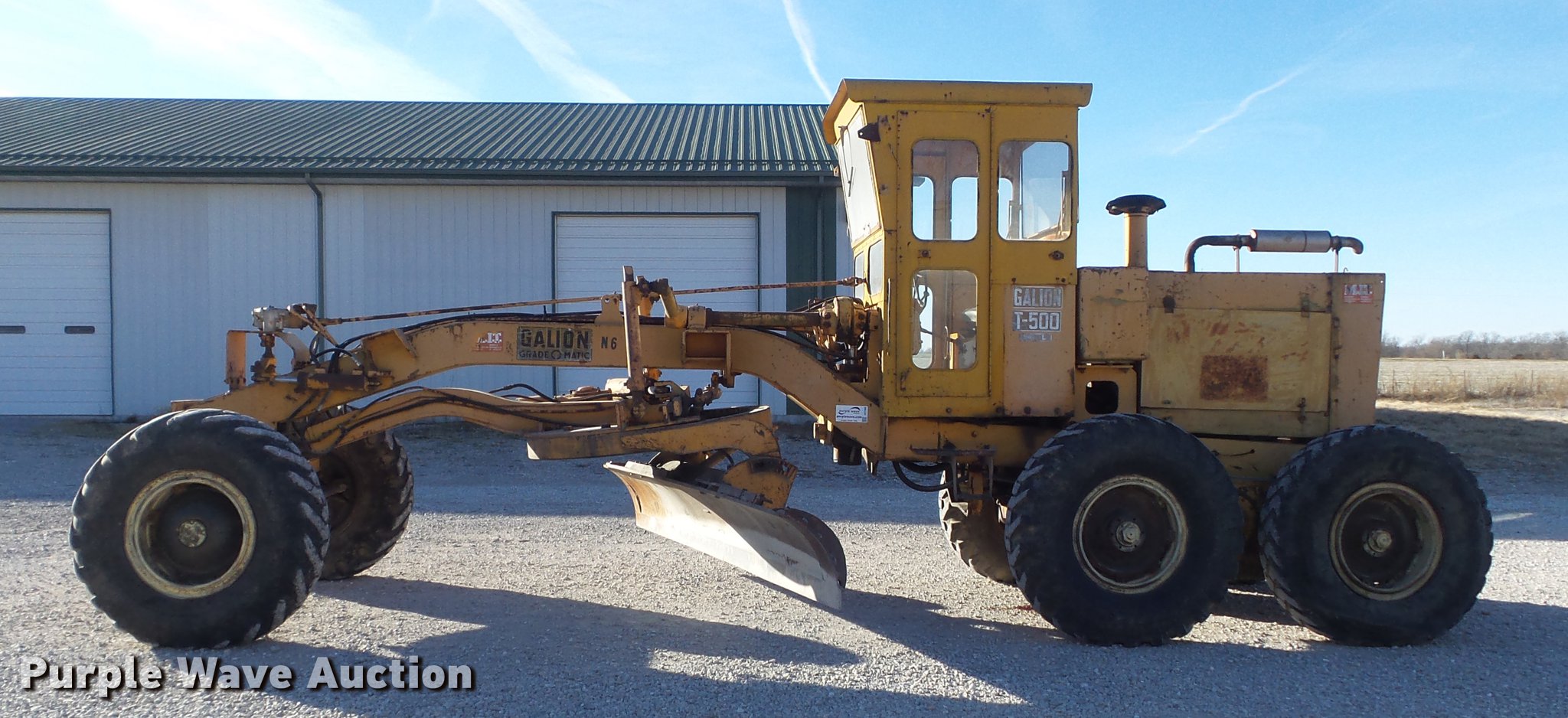 Purple Wave is selling a used Motor Grader in Missouri. This item is a 1975 Galion T500L rigid frame motor grader with the following: 9,312 hours on meter, Detroit Diesel 10437000 four cylinder diesel engine, Serial 4A0273572, Powershift transmission, Enclosed cab, Heat, Six control valves, 13'W moldboard, Side shift, 14.00R24 tires, Seal leaks on transmission driveshaft, Front axle lean cylinder leaks, Serial GC-06899