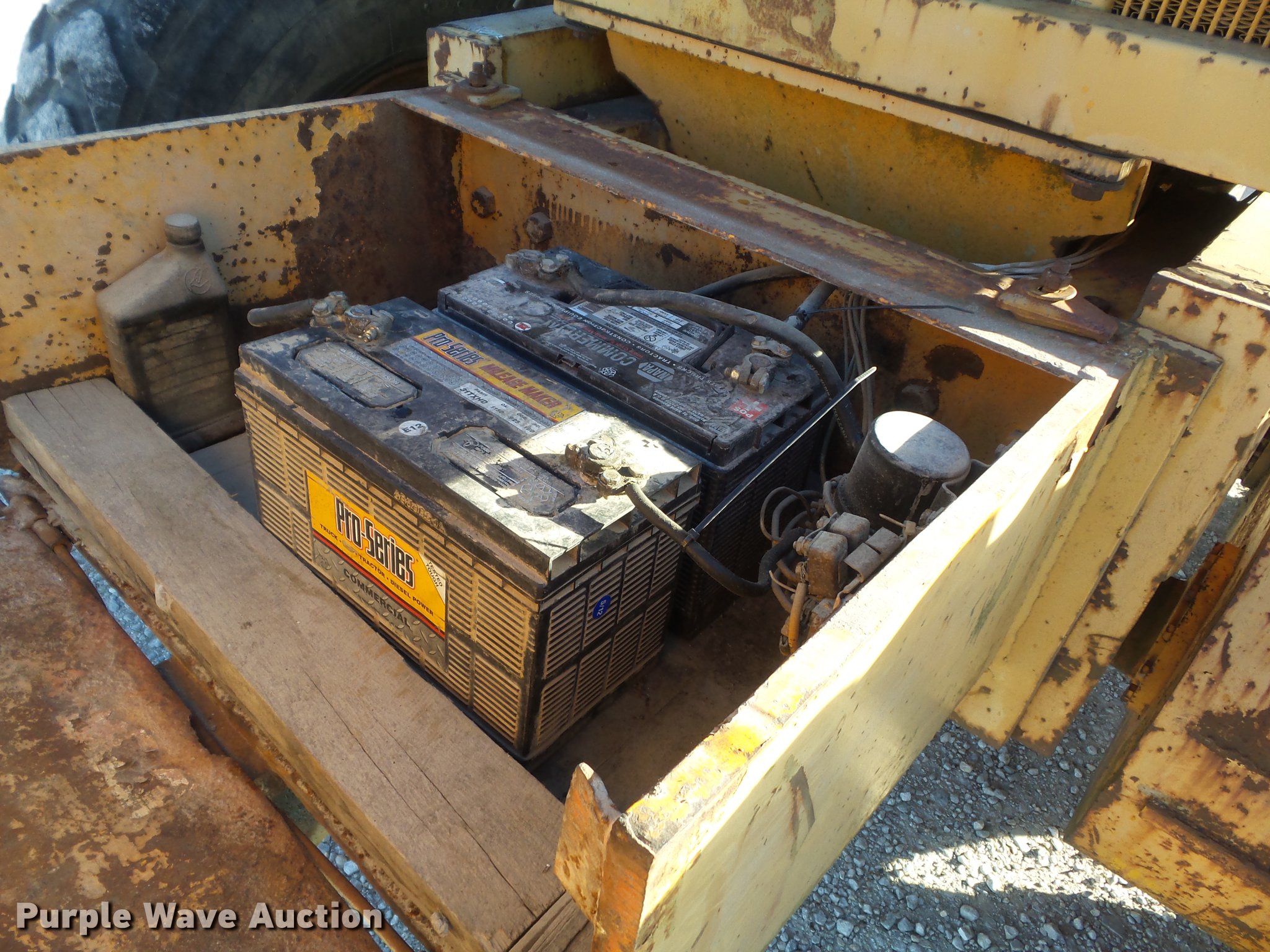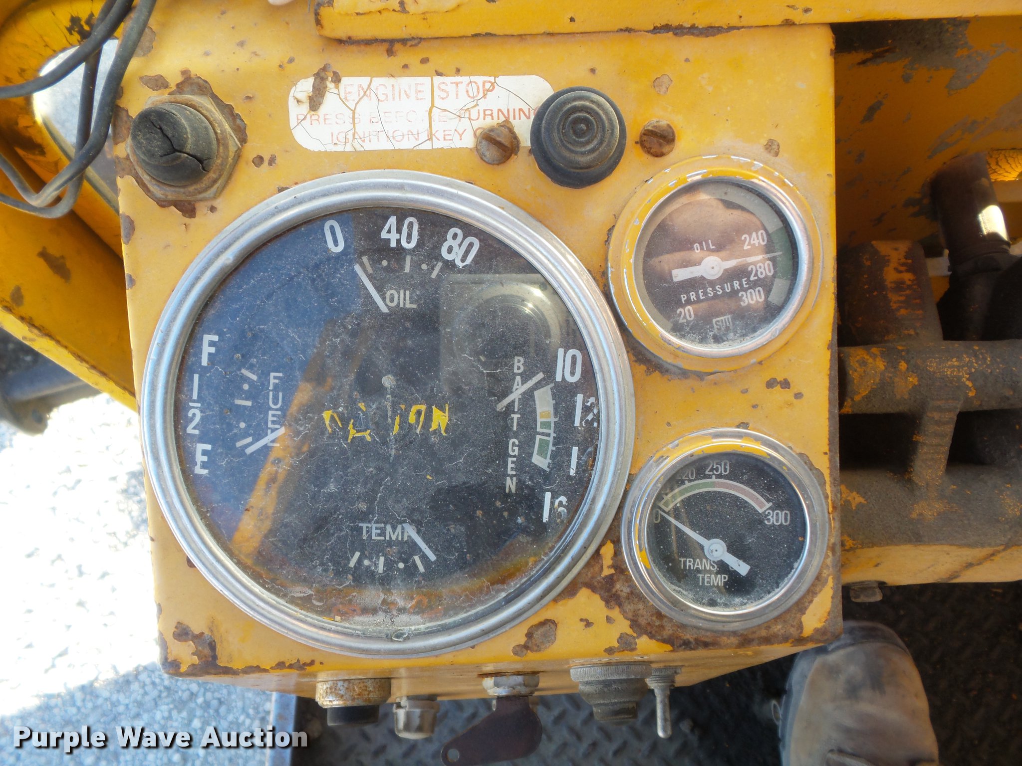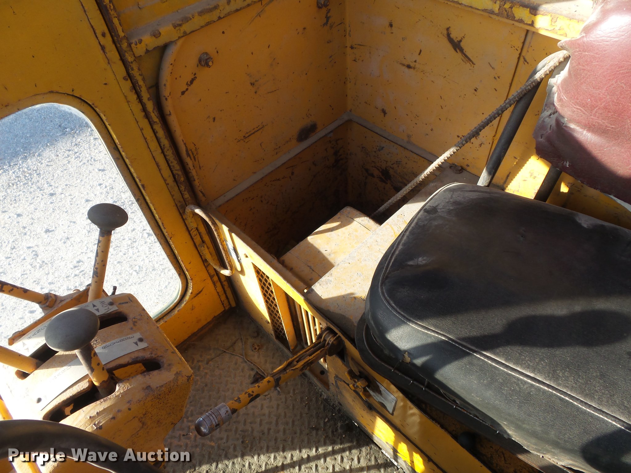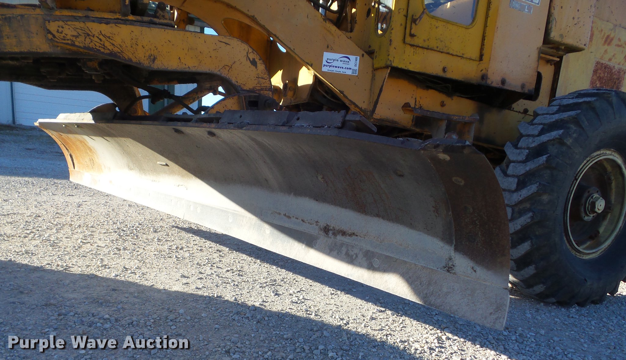 Purple Wave is selling a used Motor Grader in Missouri. This item is a 1975 Galion T500L rigid frame motor grader with the following: 9,312 hours on meter, Detroit Diesel 10437000 four cylinder diesel engine, Serial 4A0273572, Powershift transmission, Enclosed cab, Heat, Six control valves, 13'W moldboard, Side shift, 14.00R24 tires, Seal leaks on transmission driveshaft, Front axle lean cylinder leaks, Serial GC-06899