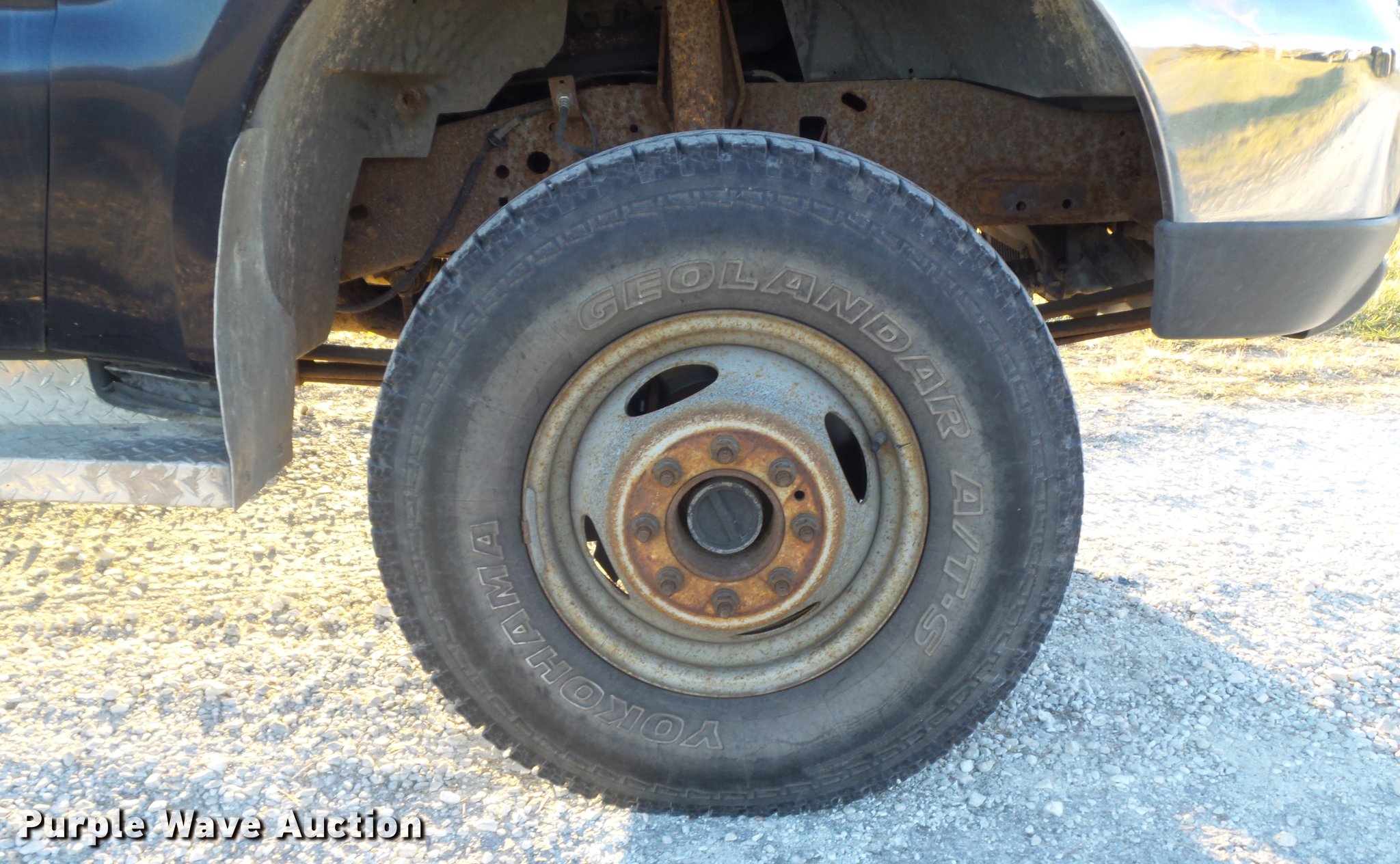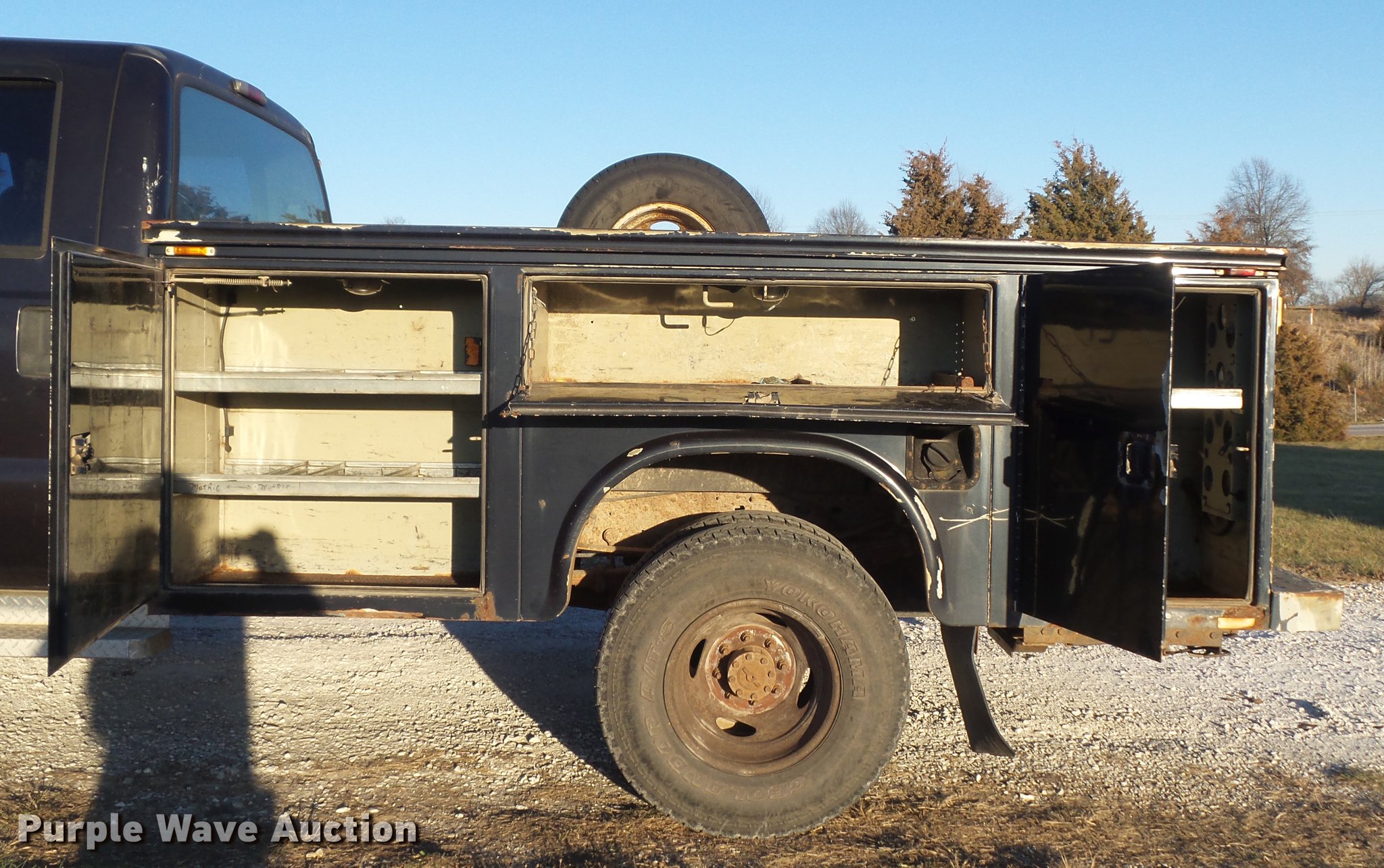 Purple Wave is selling a used 3/4 or 1 Ton Pickup or Van in Missouri. This item is a 1999 Ford F350 Super Duty XLT Crew Cab utility bed pickup truck with the following: 234,095 miles on odometer, 6.8L V10 SOHC 20V gas engine, Automatic transmission, Four wheel drive, AC and heat, AM/FM/cassette, Power windows and locks, Backup alarm, Knapheide 9'L utility bed, Shelving, Compartment lights, Single fuel tank, Receiver hitch, Trailer wiring, 176" wheelbase, Spring suspension, Hydraulic brakes, LT235/85R16 tires, Exhaust leak at manifold, Right rear door will not open