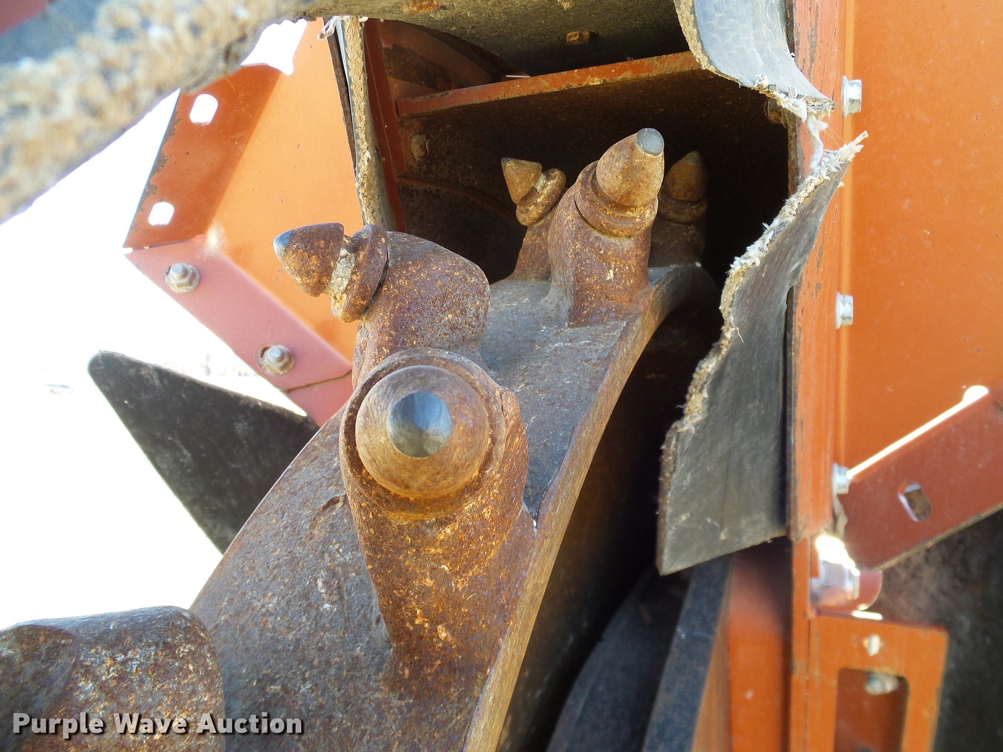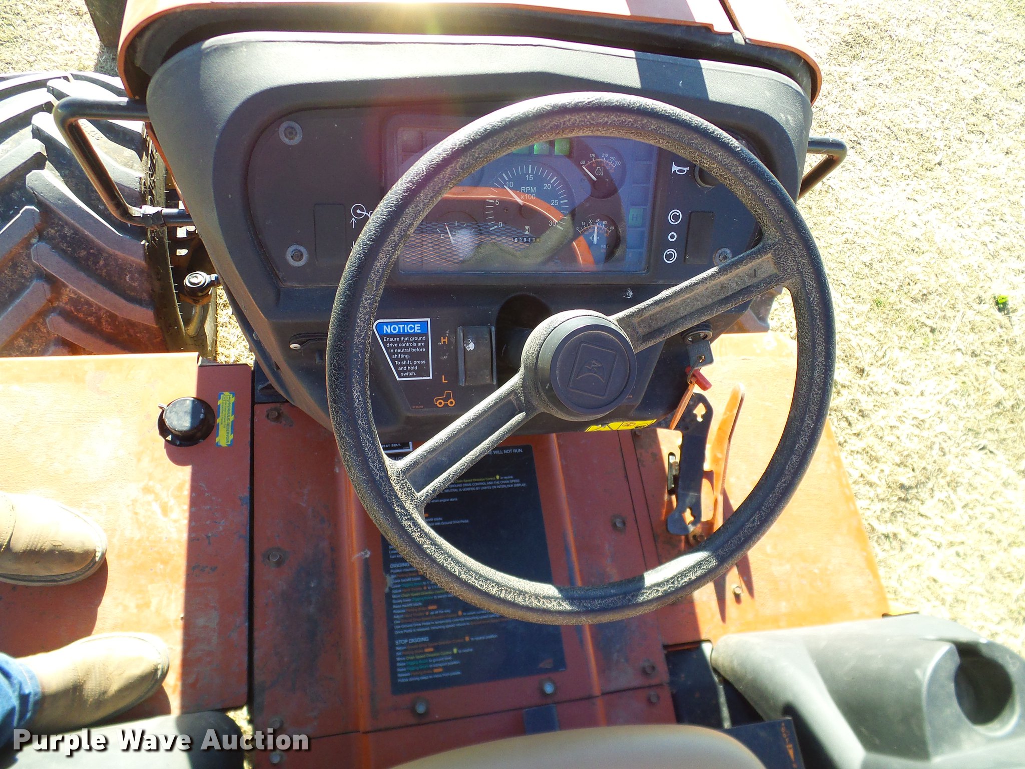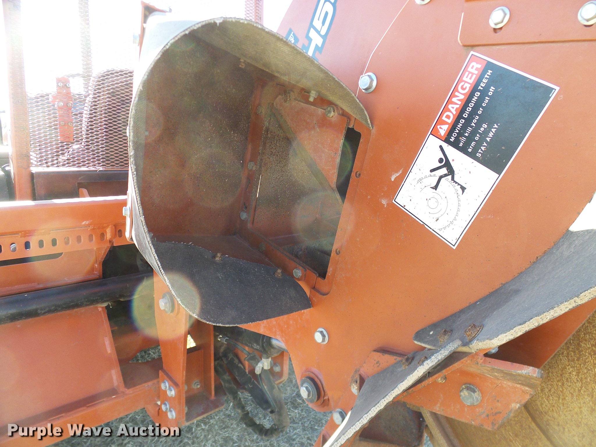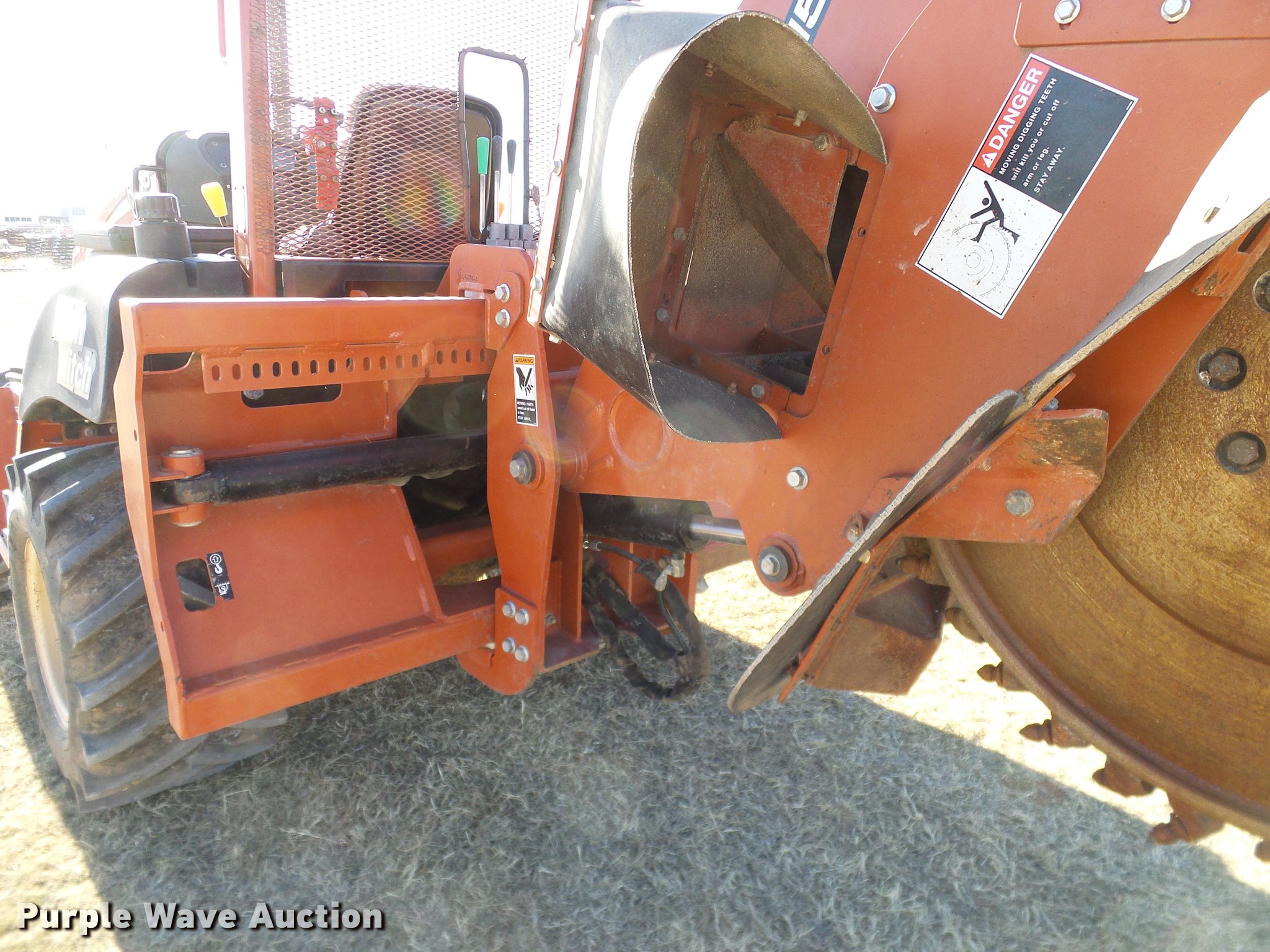 Purple Wave is selling a used Trencher or Rock Saw in Oklahoma. This item is a 2005 Ditch Witch RT55 rock saw with the following: 391 hours on meter, Four cylinder diesel engine, Hydrostatic transmission, OROPS, Suspension seat, H540 rock wheel, 46" diameter wheel, 4" cutting width, Hydraulic side shift, 72"W four way backfill blade, 31x15.5-15 tires, Approx. 24 spare teeth, Serial 5Z0282