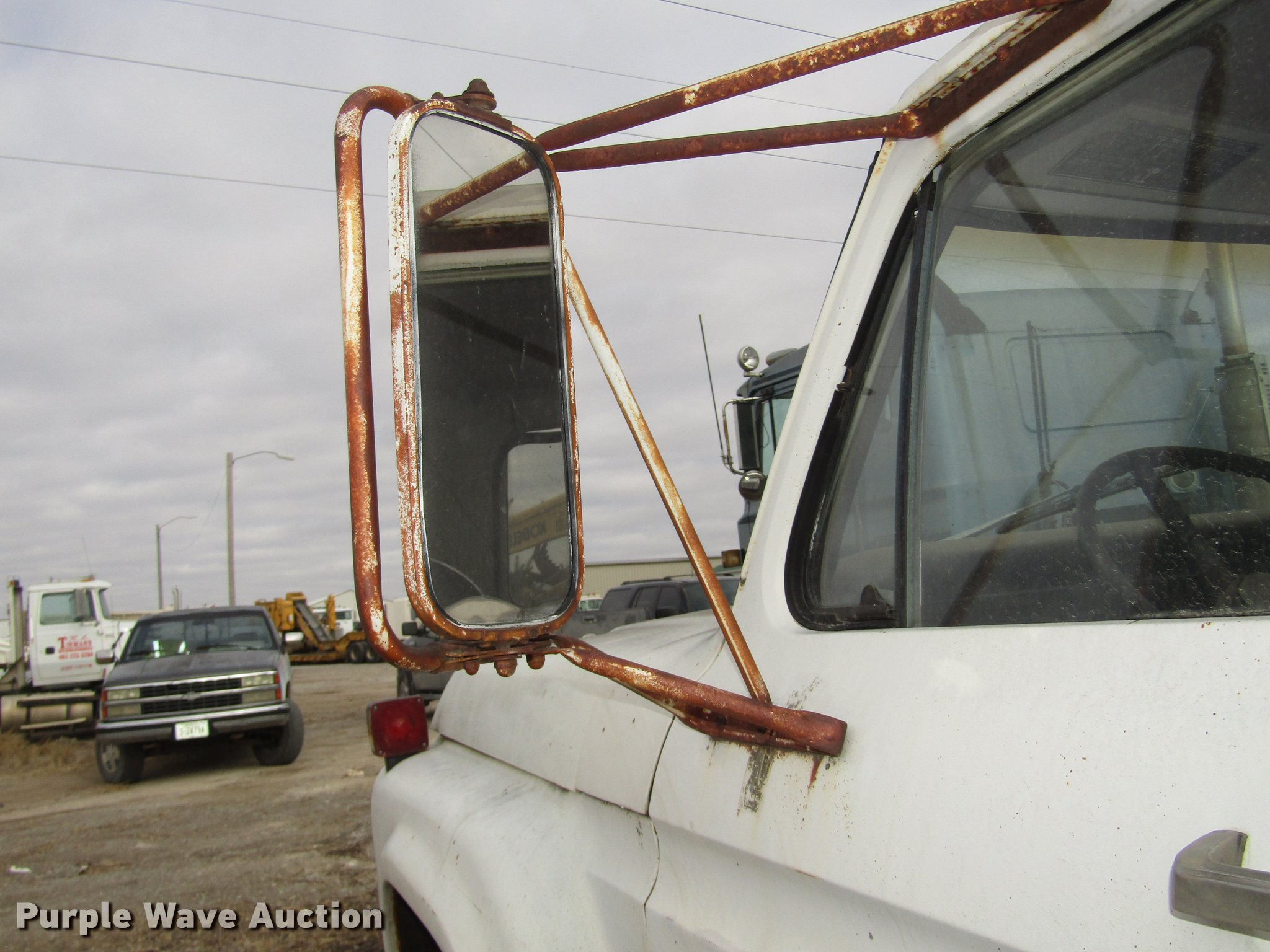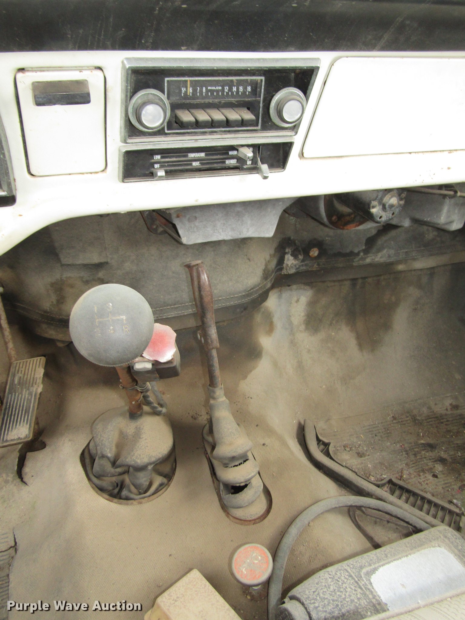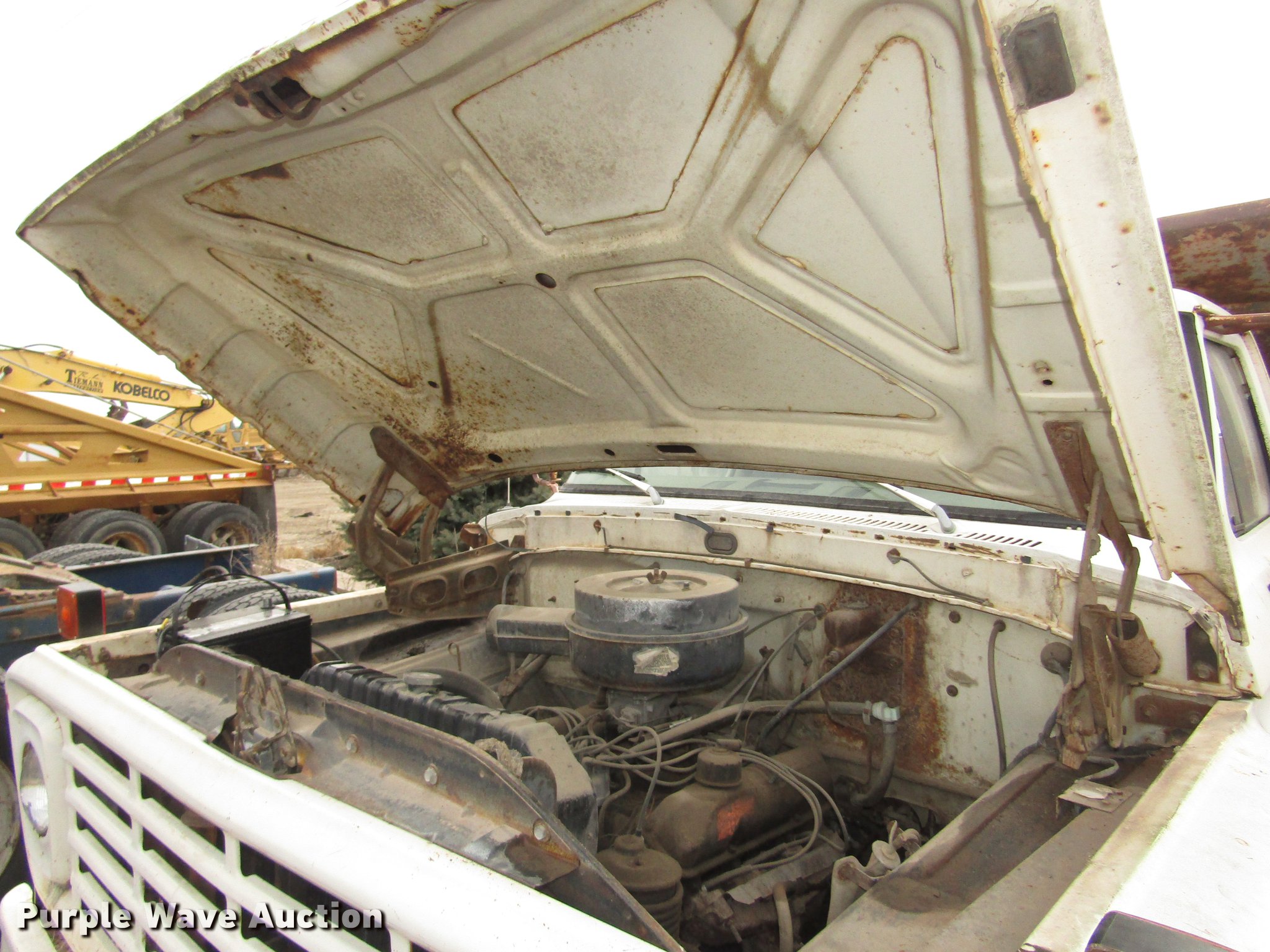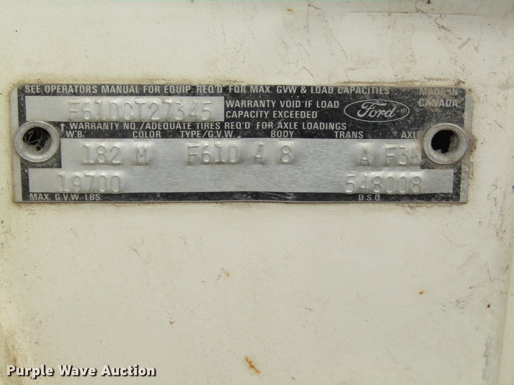 Purple Wave is selling a used Construction Dump Truck in Nebraska. This item is a 1974 Ford F600 dump truck with the following: 55,957 miles on odometer, V8 gas engine, Four speed manual transmission, Single axle, Heat, AM, Suspension seat, PTO, Front tow hooks, Heil A610-1941 dump bed, 10'L x 94"W, 23" side height, 7" side board height, 5 cu. yd. capacity, Single ram hoist, Manual operated end gate, Serial 129159, Single fuel tank, 180" wheelbase, Spring suspension, Hydraulic brakes, 8.25-20 tires, GVWR 19,700 lbs