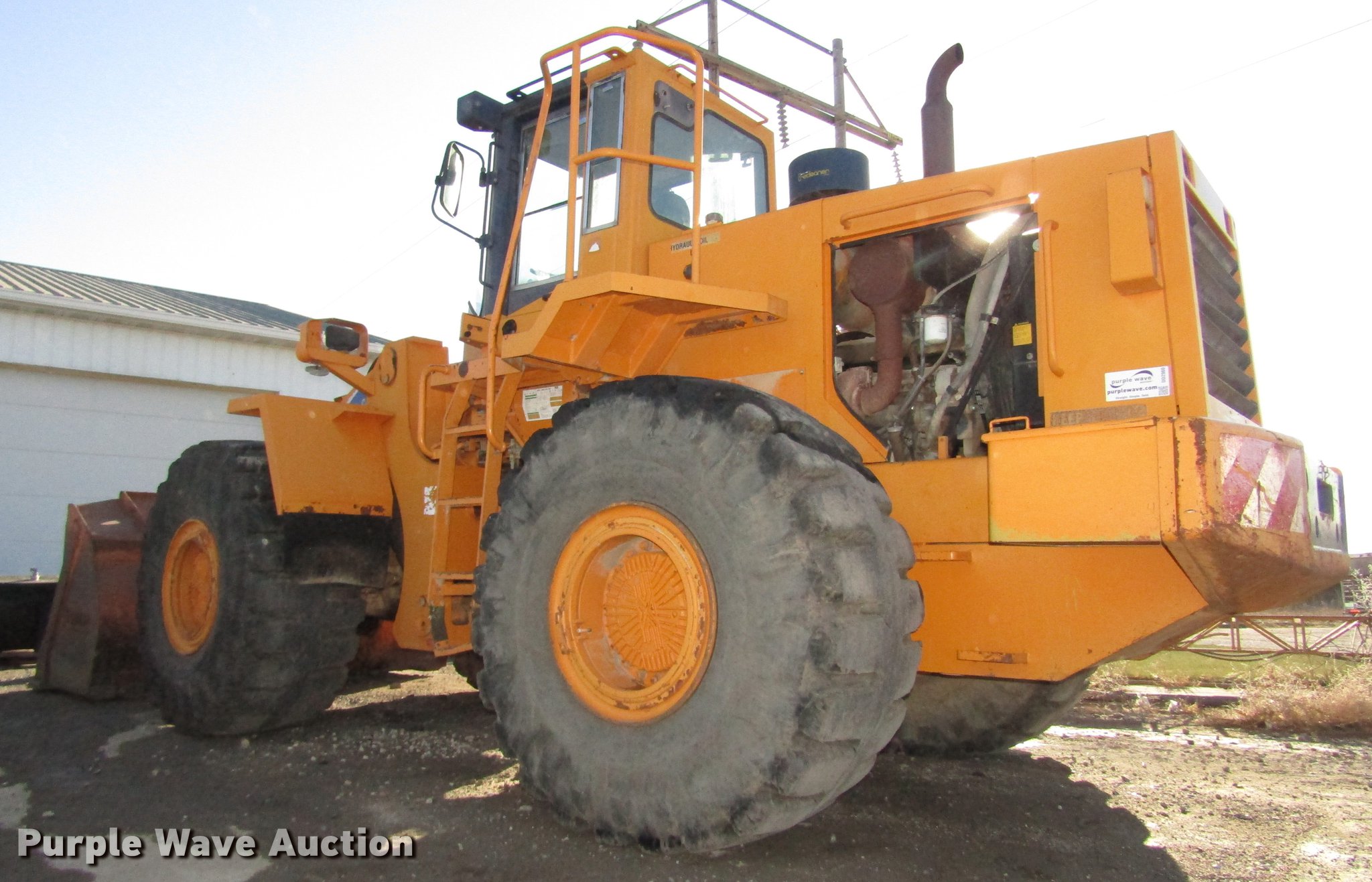 Samsung SL250-2 wheel loader. 9,187 hours on meter, Cummins six cylinder turbo diesel engine, Powershift transmission 4F-4R gears, Enclosed cab, AC and heat, AM/FM, Joystick bucket controls, Wipers, Front and rear work lights, Asbury SL250-2 120"W general purpose bucket 5 cu. yd. capacity, Bolt-on cutting edge, Pin hitch, Yokohama 26.5-25 tires, Dash cover missing, Transmission slips out of gear intermittently. R.L. Tiemann Construction. 2401 Centennial Dr. Beatrice, NE 68310