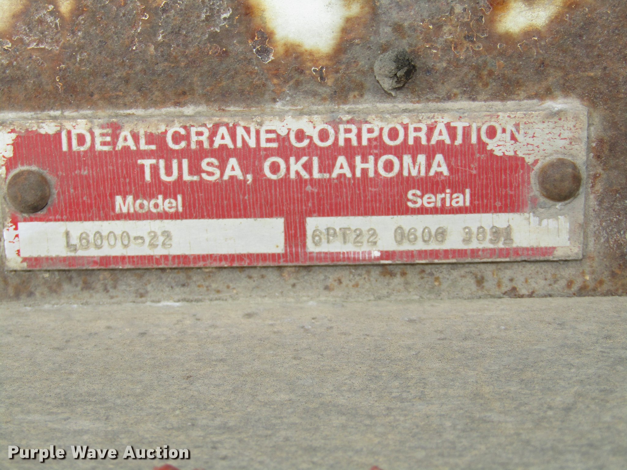 Purple Wave is selling a used Truck Mounted Crane in Nebraska. This item is a Liberator L6000-22 crane with the following: 6,000 lbs maximum lift capacity, 23' maximum lift height, Approximately 10.5'L retracted, 1,636 lbs maximum lift capacity at 22' reach, Dual lift cylinders, Single sheave block, Warn hoist, 4,000 lbs capacity, 5/16" diameter cable, 18" x 18" base, Serial 6PT2206063831
