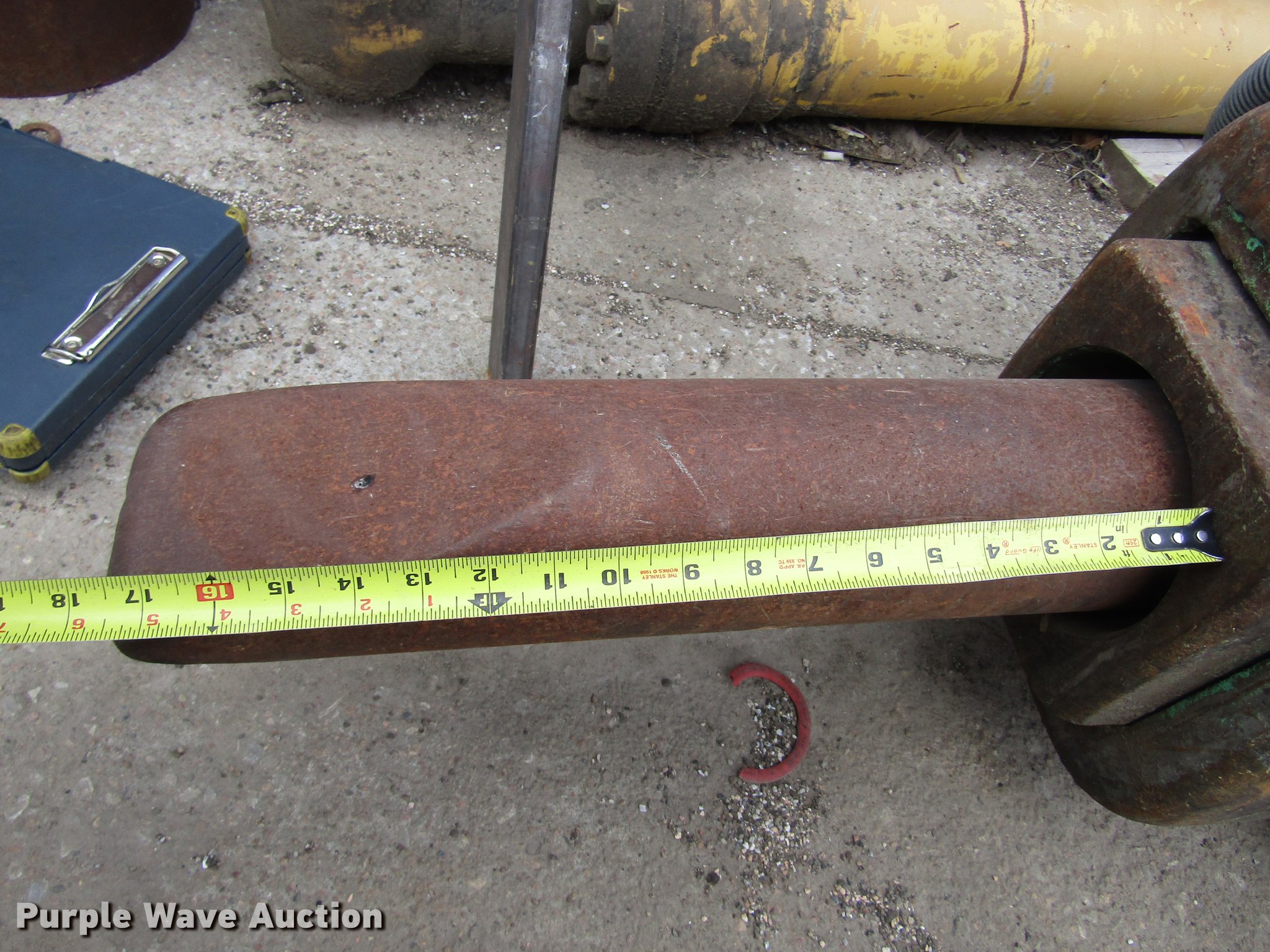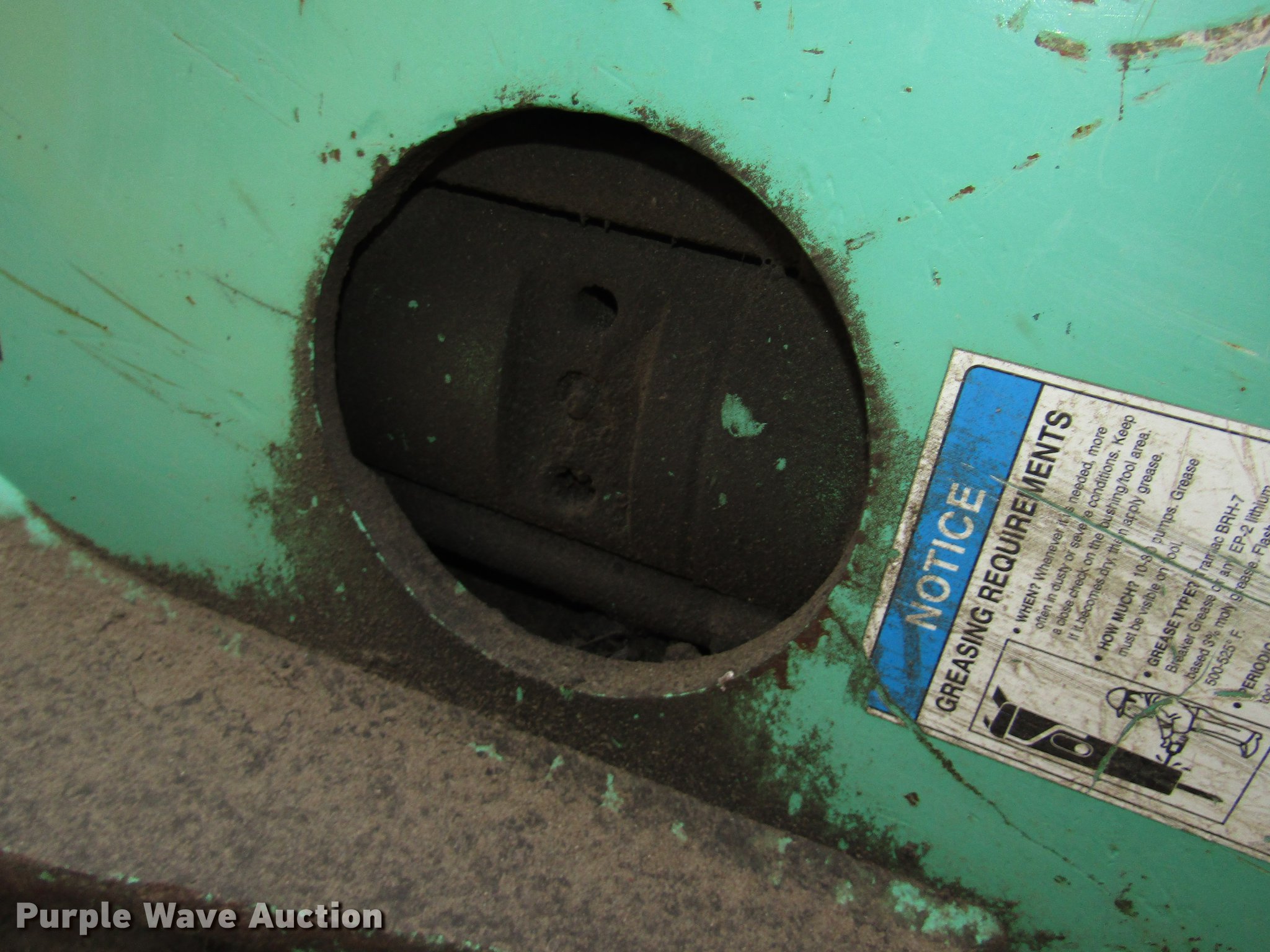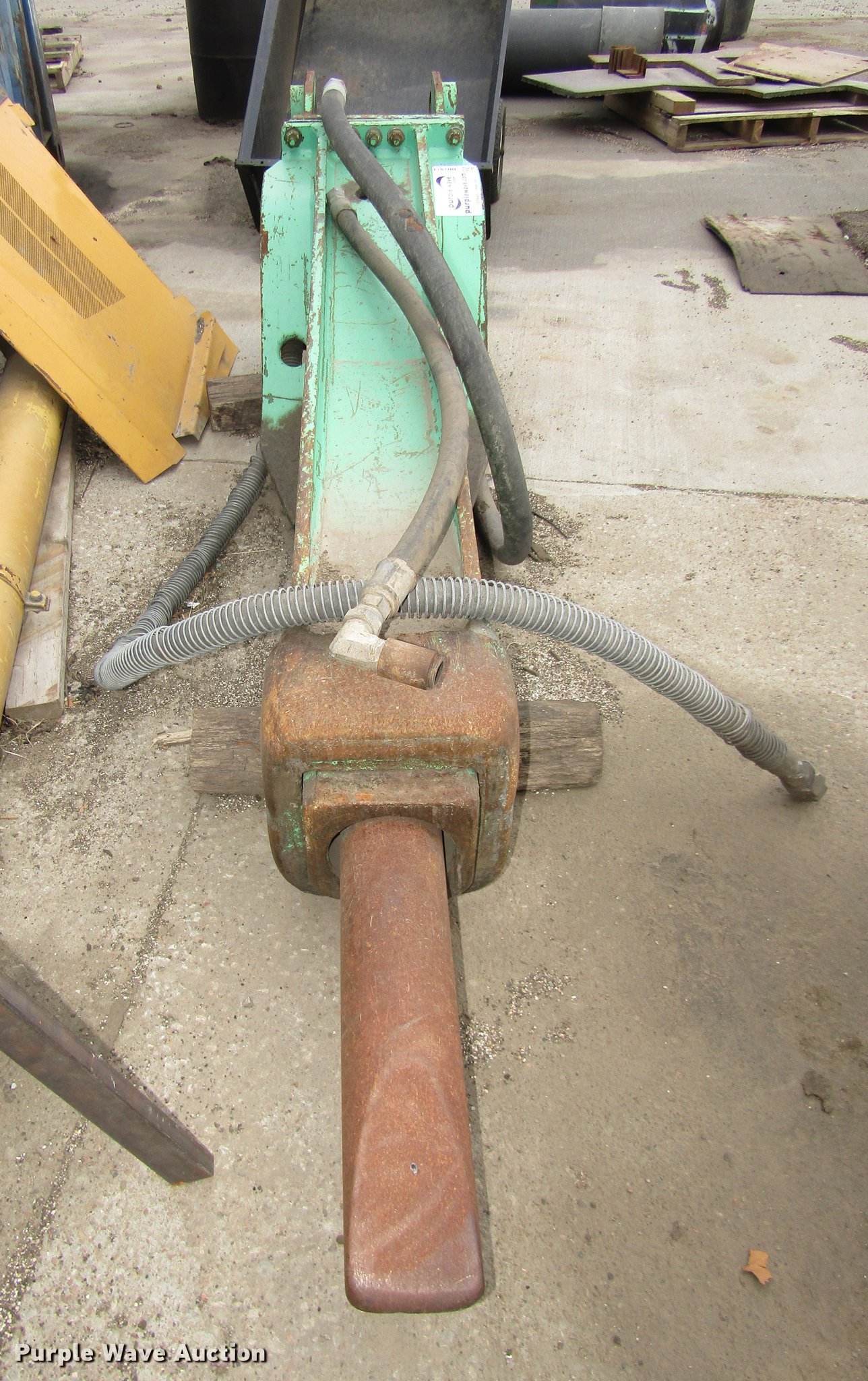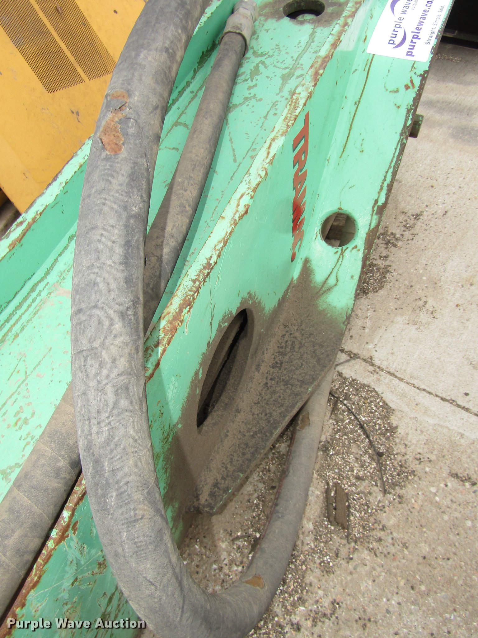 Purple Wave is selling a used Breaker or Hammer in Nebraska. This item is a Tramac hydraulic hammer with the following: Approximately 100"L x 20"W x 23" O.D., 18"L x 4 5/8" chisel bit, Approximately 2 3/4" pin diameter, 18" O.C. pin holes, 11"W I.D. bracket
