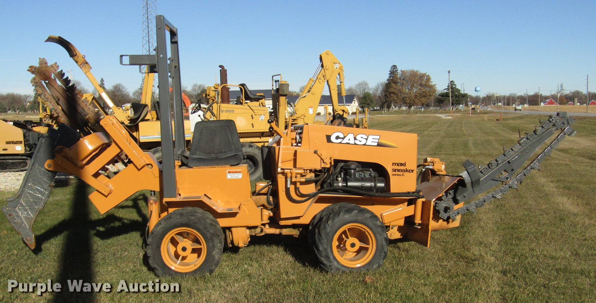Purple Wave is selling a used Cable Plow in Iowa. This item is a 2004 Case Maxi Sneaker Series C cable plow with the following: 195 hours on meter, Kubota V150S-E 1.5L four cylinder diesel engine, 26.5 kW, Serial 307380, Four wheel drive, OROPS, Serial JAF0167802, Suspension seat, Personal restraint bar, Trencher, 4" cutting width, 3' digging depth, Frost teeth, Vibratory plow, 24" to 32" digging depth, 23x10.50-1 tires, Some teeth missing, Serial DFG0006240