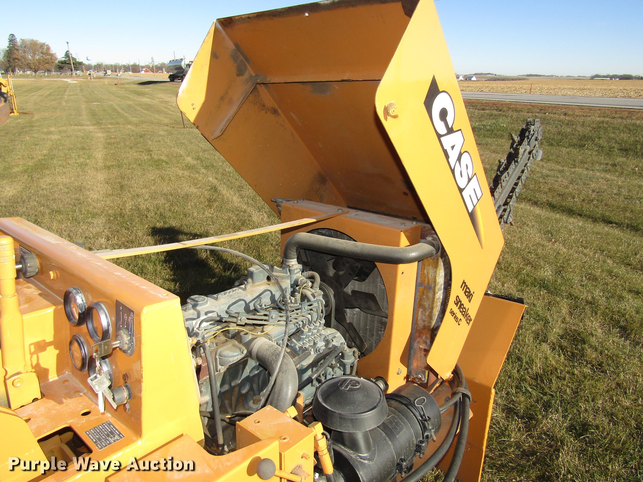 2004 Case Maxi Sneaker Series C cable plow. 195 hours on meter, Kubota V150S-E 1.5L four cylinder diesel engine 26.5 kW, Serial 307380, Four wheel drive, OROPS Serial JAF0167802, Suspension seat, Personal restraint bar, Trencher 4" cutting width, 3' digging depth, Frost teeth, Vibratory plow 24" to 32" digging depth, 23x10.50-1 tires, Some teeth missing, Serial DFG0006240. Vermeer Siouxland. 4898 D Ave. Marcus, IA 51035