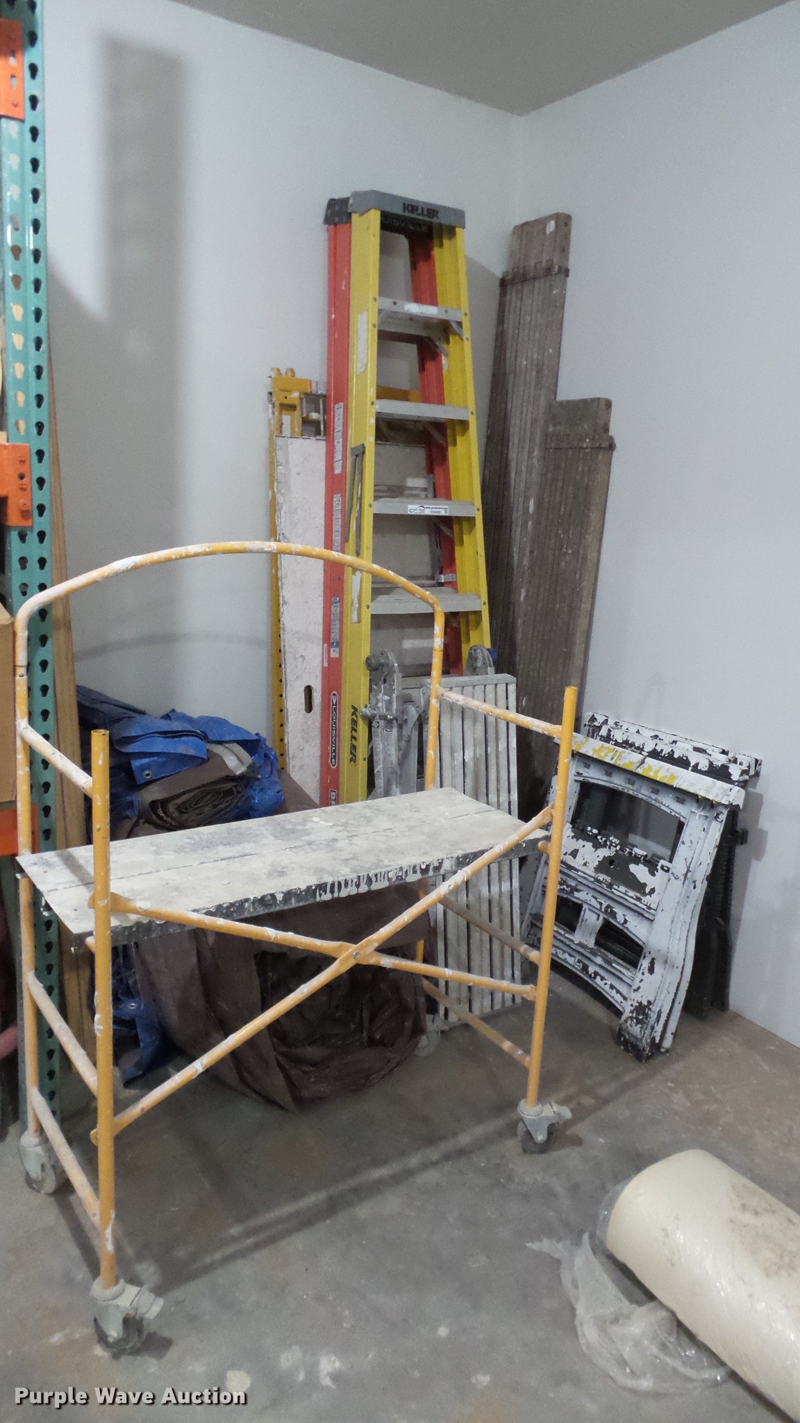 Purple Wave is selling a used Tools in Iowa. This item is a Ladders with the following: (11) scaffolds, 42"L x 20"W x 45"H, (4) saw horses, Werner stand, 39.5"W, Kellar telescoping multiladder, 14' maximum height, (2) fiberglass ladders, 8'H, 29"L x 67"W scaffolding, 1,000 lbs capacity