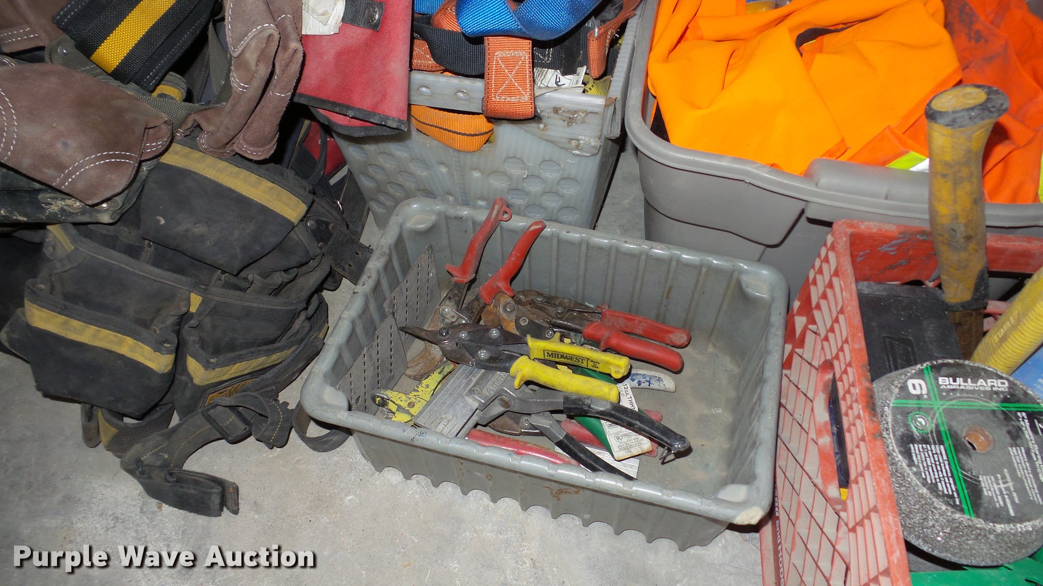Purple Wave is selling a used Tools in Iowa. This item is a Tools with the following: Water hoses, Water coolers, Coolers, Rubber boots, Hand tools, Hard hats, Safety belts, Work belts, First aid kits, Hazzard markers