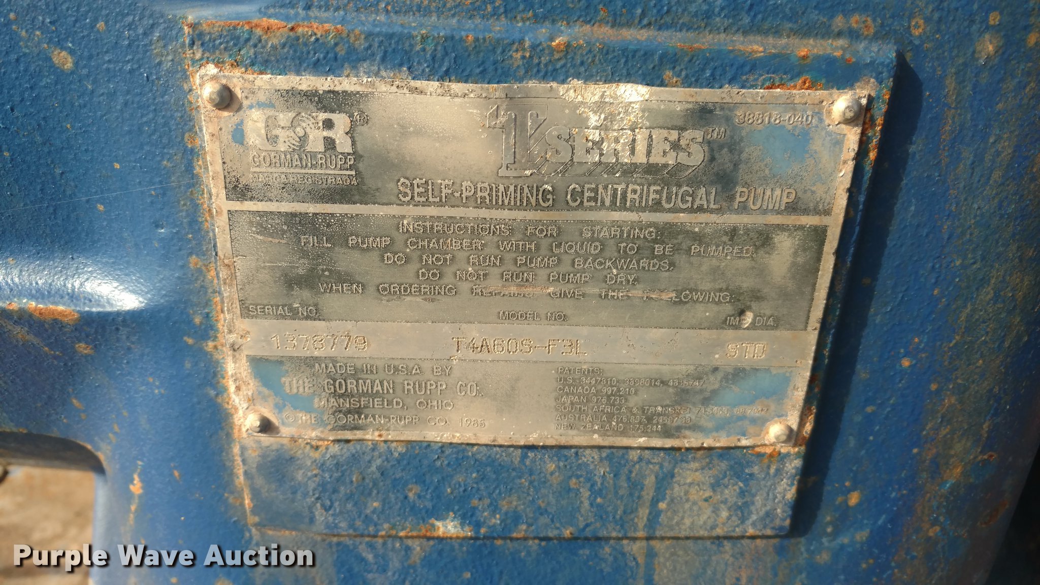 This Gorman Rupp T4A60S-F3L self priming centrifugal pump will sell to the highest bidder regardless of price.