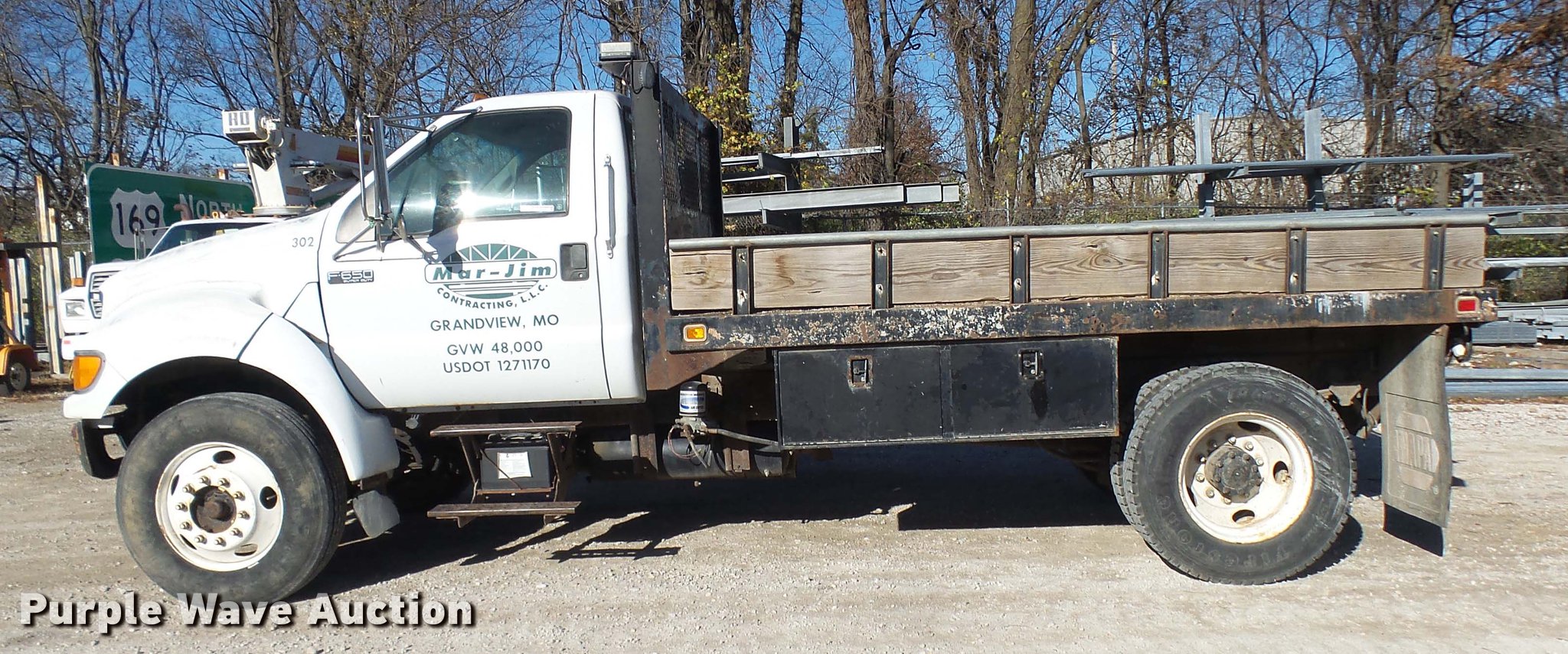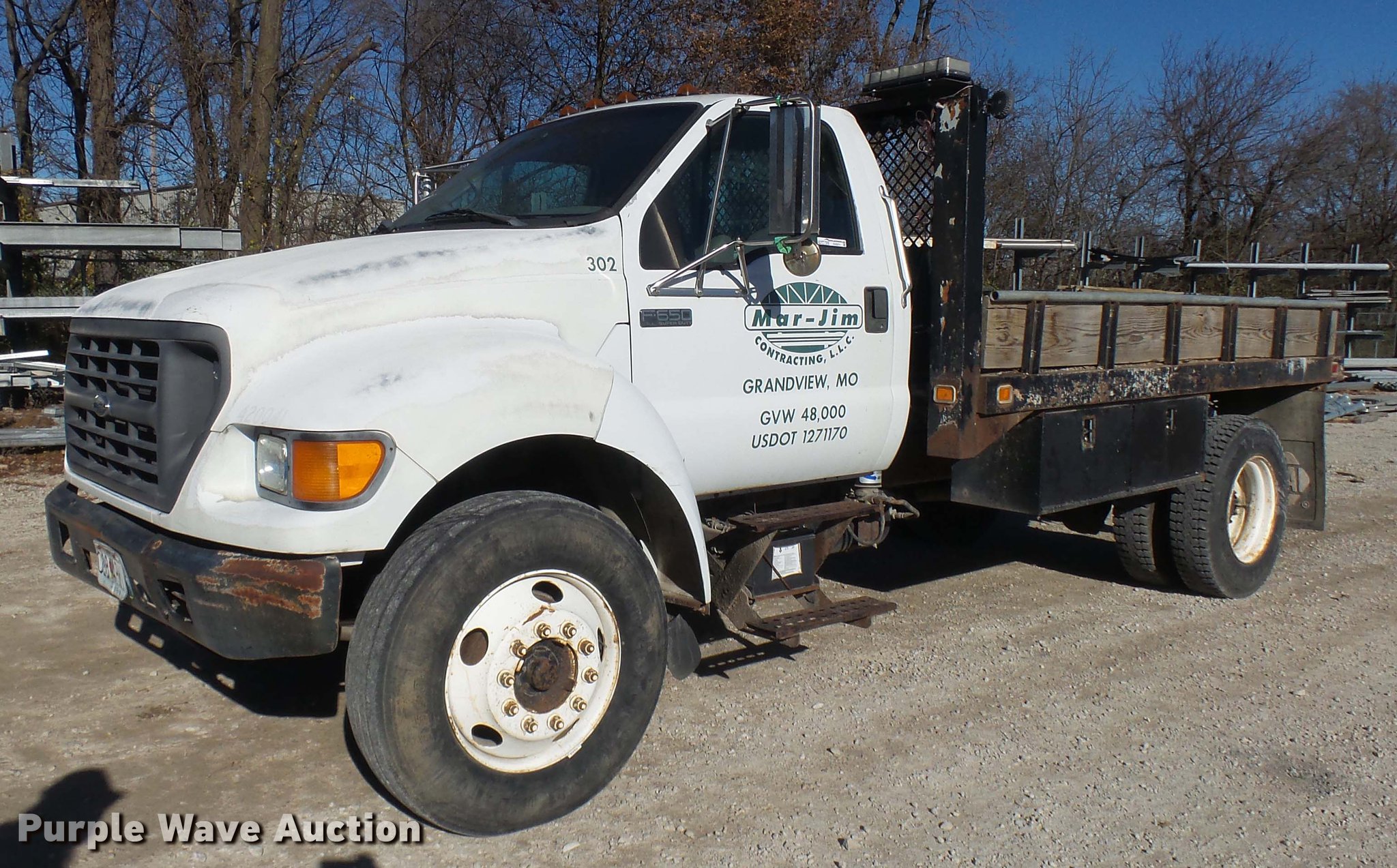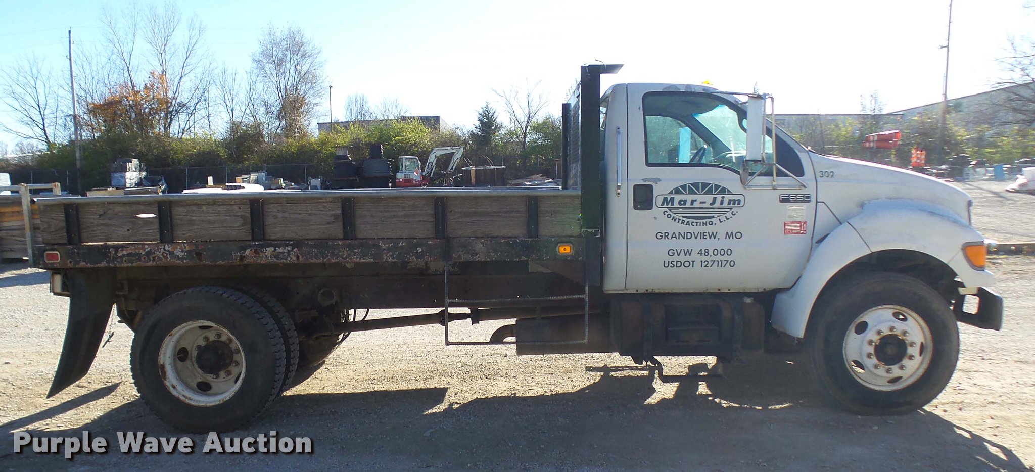 Purple Wave is selling a used Construction Dump Truck in Missouri. This item is a 2000 Ford F650 dump truck with the following: 105,569 miles on odometer, Cummins 5.9L L6 turbo diesel engine, Automatic transmission, Single axle, Heat, AM/FM, Trailer brake controller, PTO, Block heater, Knapheide steel dump bed, 12'L x 8'W, Single ram hoist, Single fuel tank, Pintle hitch, Trailer wiring, Rear air connections, 183" wheelbase, Spring suspension, Air brakes, 10.00-20 tires
