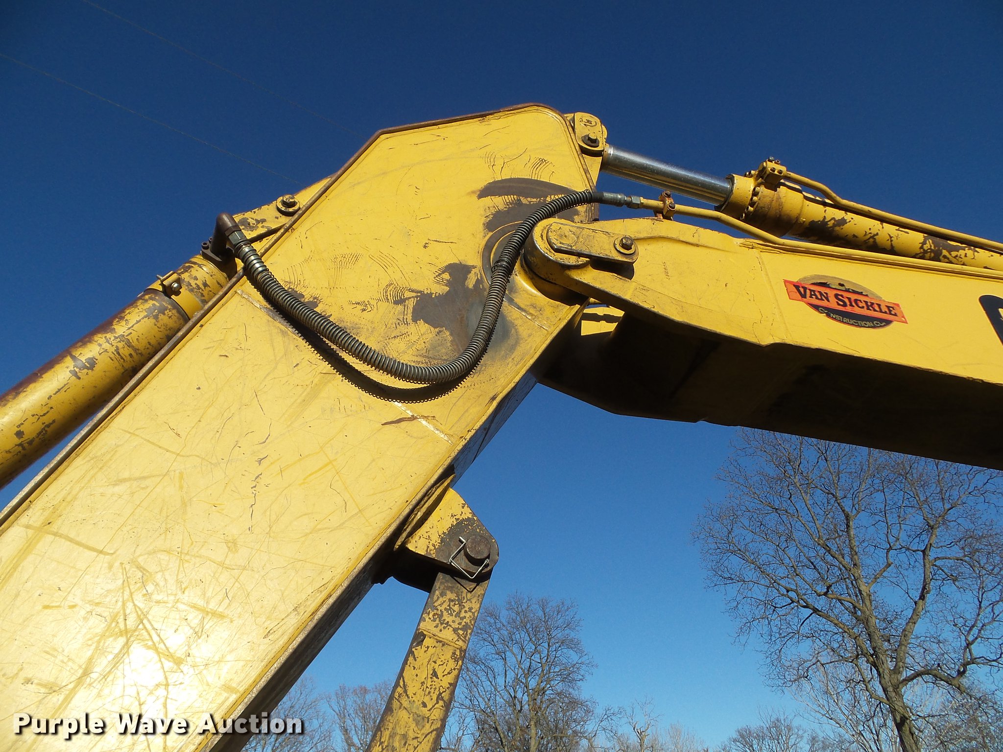 1994 Caterpillar 320L excavator. 12,676 hours on meter Hours may vary, unit in use, Caterpillar 3306 six cylinder turbo diesel engine, Hydrostatic transmission 1F-1R gears, Hi-Lo, Two speed travel, Enclosed cab, Heat, Suspension seat, Front work lights, Standard boom, 9.5' stick length, 18' boom length, Mechanical quick coupler, Manual thumb, Caterpillar 48"W bucket Bolt-on cutting edge, (6) bolt-on teeth, Eight bottom rollers, 32"W steel triple grouser track pads, Serial 9KK01541. Van Sickle Construction. 1139 242nd St. Boone, IA 50036