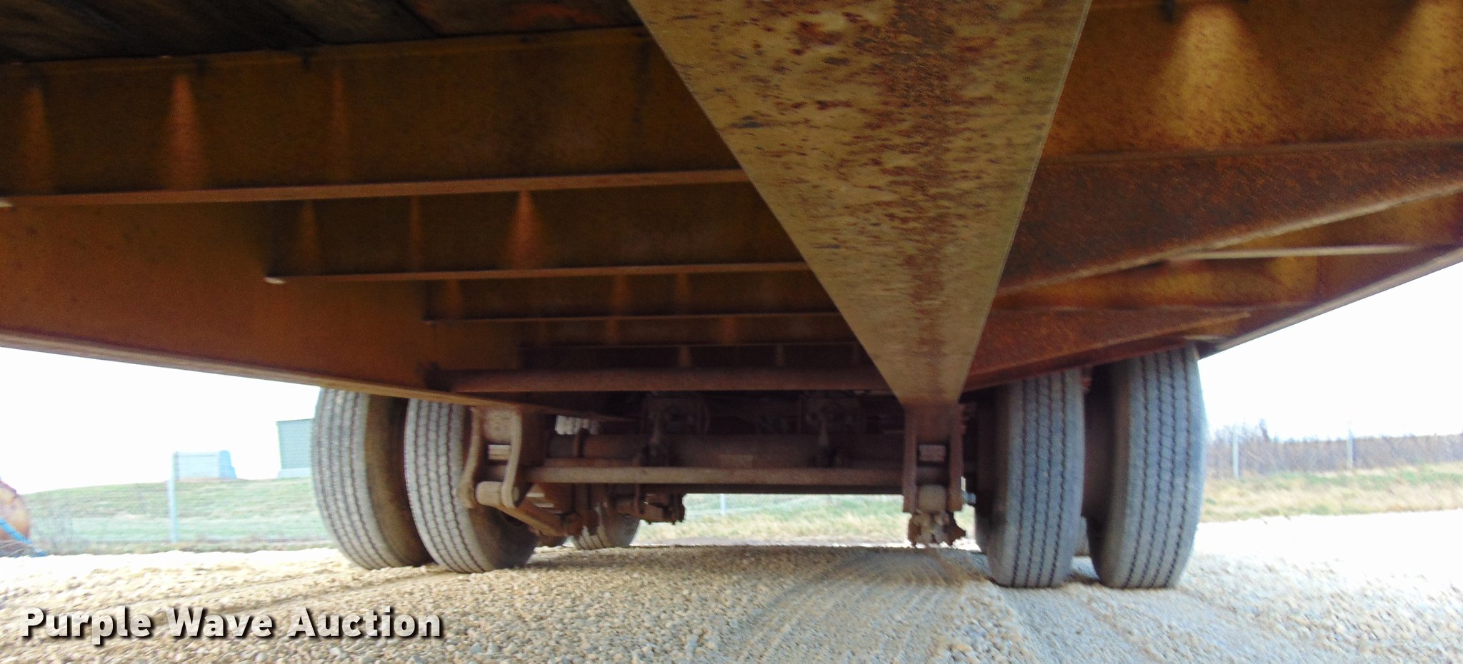 Purple Wave is selling a used Equip. Trailer in Iowa. This item is a 1994 Eager Beaver 20HALX equipment trailer with the following: 19'L x 102"W wood deck, 5'L dovetail, 55"L ramps, D-ring tie downs, Single leg landing gear, Pintle hitch, Tandem axle, Spring suspension, Air brakes, Steel wheels, 21575R17.5 tires, GVWR 47,900 lbs