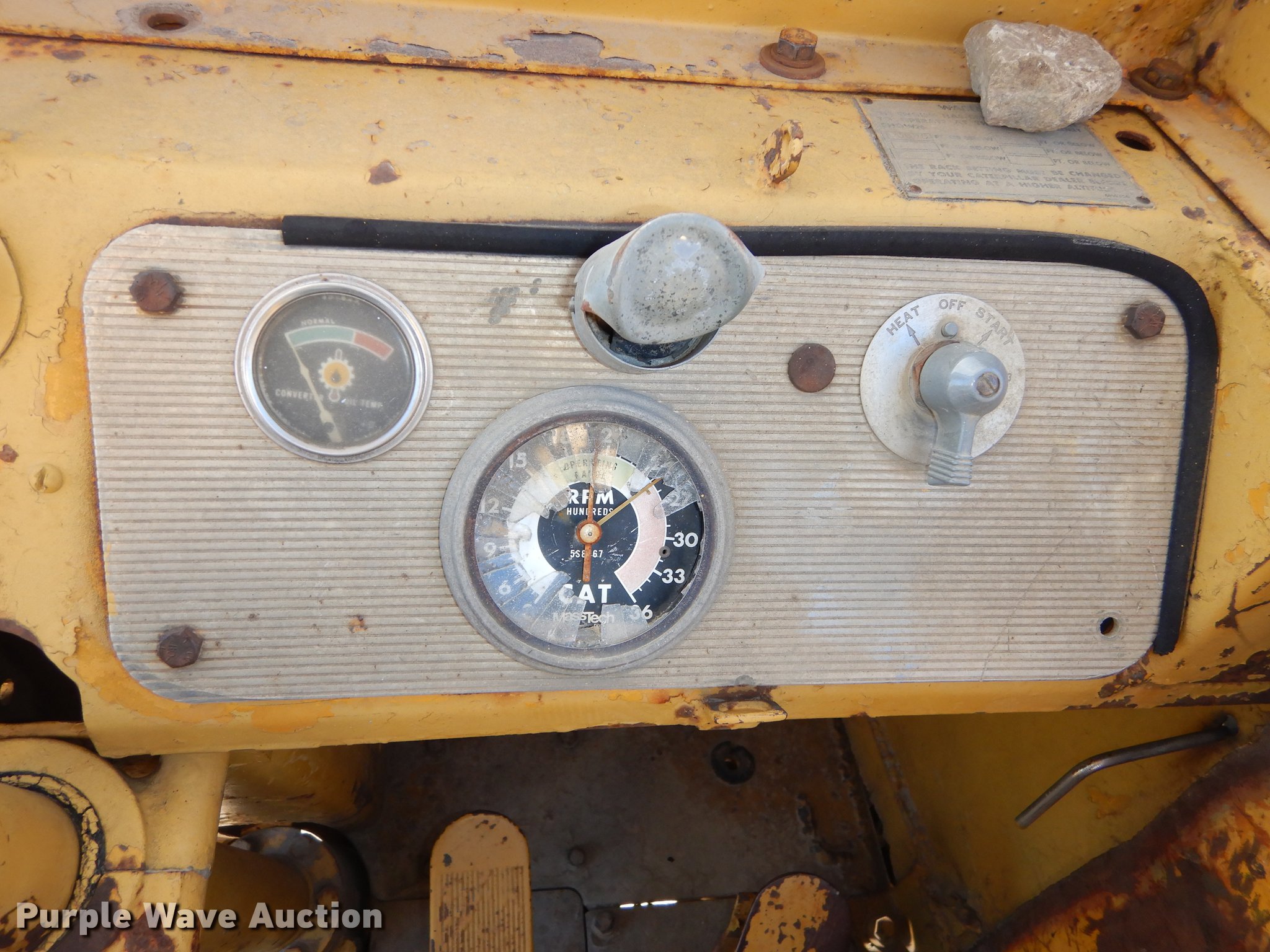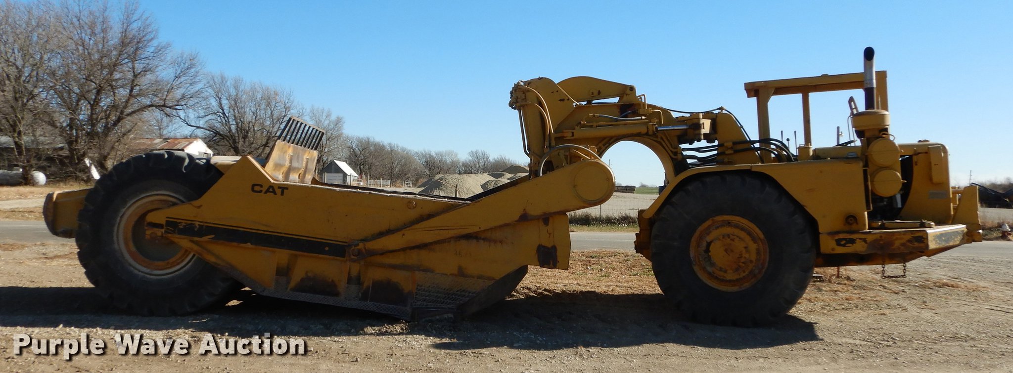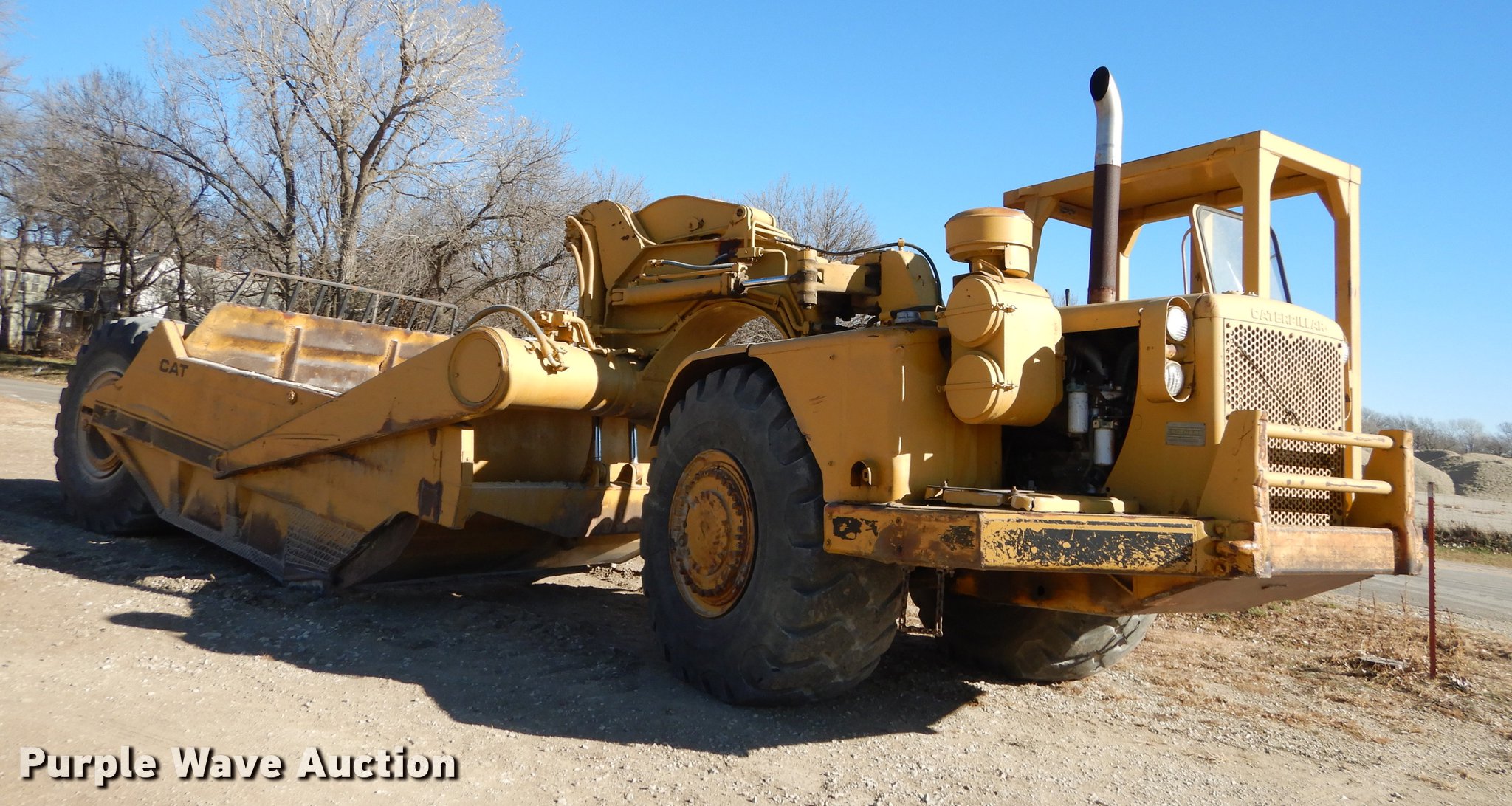 Purple Wave is selling a used Conventional Scraper in Kansas. This item is a 1972 Caterpillar 621 conventional scraper with the following: Detroit Diesel turbo diesel engine, Serial 8FF2843, Automatic transmission, OROPS, Serial 01065, Windshield, Three lever controls, Hydraulic lift, Rear push bloxk, Front work lights, Firestone 29.5-29 tires, RPM gauge glass damaged, Serial 23H4297