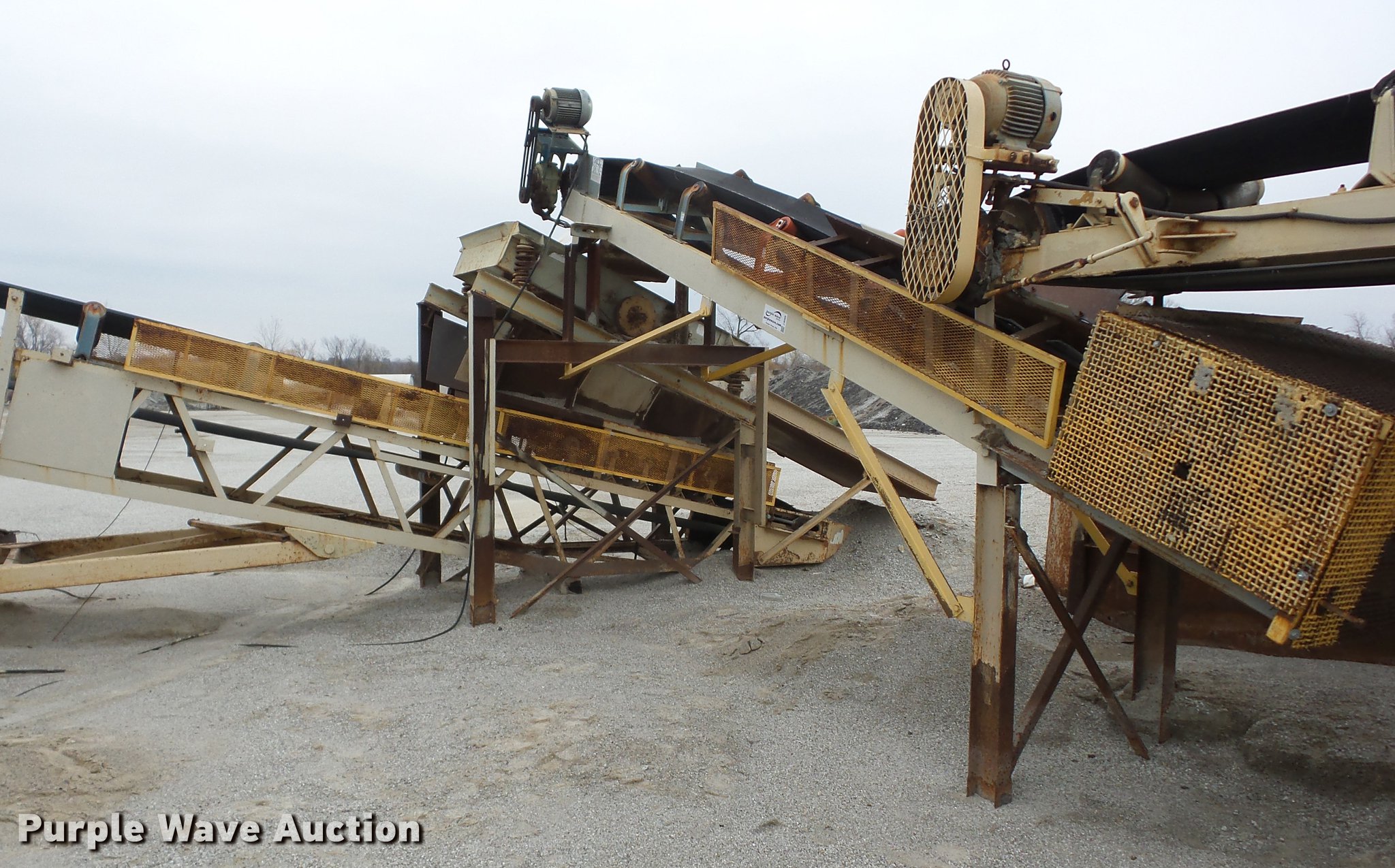 Purple Wave is selling a used Conveyor in Oklahoma. This item is a (3) conveyors with the following: 18'L, 30"W belt, Three phase electric motor, Gear reducer, Approximately 55'L, 30"W belt, Hydraulic height adjustment, Belt scale, Digital scale indicator, Replacement wire, 30'L conveyor, 29"W belt, Electric motor, Gear reducer, Peerless SDA27 vibrating screen, 7' x 42", Electric motor