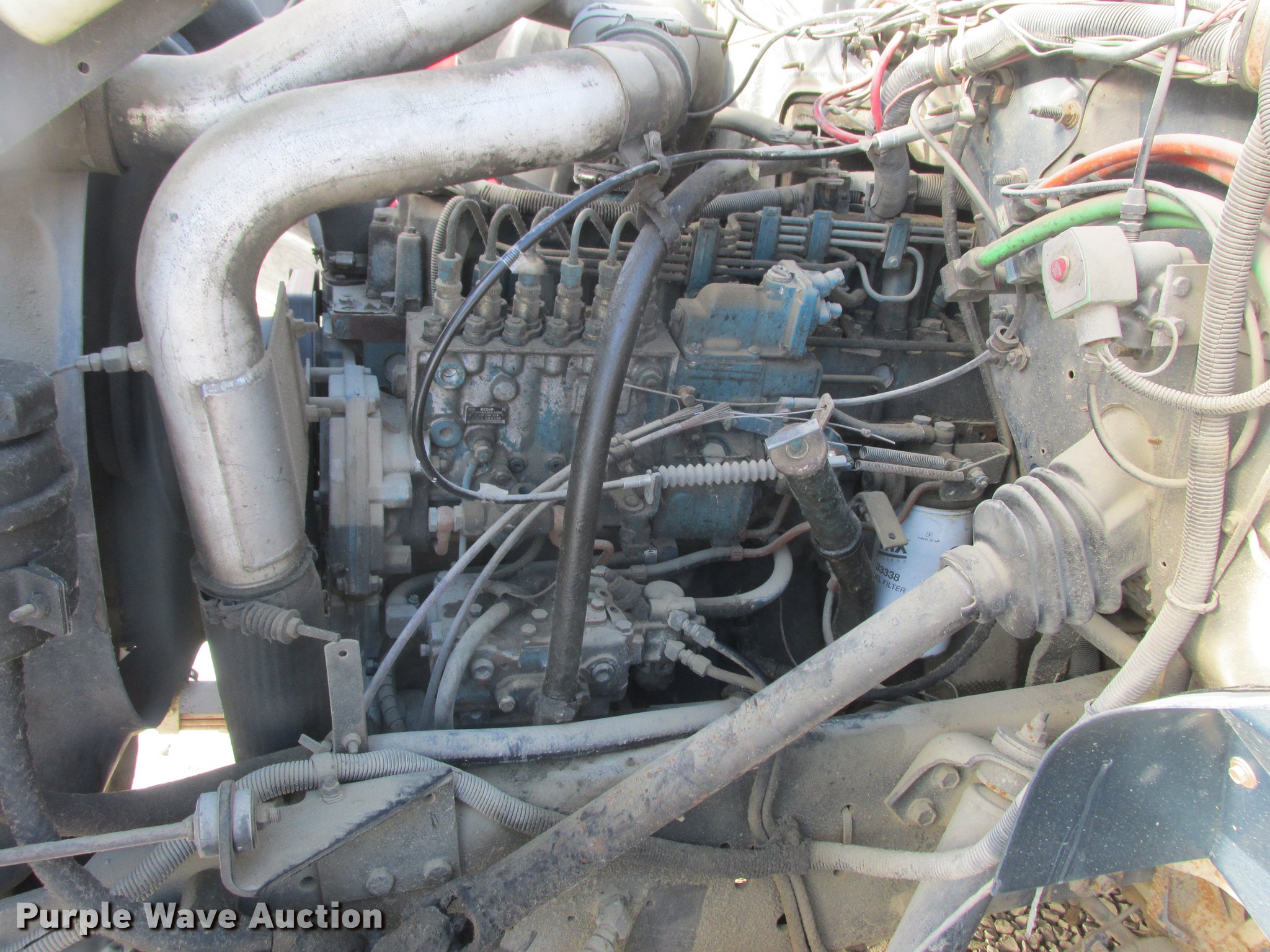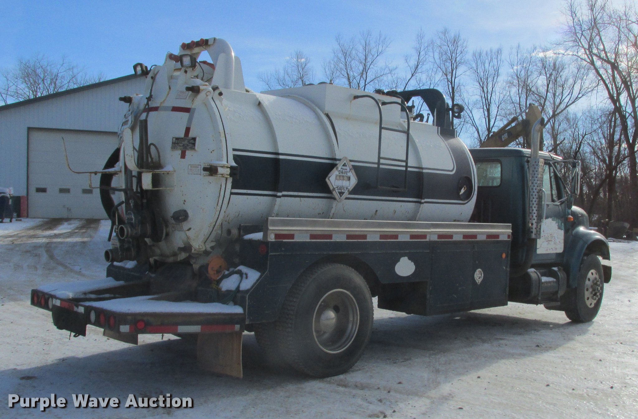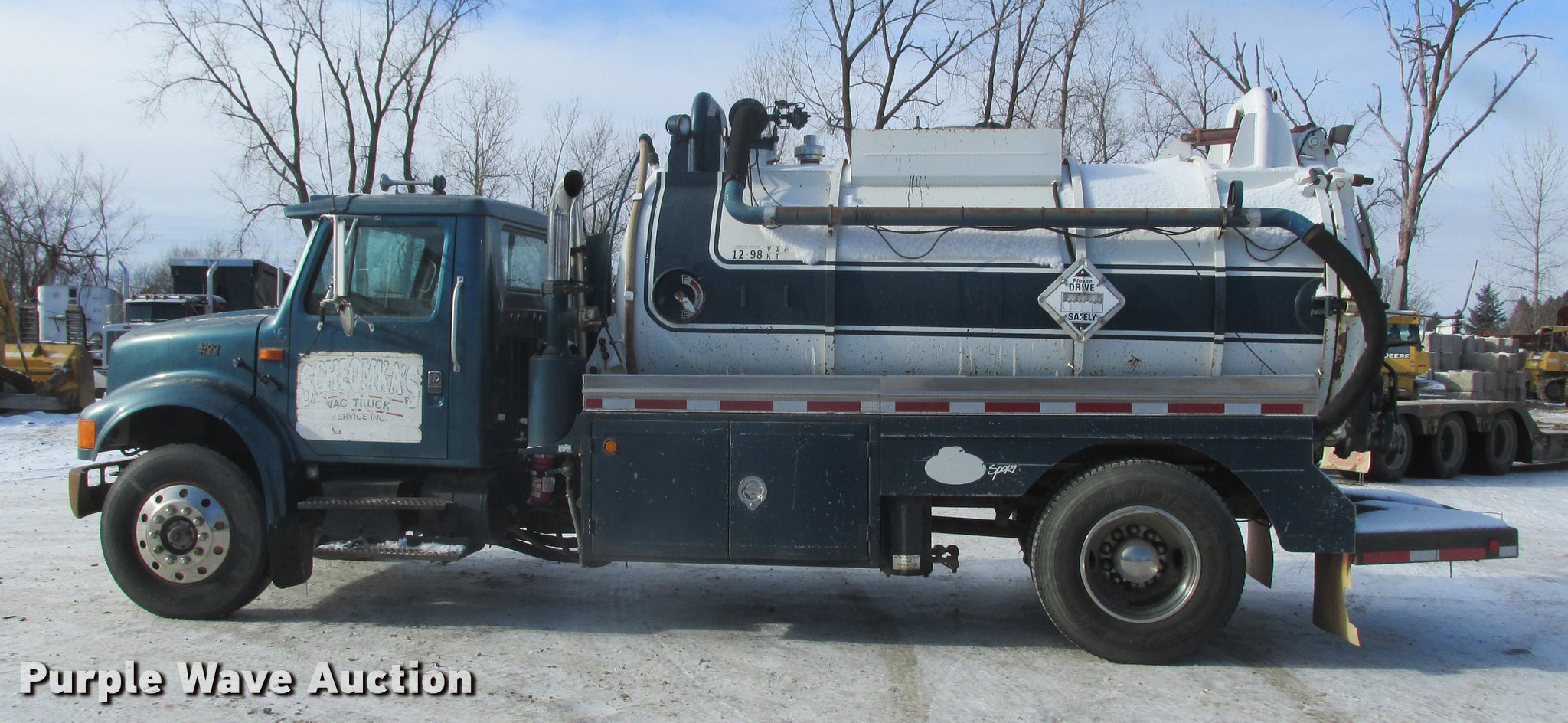 Purple Wave is selling a used Vacuum Truck in Minnesota. This item is a 1994 International 4900 vacuum truck with the following: 52,488 miles on odometer, International DT466 7.6L L6 turbo diesel engine, Spicer Double Duty five speed manual transmission, Two speed rear end, Single axle, Heat, AM/FM, PTO, Ether start aid, 1994 Ibex vacuum tank, 2,200 gallon capacity, Single ram hoist, 800 gallon per minute maximum load rate, Hydraulic operated end gate, 4" hose connections, Unlined tank, Work lights, Ladder, Toolbox, Single fuel tank, Single exhaust stack, 206" wheelbase, Spring suspension, Air brakes, 11R22.5 tires, GVWR 29,000 lbs