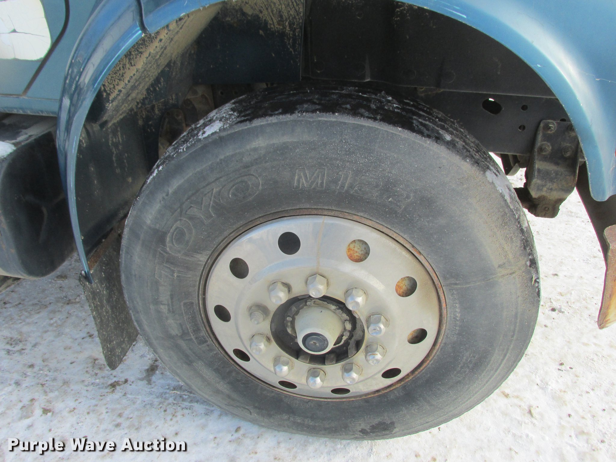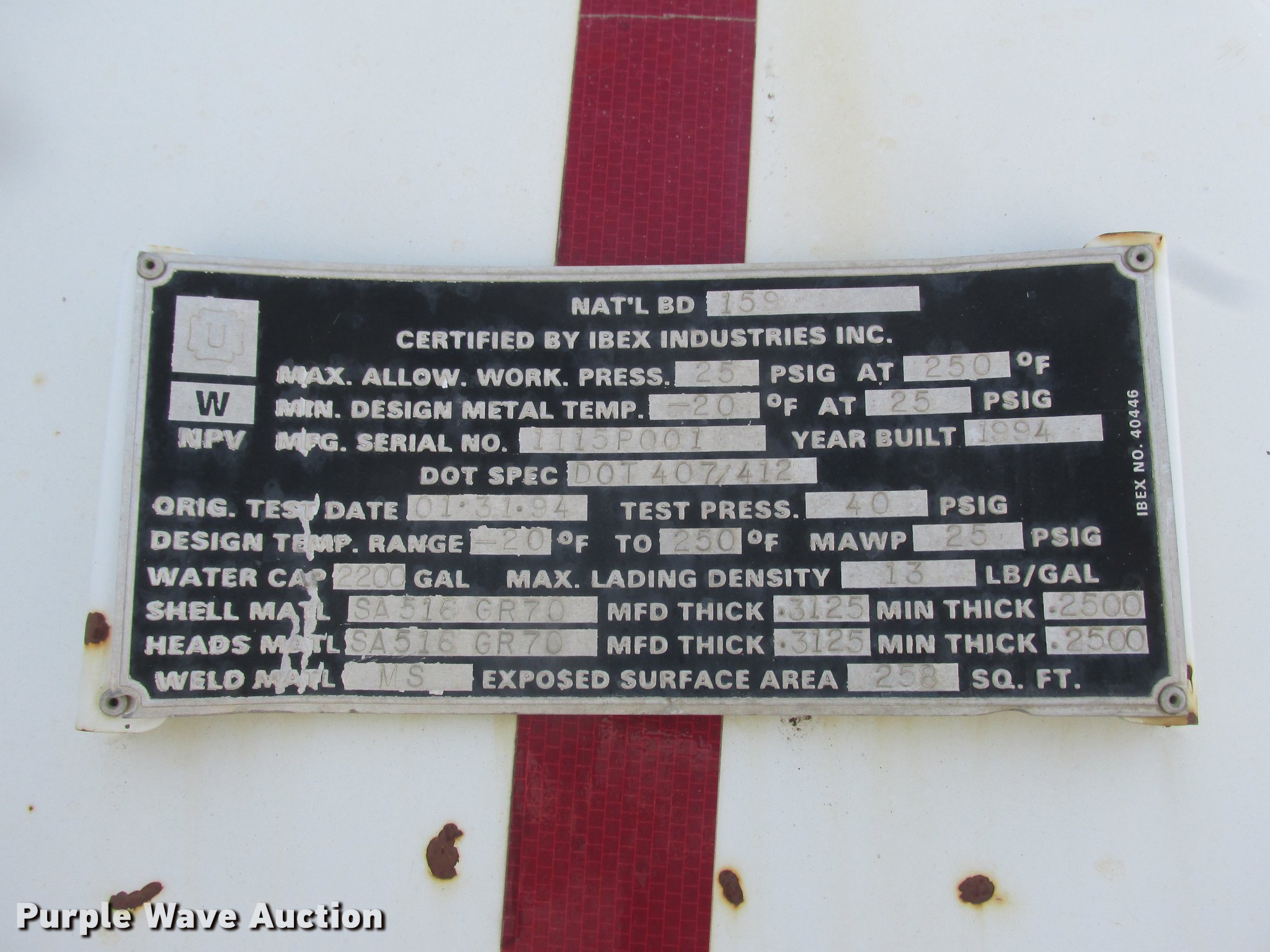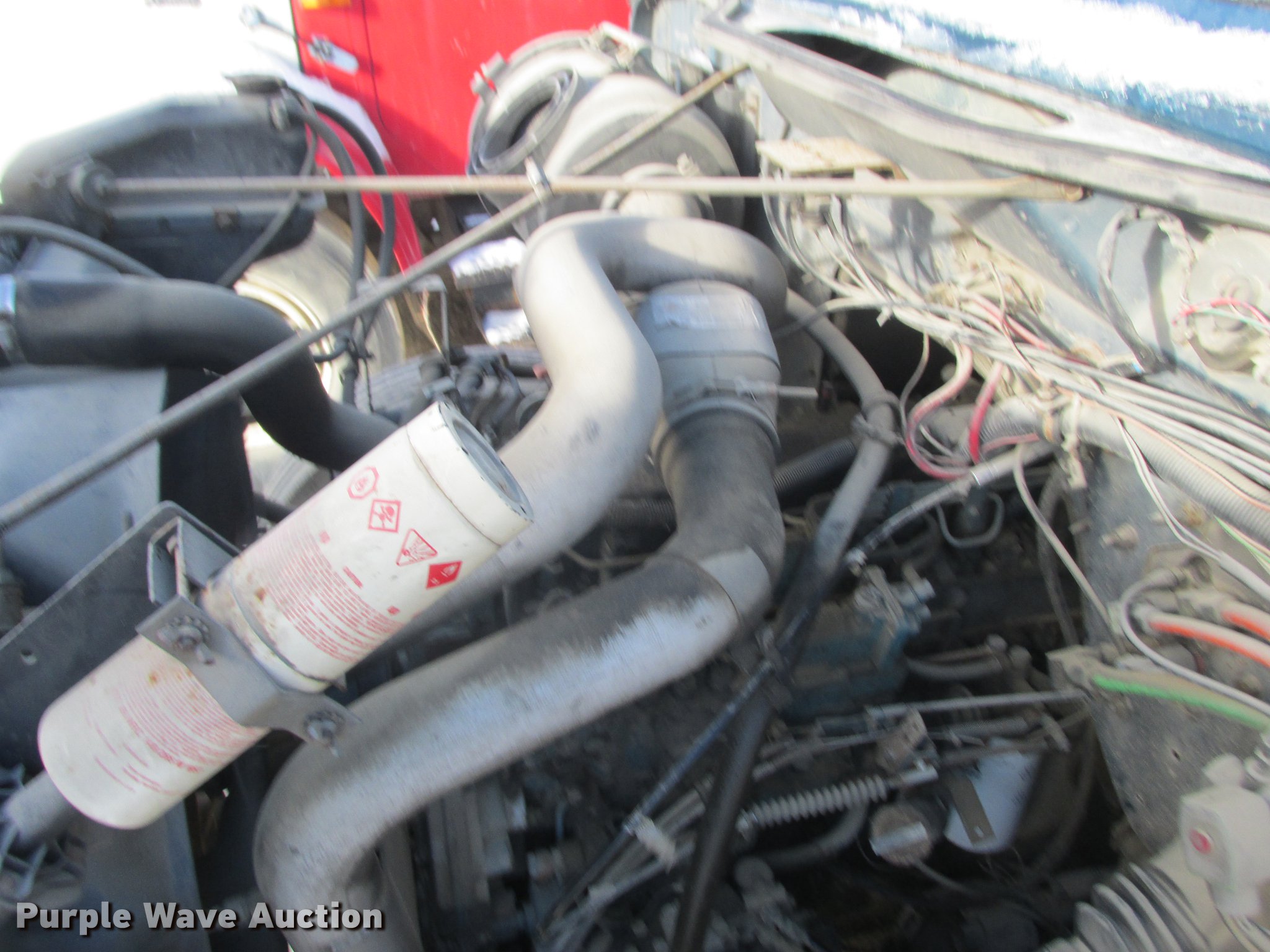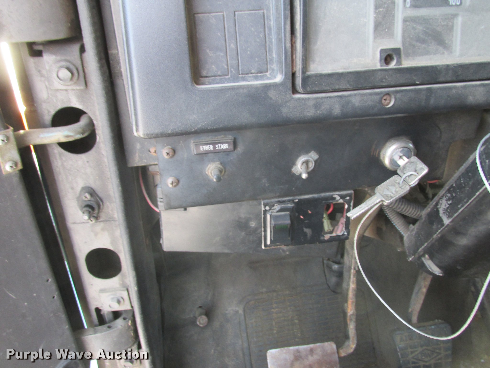 Purple Wave is selling a used Vacuum Truck in Minnesota. This item is a 1994 International 4900 vacuum truck with the following: 52,488 miles on odometer, International DT466 7.6L L6 turbo diesel engine, Spicer Double Duty five speed manual transmission, Two speed rear end, Single axle, Heat, AM/FM, PTO, Ether start aid, 1994 Ibex vacuum tank, 2,200 gallon capacity, Single ram hoist, 800 gallon per minute maximum load rate, Hydraulic operated end gate, 4" hose connections, Unlined tank, Work lights, Ladder, Toolbox, Single fuel tank, Single exhaust stack, 206" wheelbase, Spring suspension, Air brakes, 11R22.5 tires, GVWR 29,000 lbs