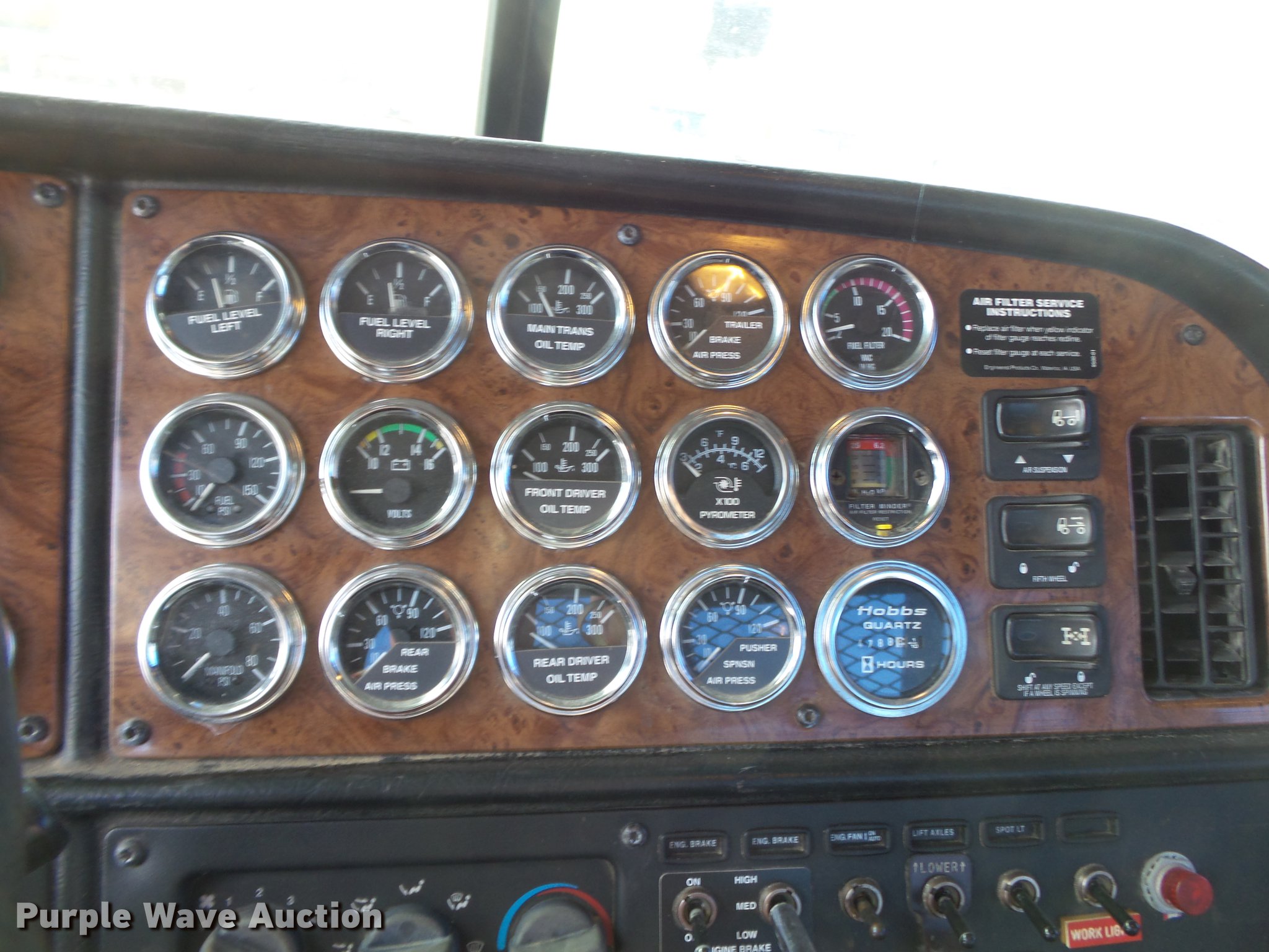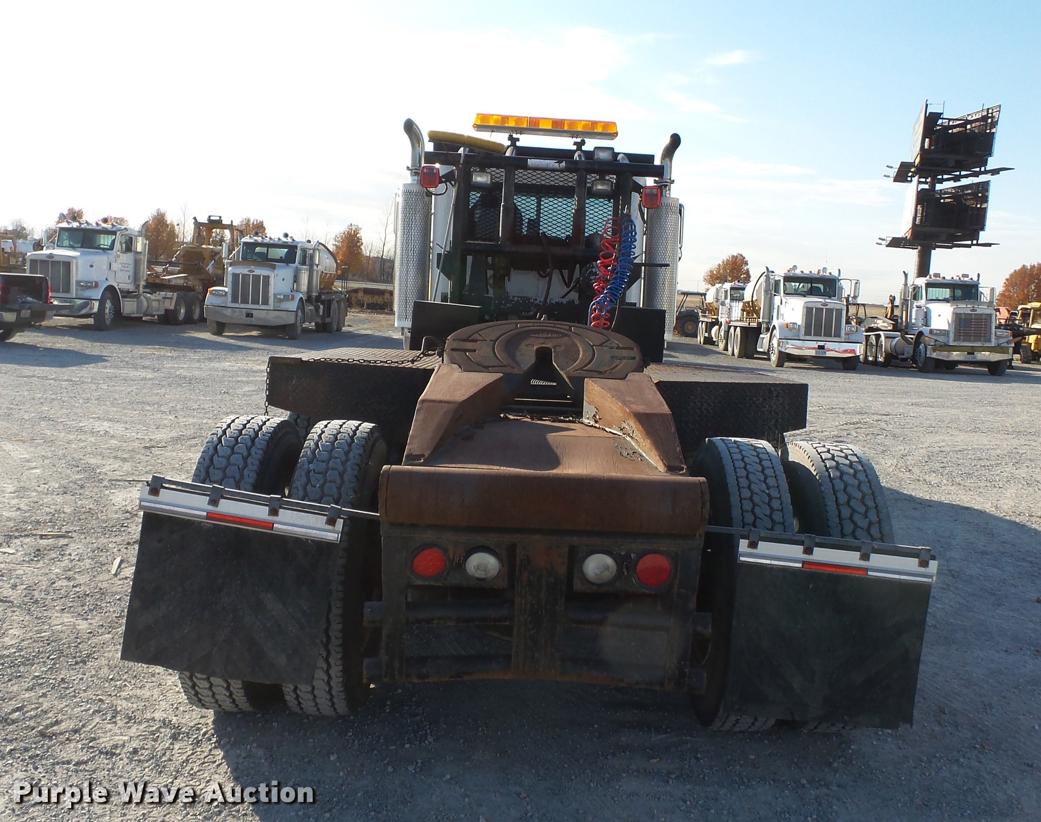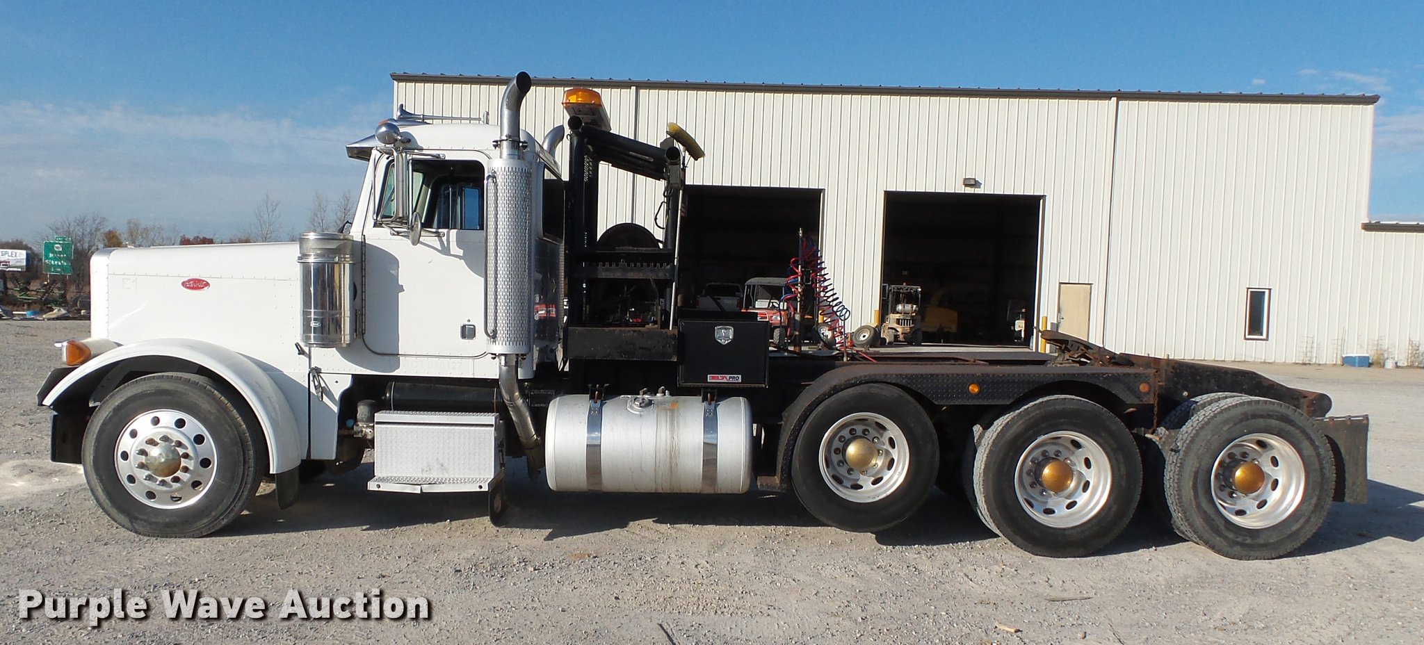 Purple Wave is selling a used Truck Tractor in Missouri. This item is a 2005 Peterbilt 379 semi truck with the following: 336,379 miles on odometer, 4,789 hours on meter, Caterpillar C15 14.6L L6 turbo diesel engine, 475 HP, Serial BXS22014, Eight speed manual transmission, Lo-Lo gear, Triple axle, Pusher lift axle, Inter-axle differential lock, AC and heat, Tilt, Cruise, AM/FM/cassette, Heated mirrors, Air suspension seat, Dump valves, PTO, Exterior visor, Beacon light, Dual front exhaust stacks, Steel deck plate, Air operated sliding fifth wheel plate, Headache rack, Chain hanger, Storage, Rolling tailboard, Tulsa 64F6LRFO winch, 45,000 lbs capacity, Dual fuel tanks, Mud flaps, Air suspension, Air brakes, Engine brake, 11R24.5 tires, GVWR 73,000 lbs, FAWR 12,860 lbs, IAWR 20,000 lbs, RAWR 20,000 lbs, 20,000 lbs lift axle, Chipped windshield