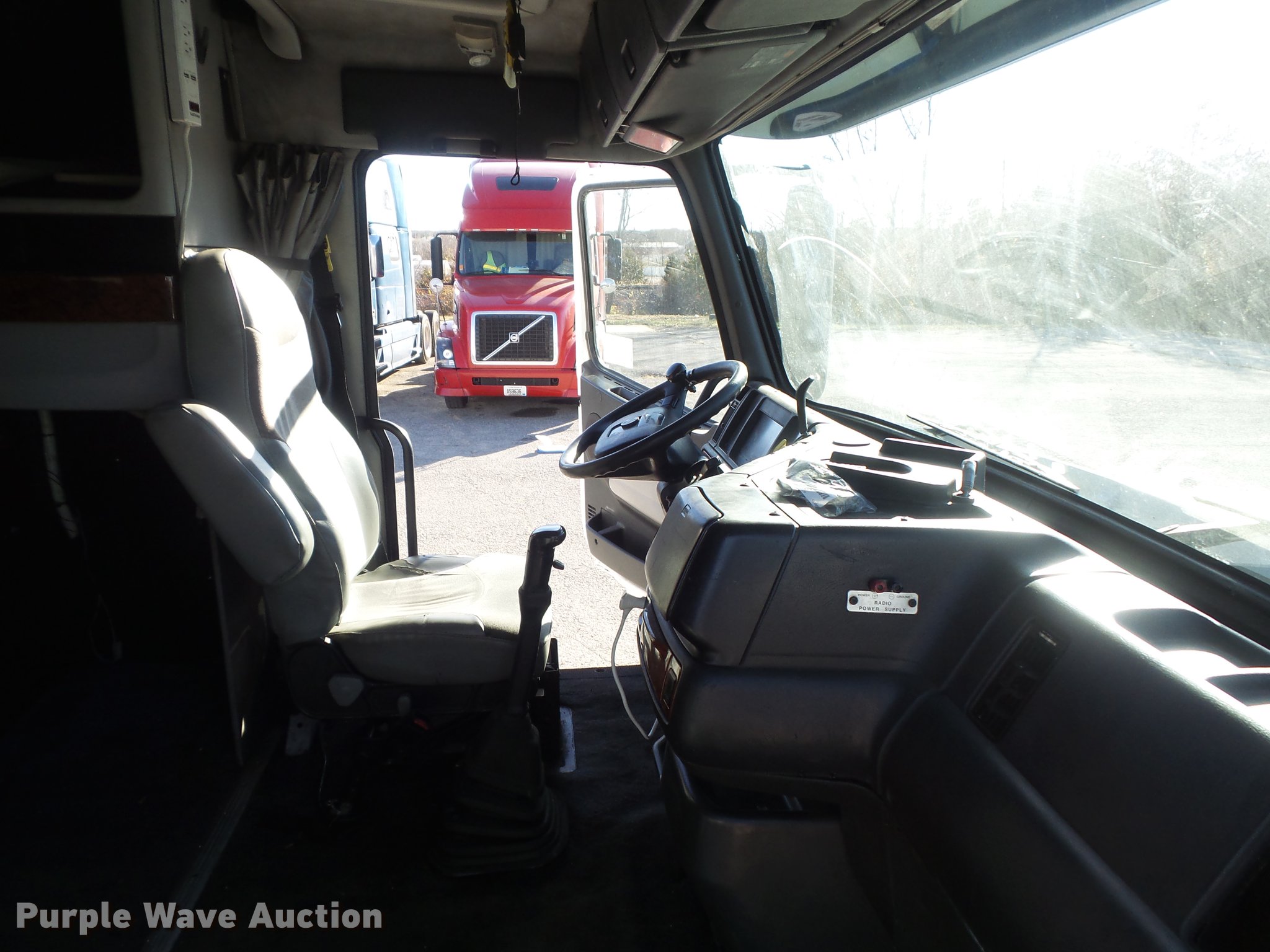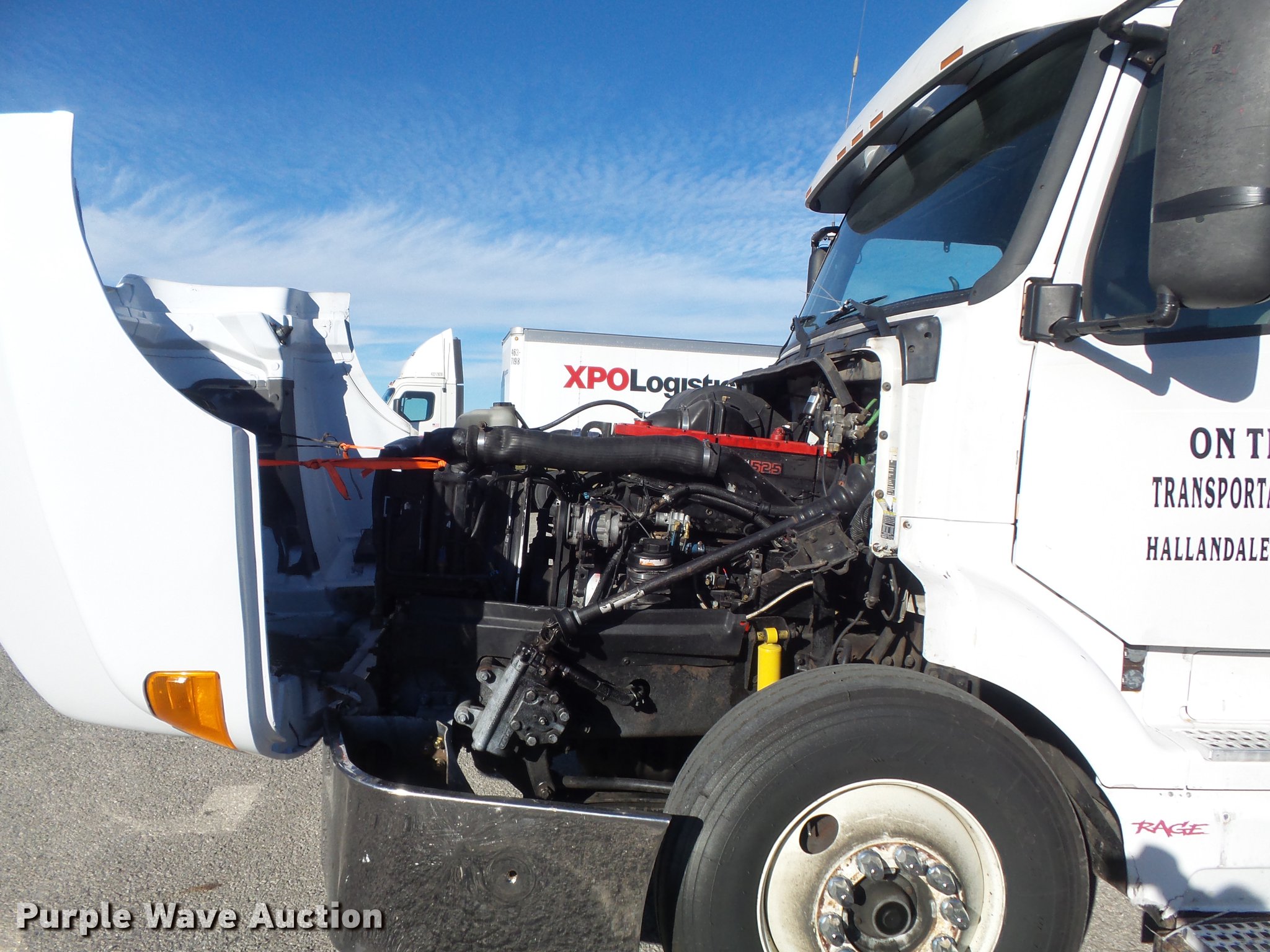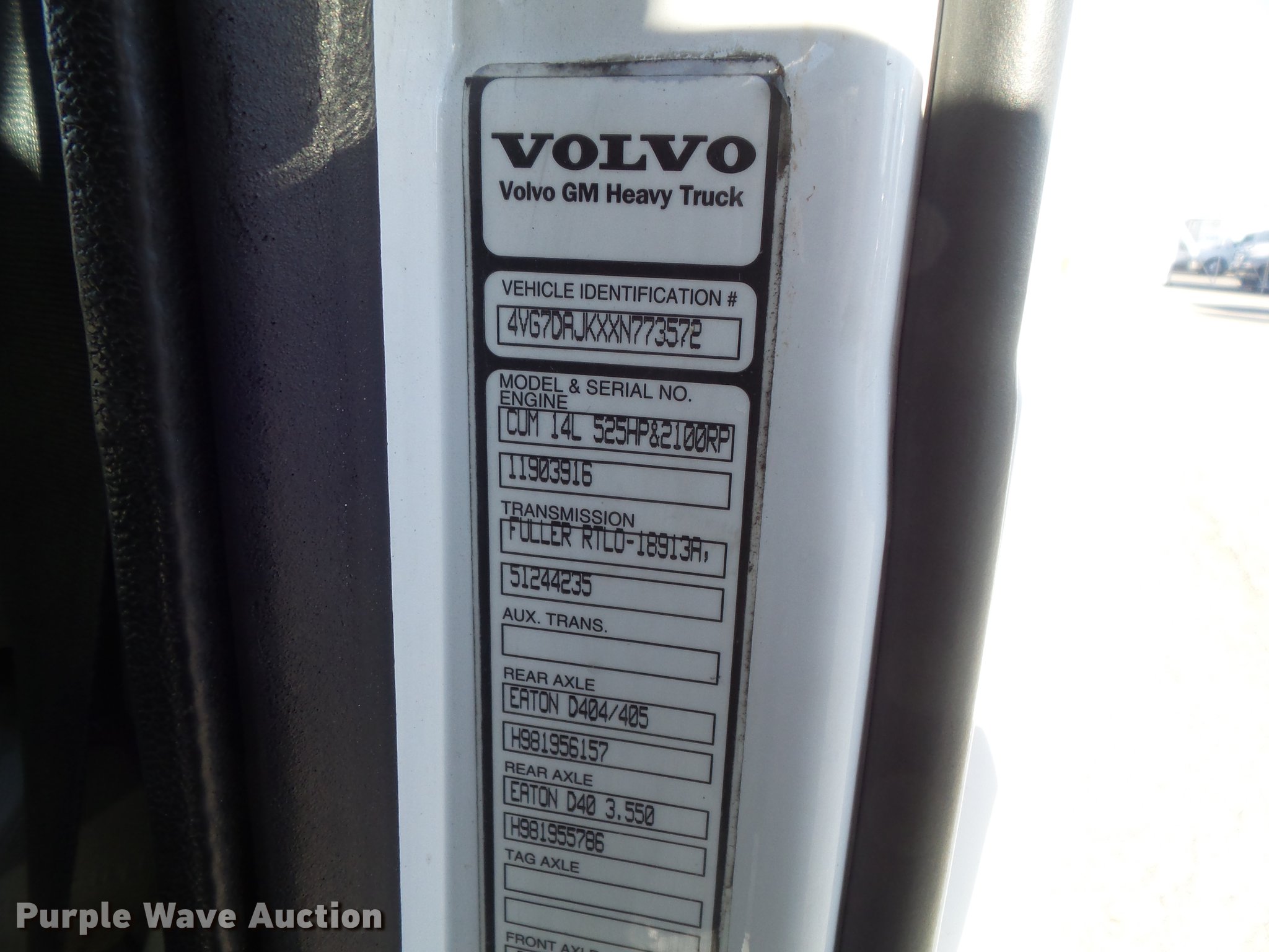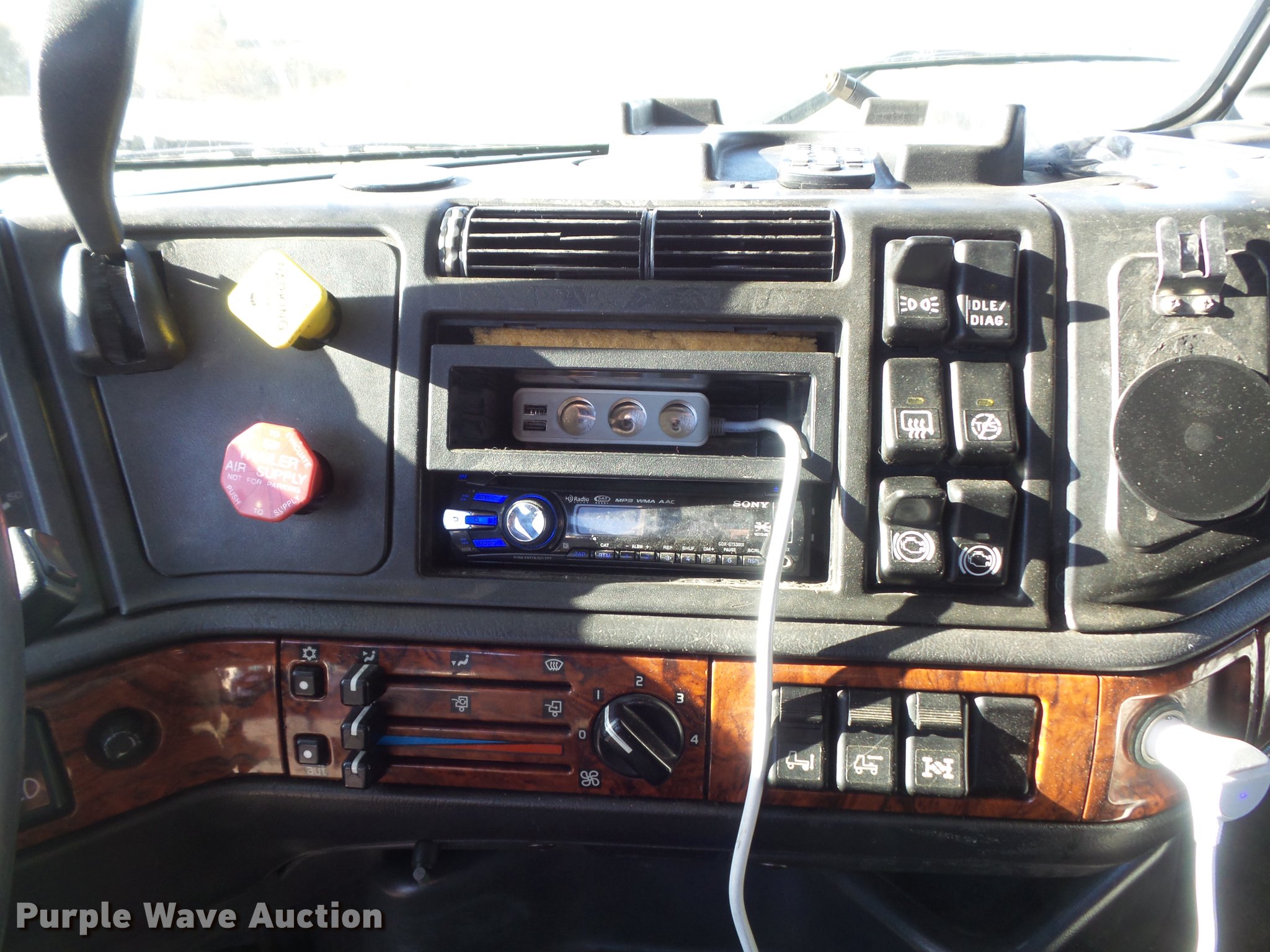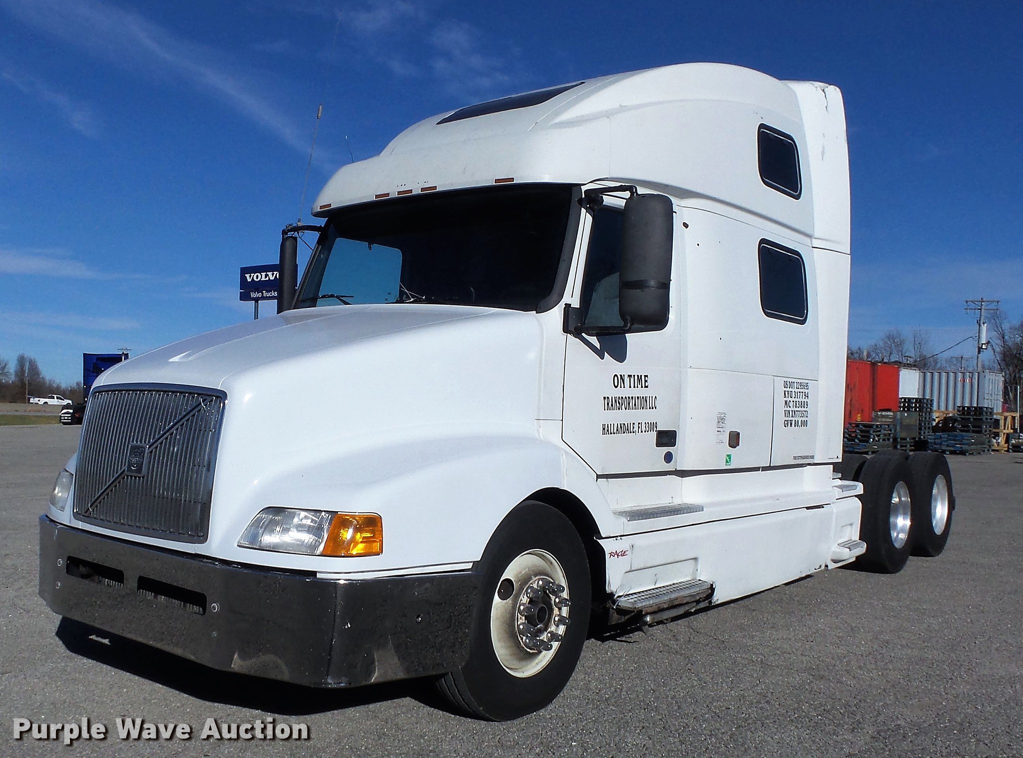 Purple Wave is selling a used Truck Tractor in Missouri. This item is a 1999 Volvo VNL semi truck with the following: 1,597,188 miles on odometer, Cummins N14 14.0L L6 turbo diesel engine, 525 HP, Serial 11903916, Eaton Fuller 13 speed manual transmission, Tandem axle, AC and heat, Tilt, Cruise, AM/FM/CD, Power locks, Power and heated mirrors, Air suspension seat, Air ride cab, Sleeper, Double bunk beds, Storage cabinets, Rear climate control, Train horn, Block heater, Dual exhaust stacks, Aluminum deck plate, Air operated sliding fifth wheel plate, Dual fuel tanks, Air suspension, Air brakes, Engine brake, Steel front and inner rear wheels, Aluminum outer rear wheels, 11R22.5 tires, GVWR 49,670 lbs, FAWR 11,670 lbs, IAWR 19,000 lbs, RAWR 19,000 lbs, ABS light on, Caution light on