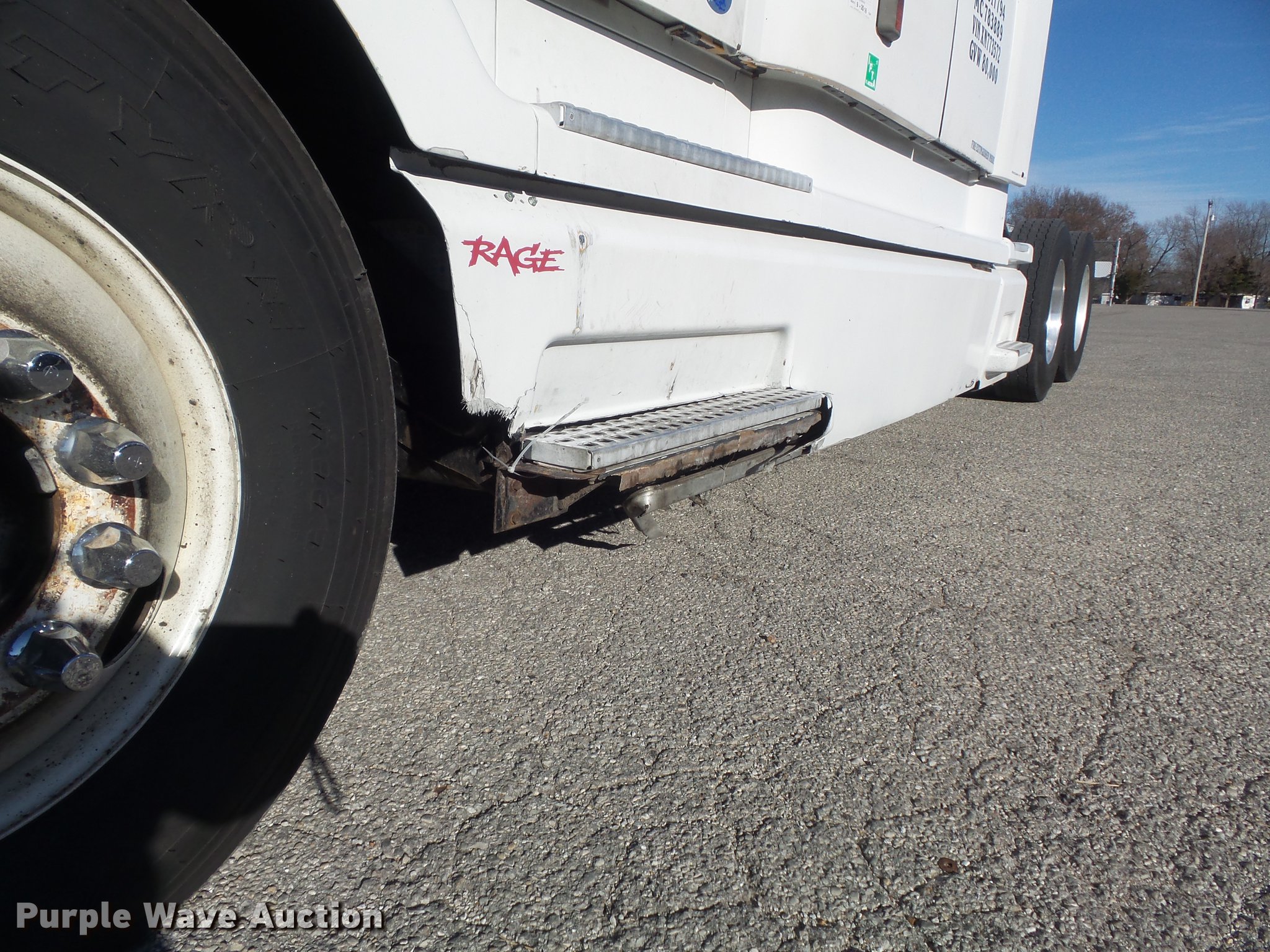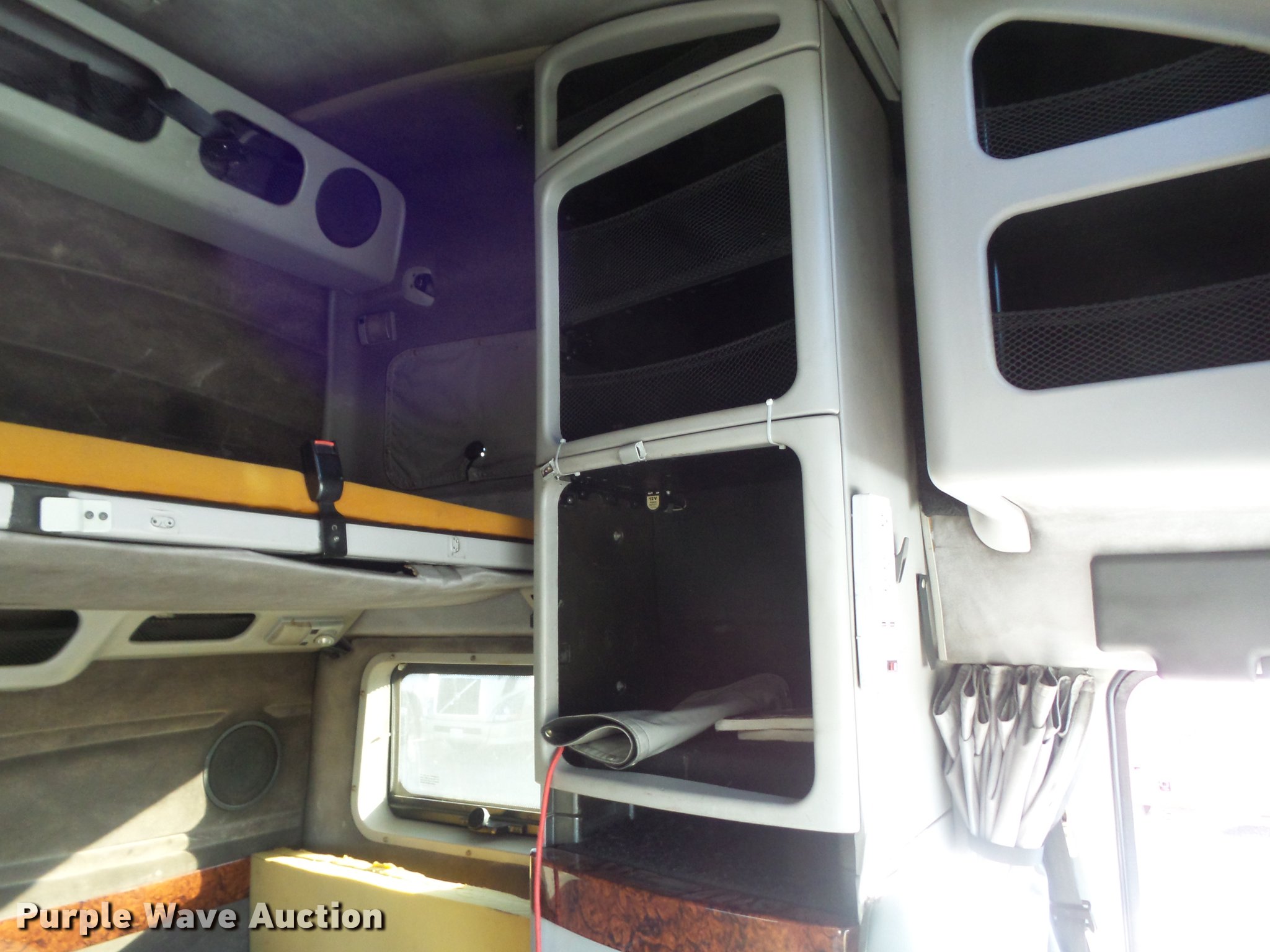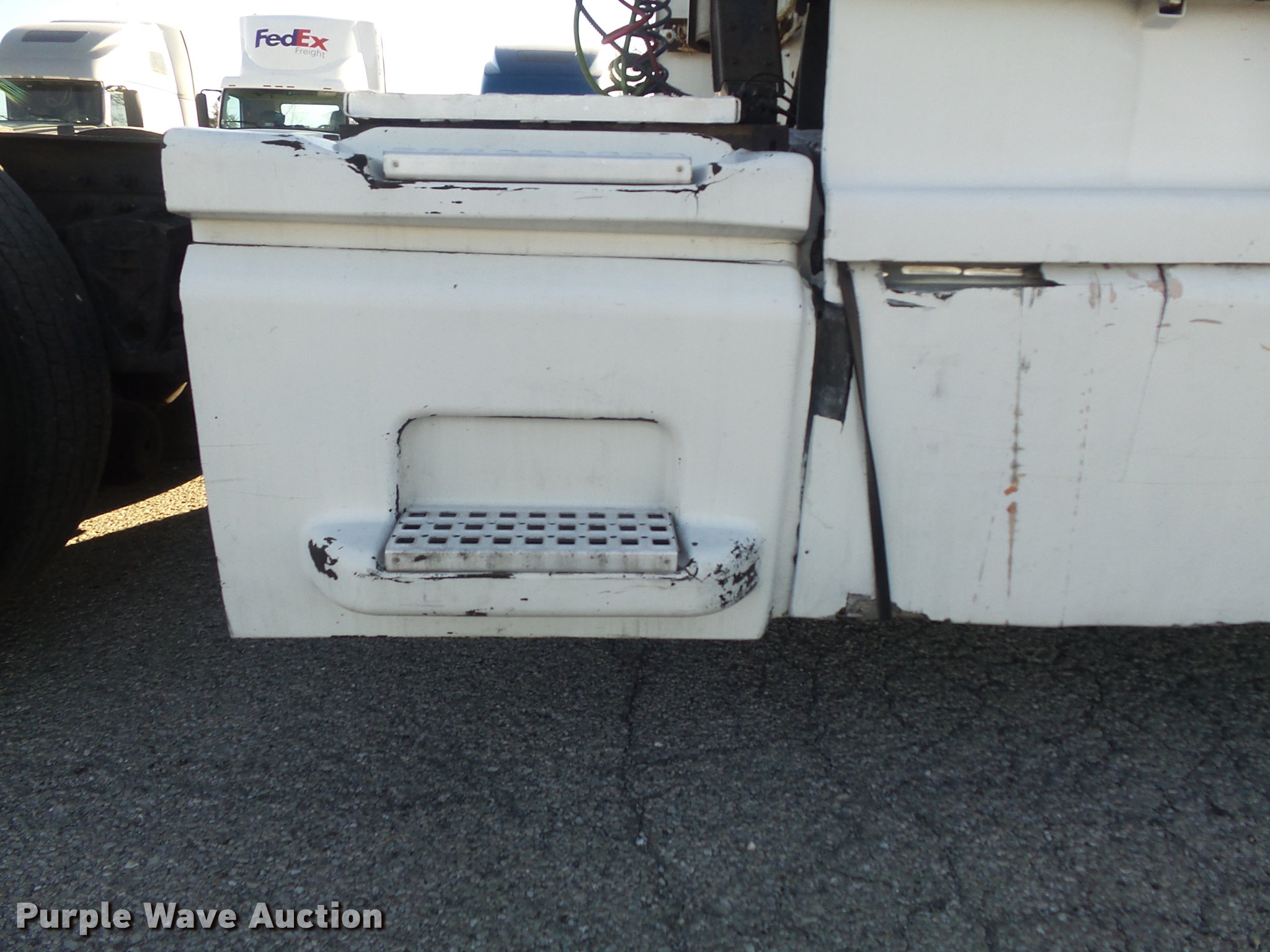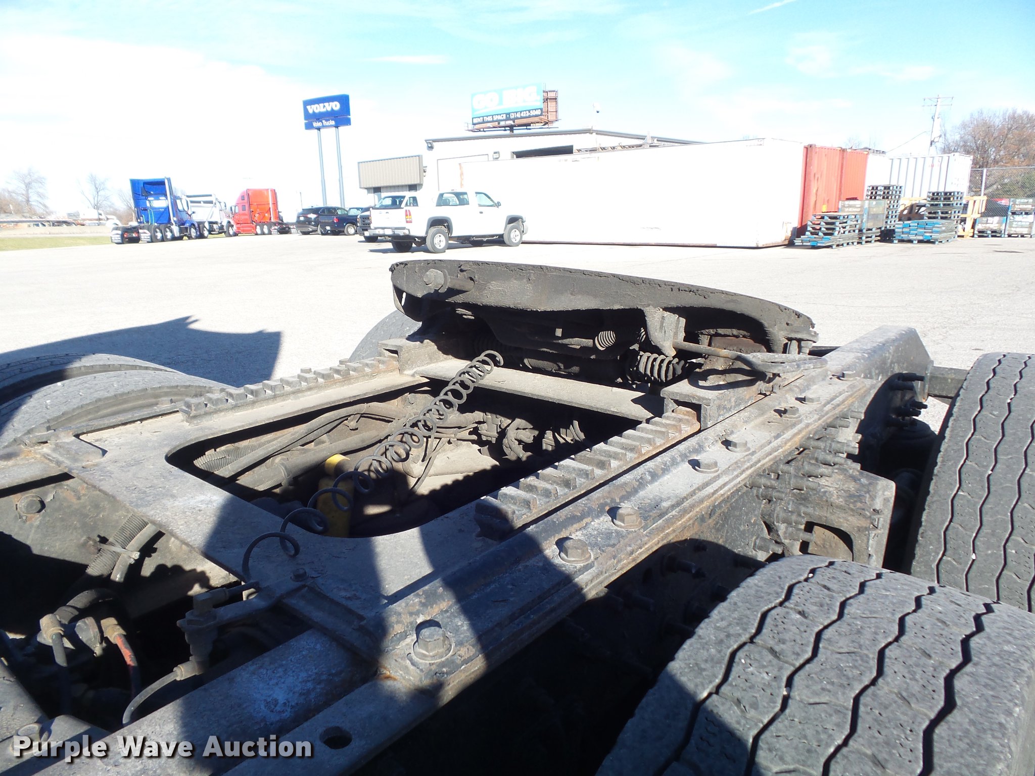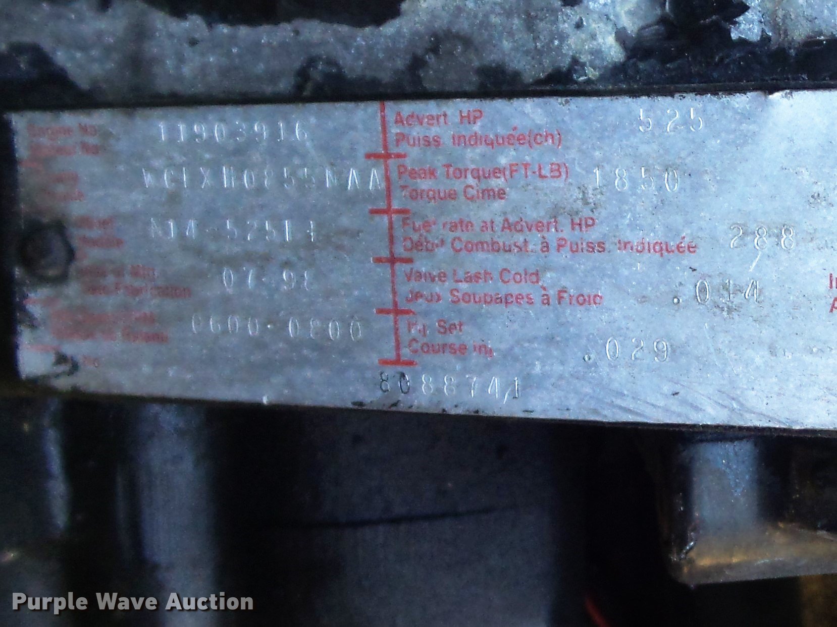 Purple Wave is selling a used Truck Tractor in Missouri. This item is a 1999 Volvo VNL semi truck with the following: 1,597,188 miles on odometer, Cummins N14 14.0L L6 turbo diesel engine, 525 HP, Serial 11903916, Eaton Fuller 13 speed manual transmission, Tandem axle, AC and heat, Tilt, Cruise, AM/FM/CD, Power locks, Power and heated mirrors, Air suspension seat, Air ride cab, Sleeper, Double bunk beds, Storage cabinets, Rear climate control, Train horn, Block heater, Dual exhaust stacks, Aluminum deck plate, Air operated sliding fifth wheel plate, Dual fuel tanks, Air suspension, Air brakes, Engine brake, Steel front and inner rear wheels, Aluminum outer rear wheels, 11R22.5 tires, GVWR 49,670 lbs, FAWR 11,670 lbs, IAWR 19,000 lbs, RAWR 19,000 lbs, ABS light on, Caution light on