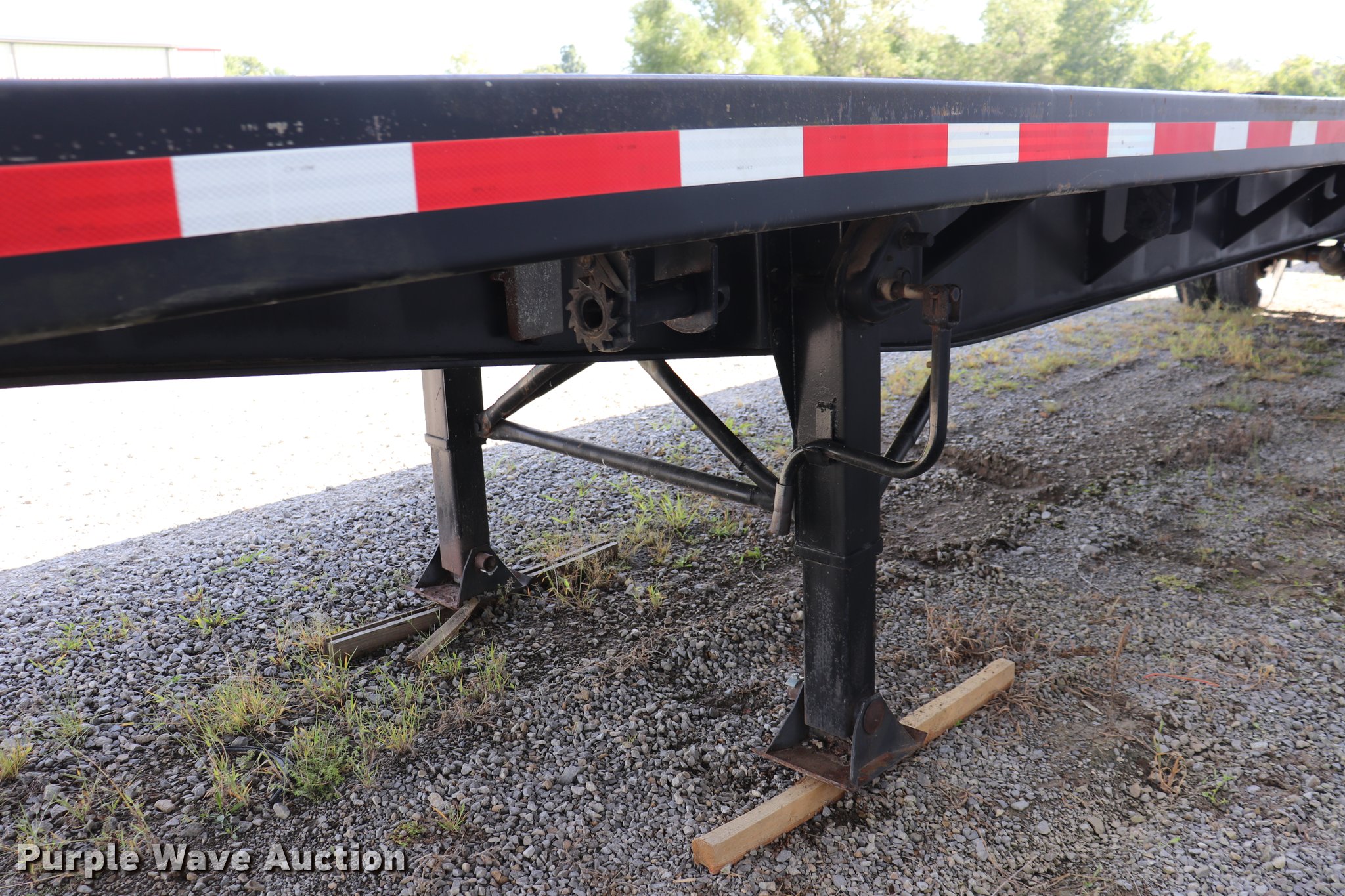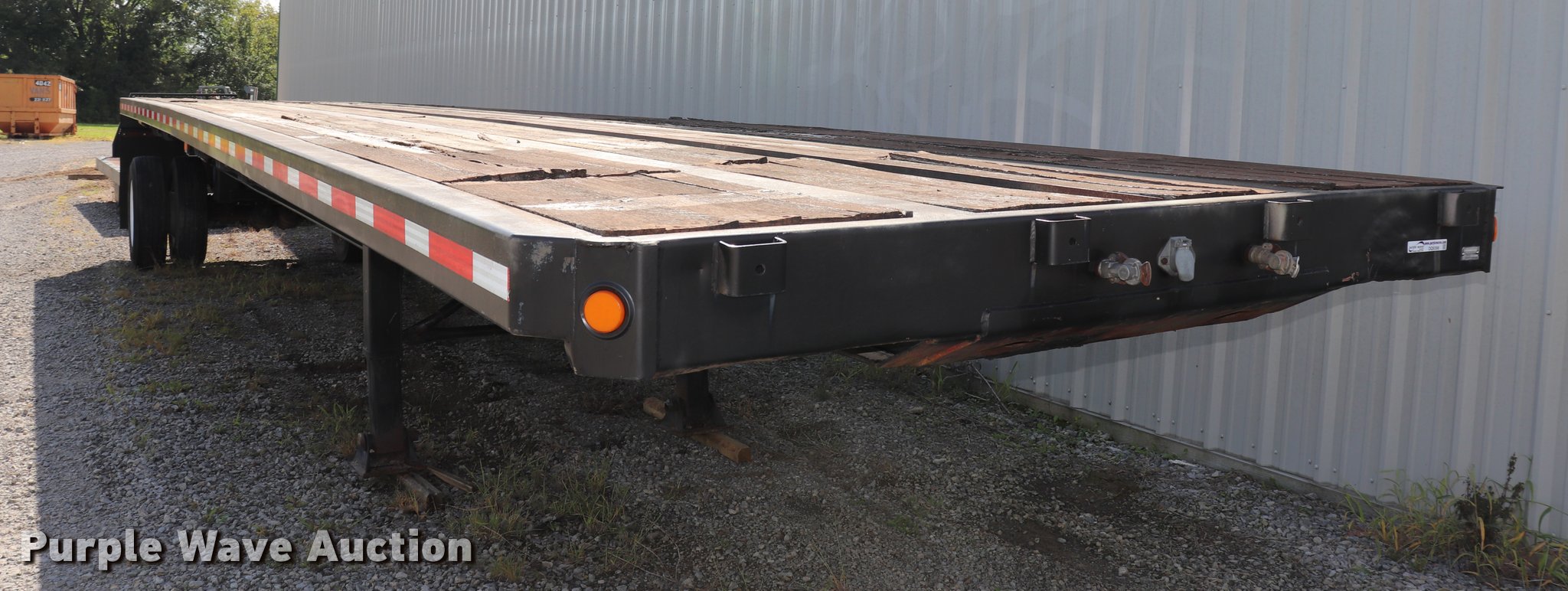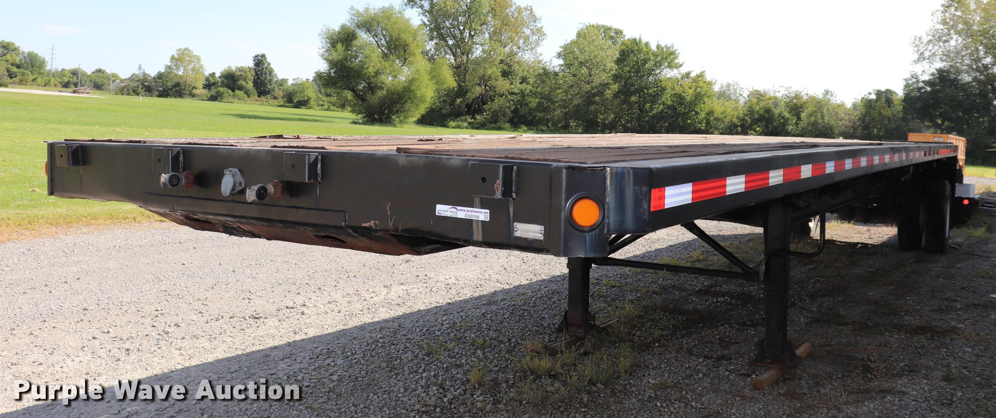 Purple Wave is selling a used Flat or Drop Deck Trailer in Kansas. This item is a 1990 Fontaine flatbed trailer with the following: 38.5'L x 97.5"W overall, 59" floor height, Wood deck, (5) adjustable ratchets, Fifth wheel plate, Dual leg two speed landing gear, Air suspension, Air brakes, 295/75R22.5 tires