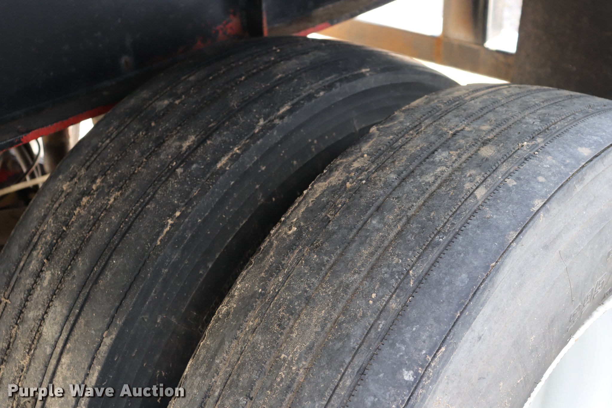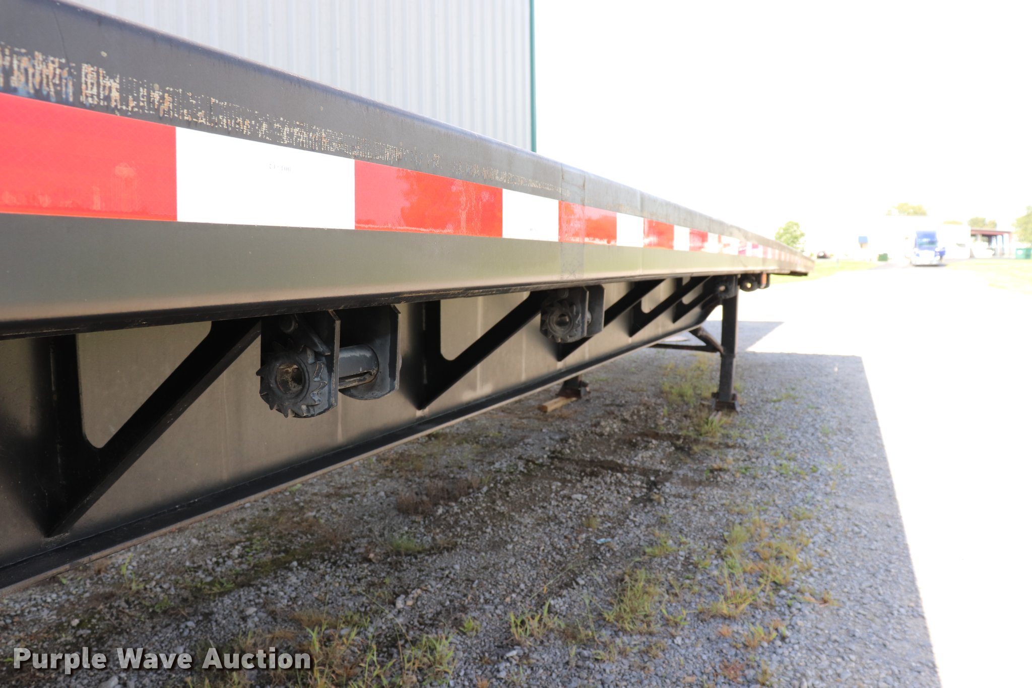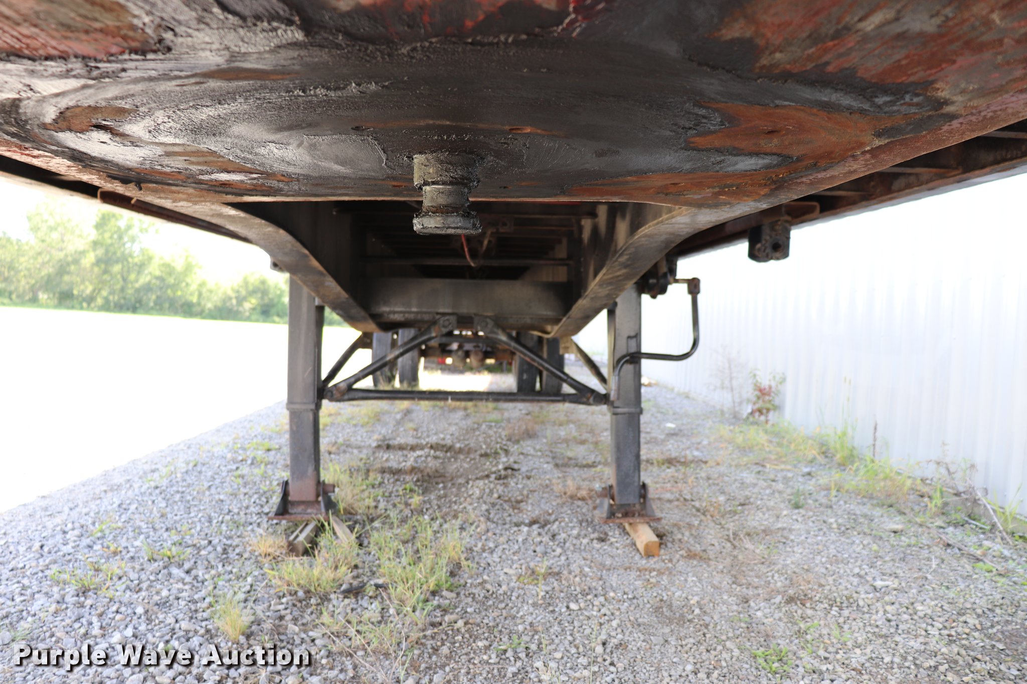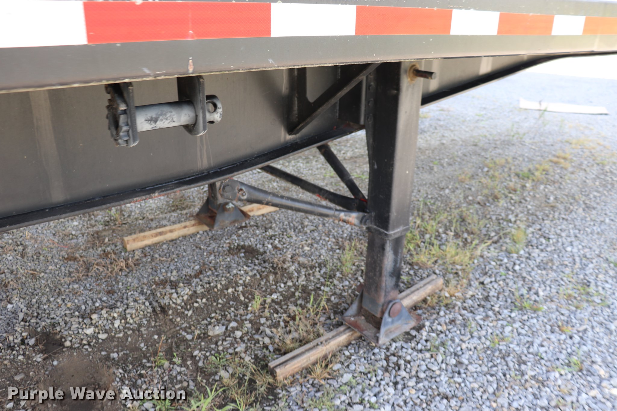 Purple Wave is selling a used Flat or Drop Deck Trailer in Kansas. This item is a 1990 Fontaine flatbed trailer with the following: 38.5'L x 97.5"W overall, 59" floor height, Wood deck, (5) adjustable ratchets, Fifth wheel plate, Dual leg two speed landing gear, Air suspension, Air brakes, 295/75R22.5 tires